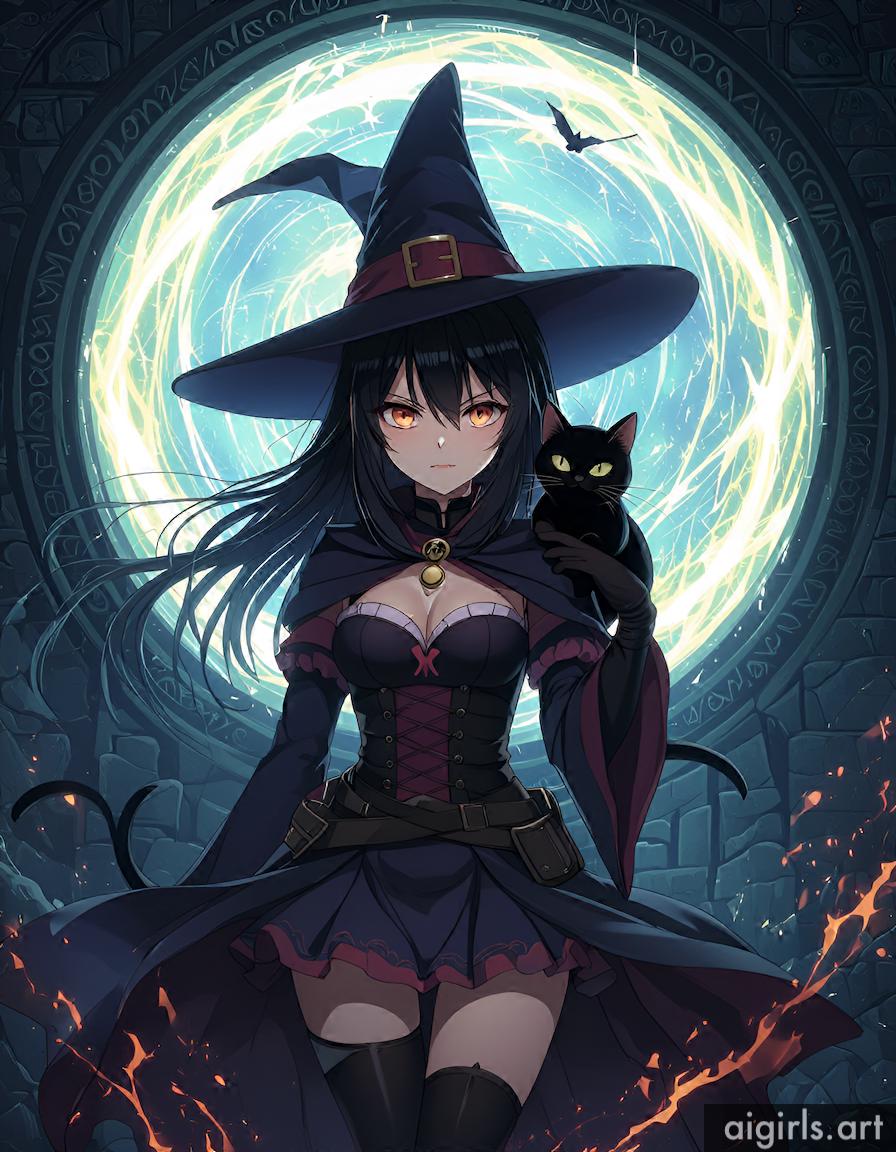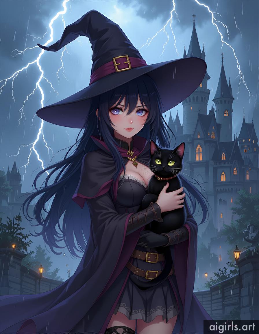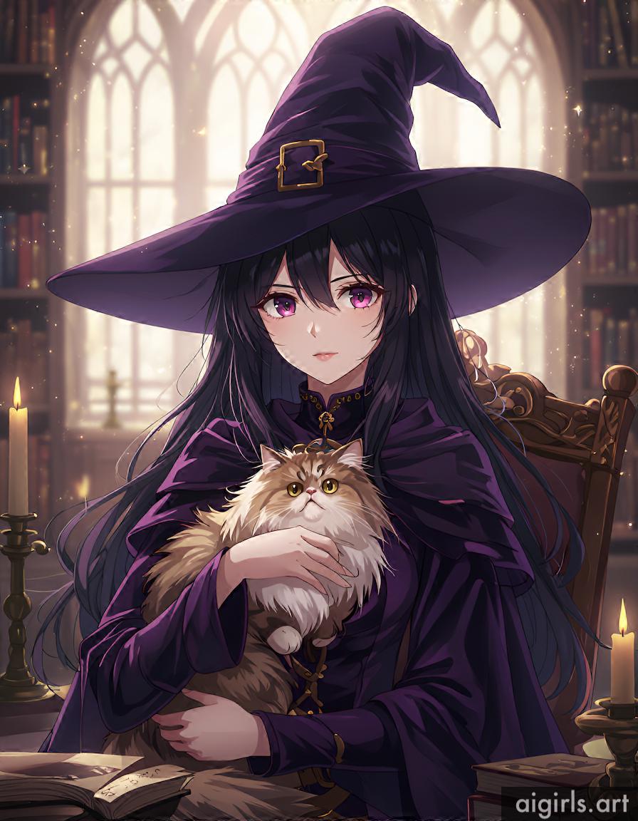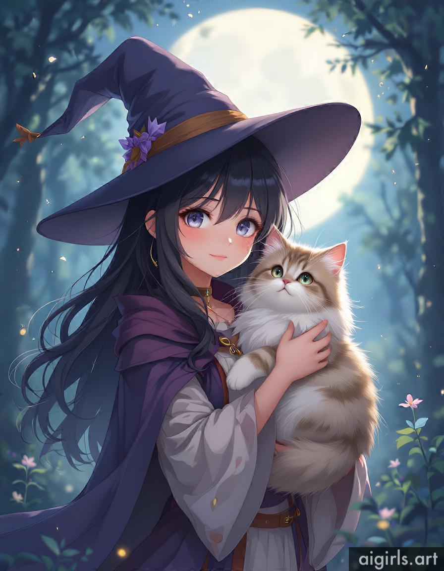 Anime witch with her cat