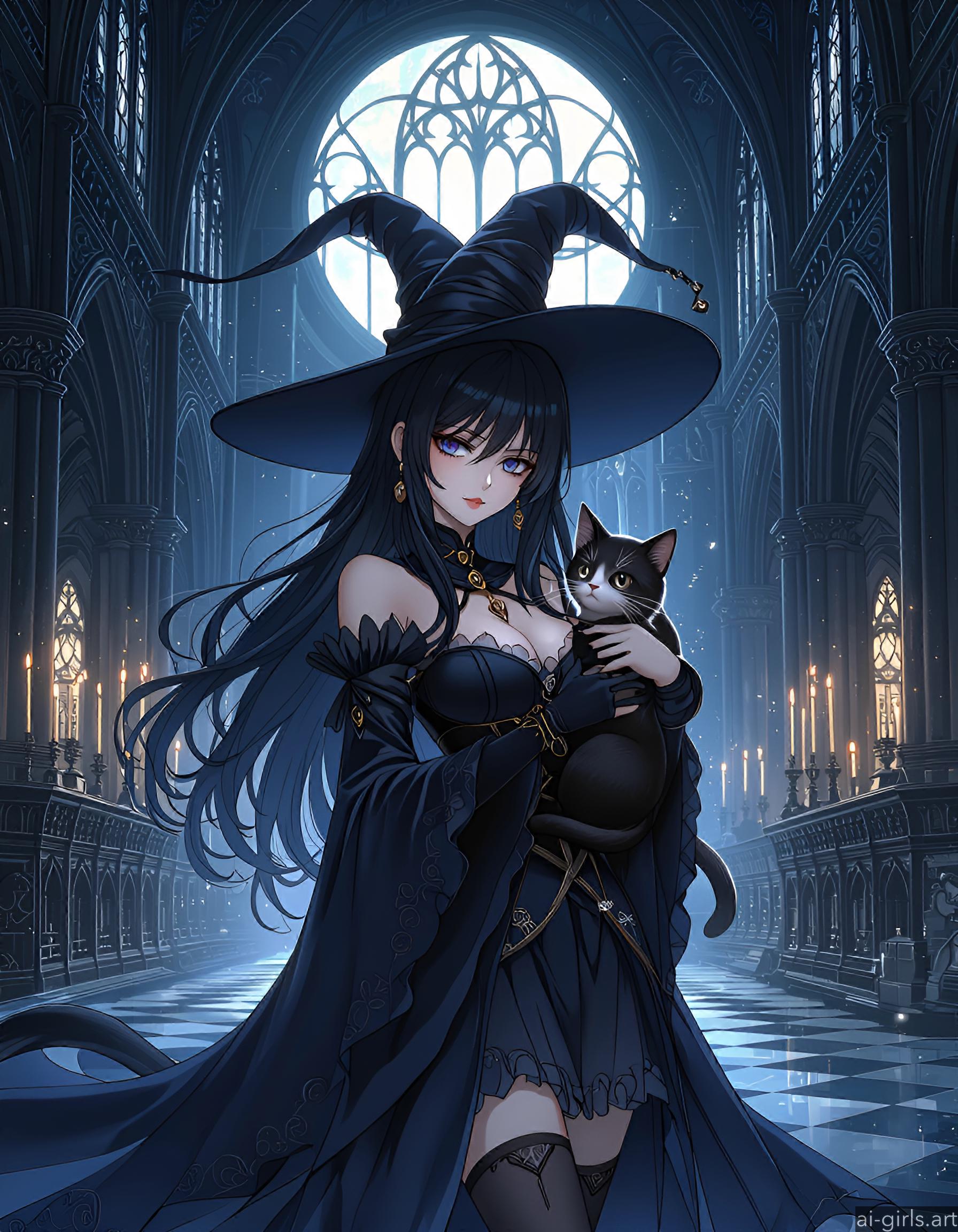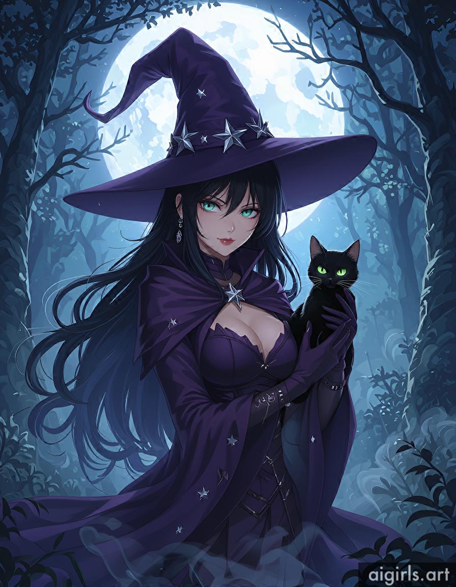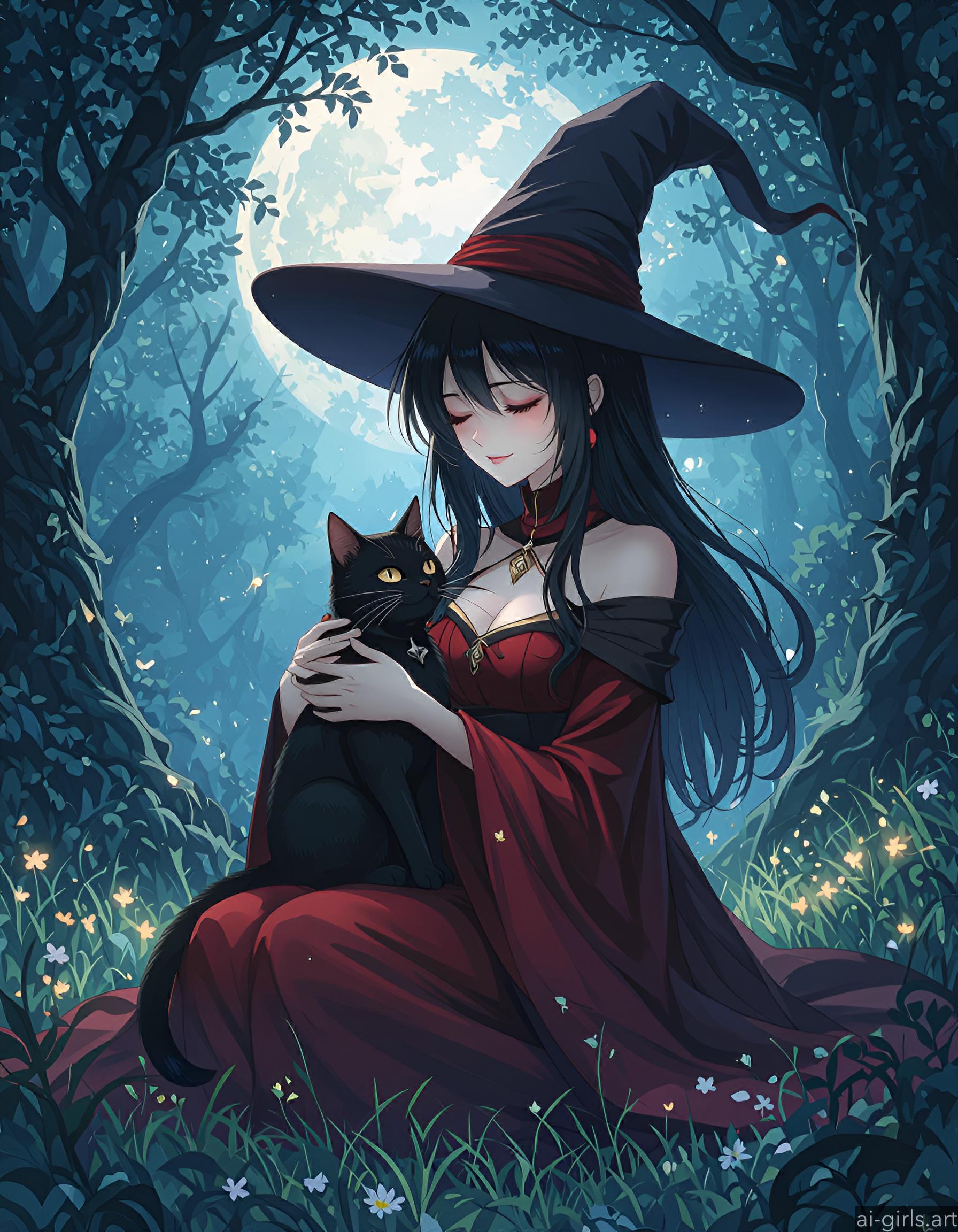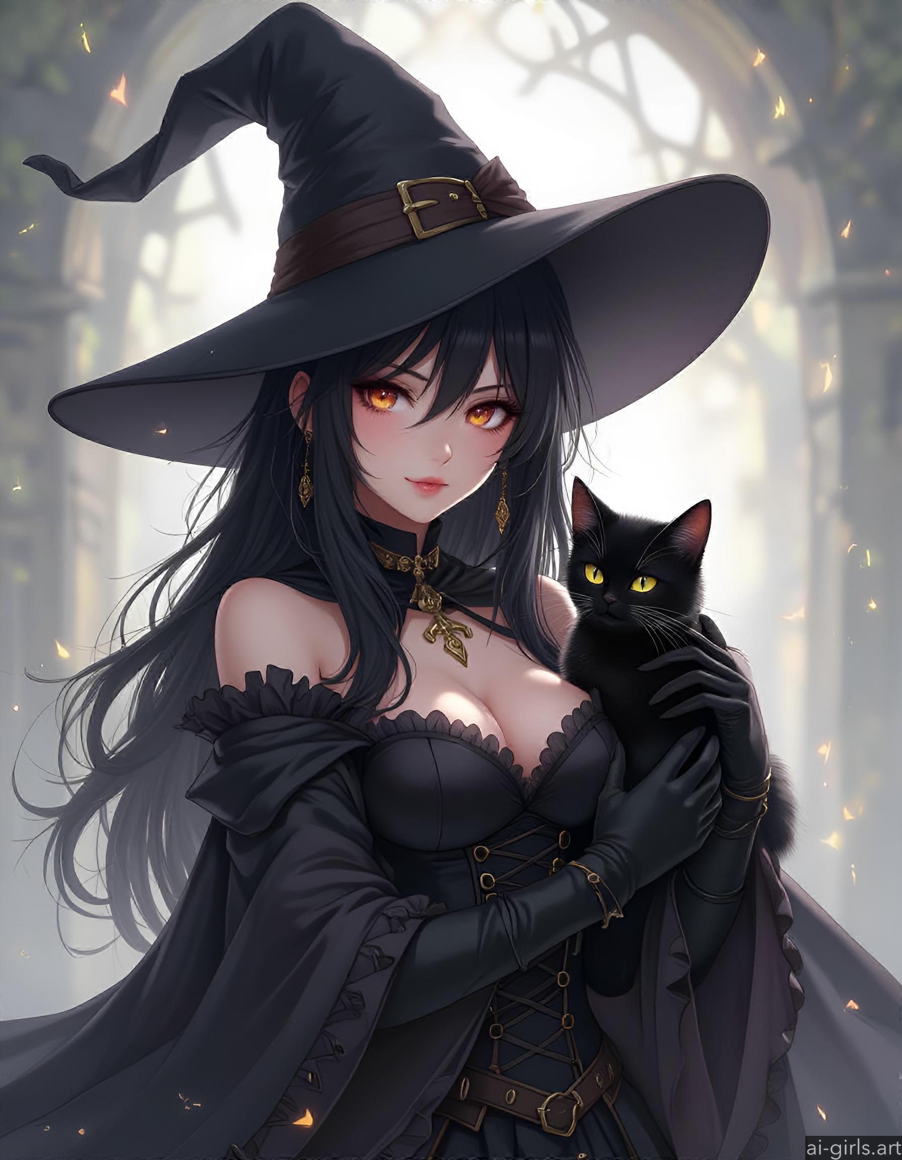 Anime witch with her cat