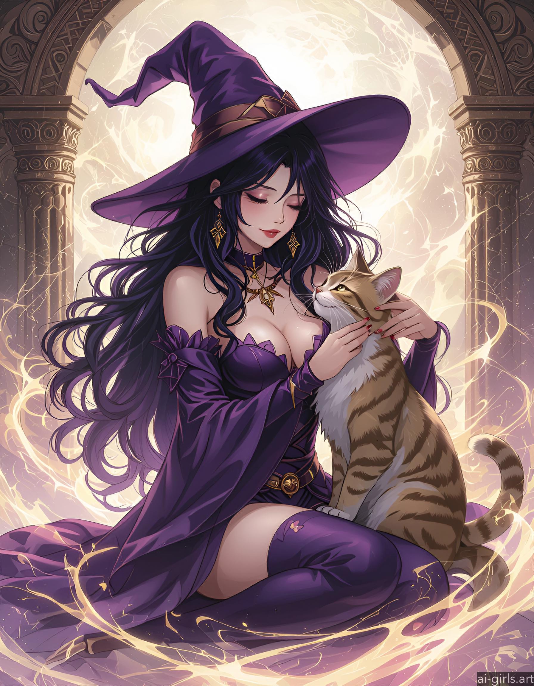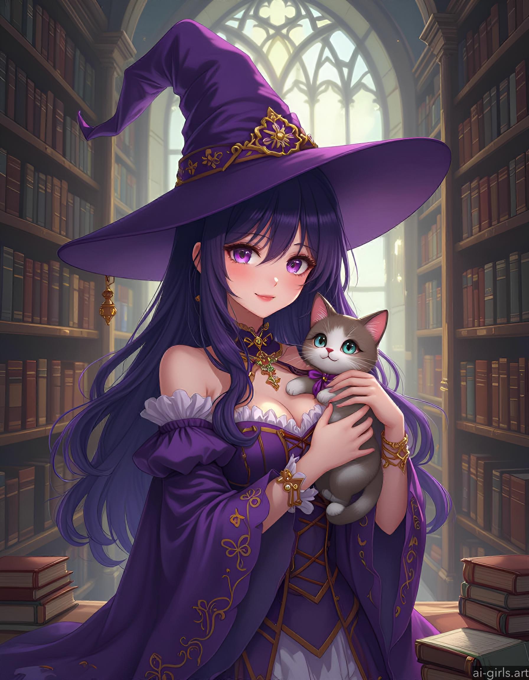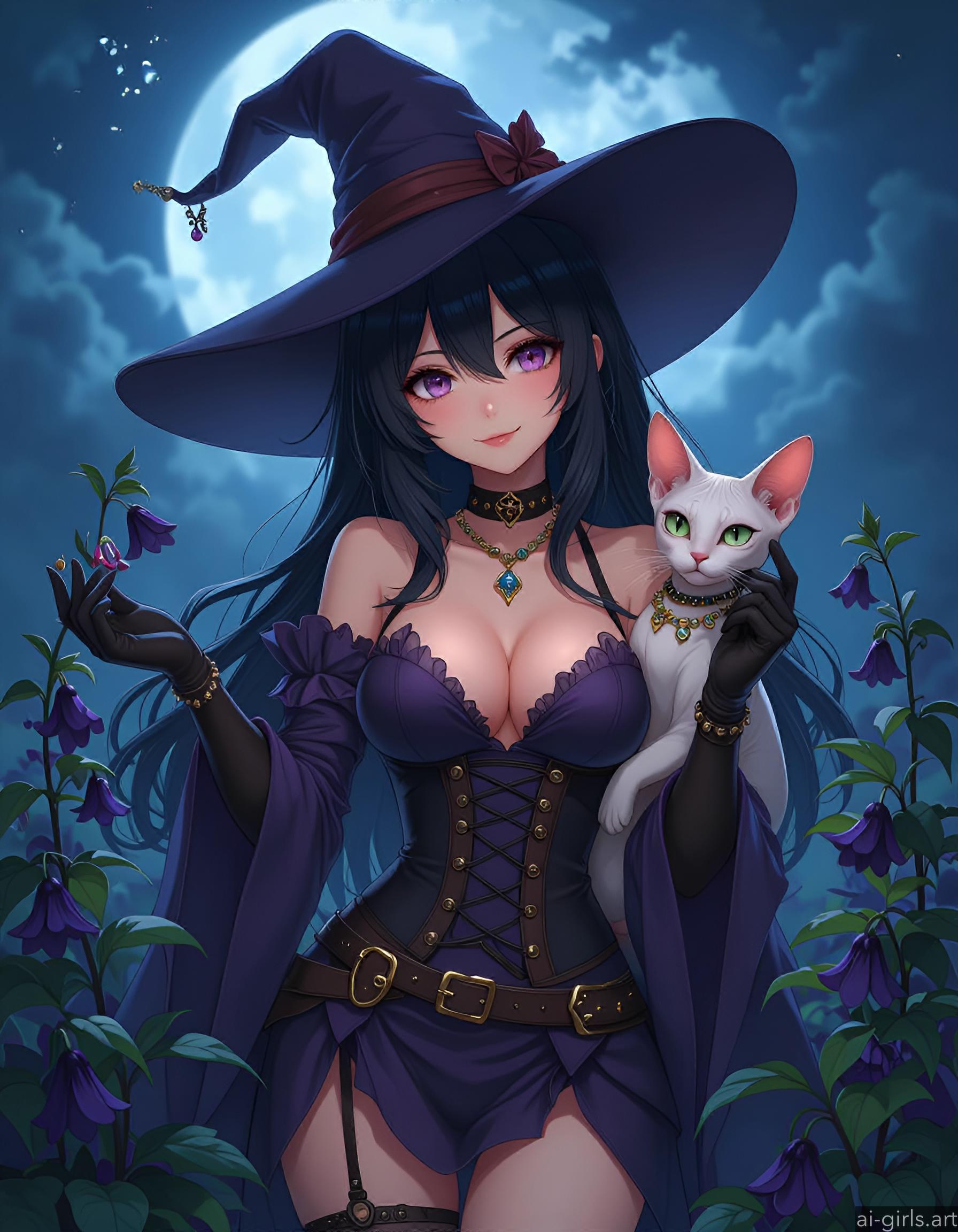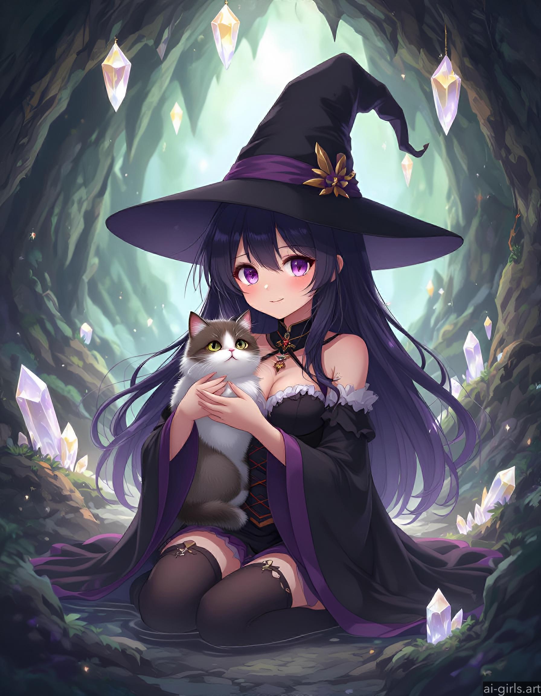 Anime witch with her cat