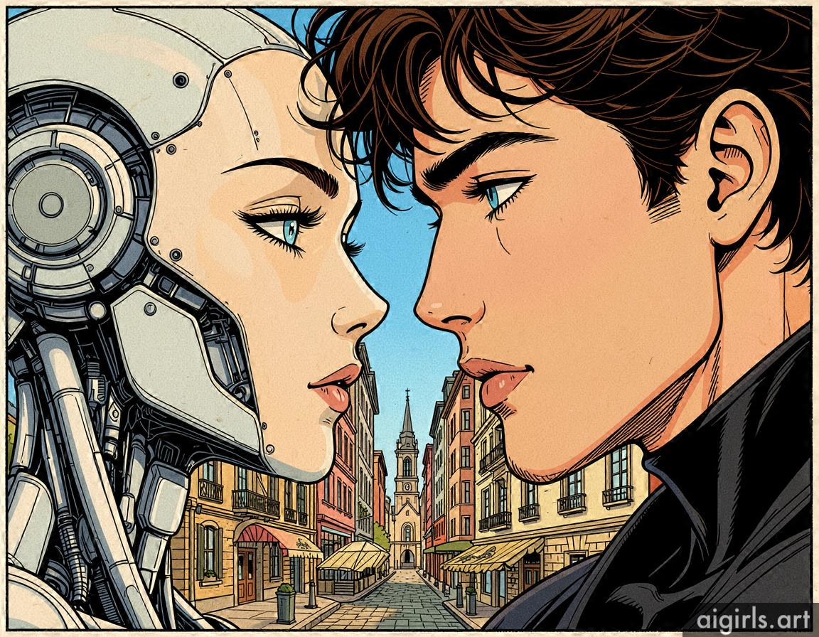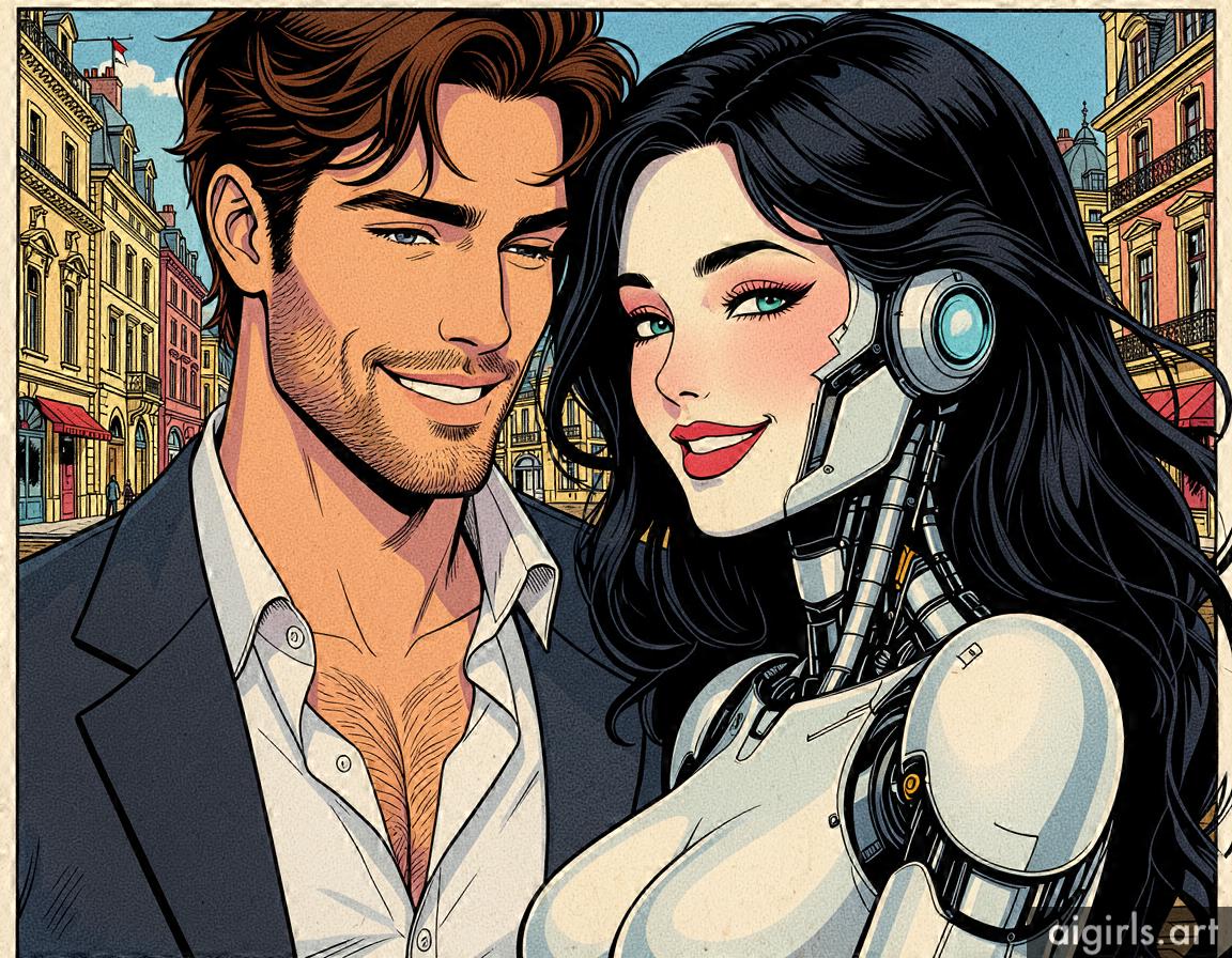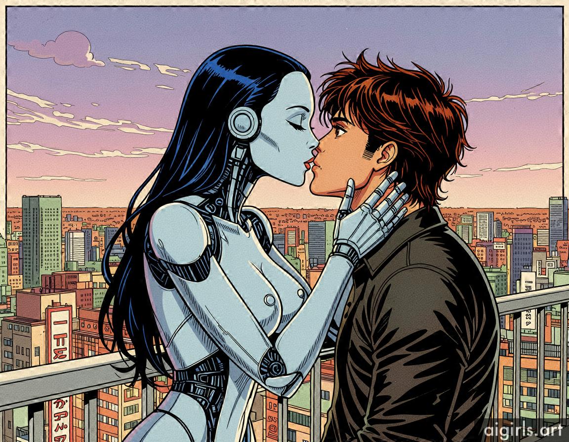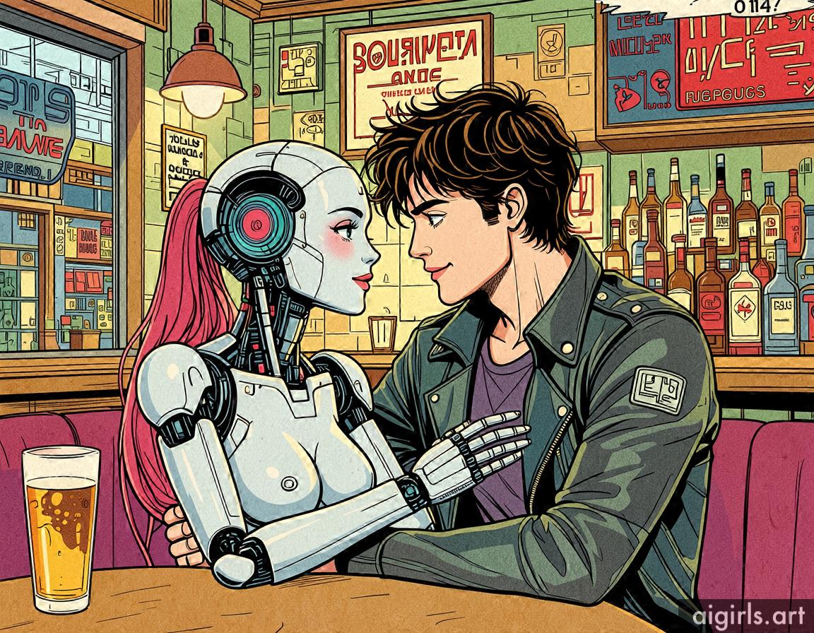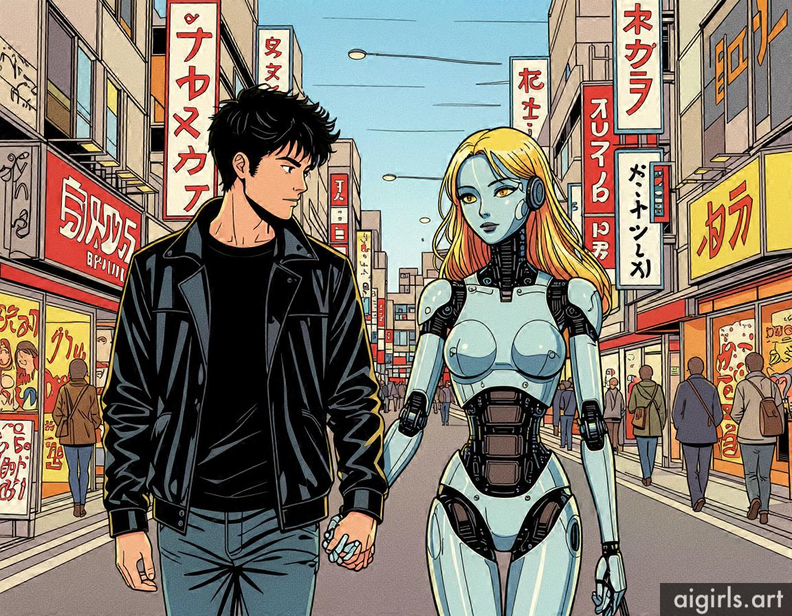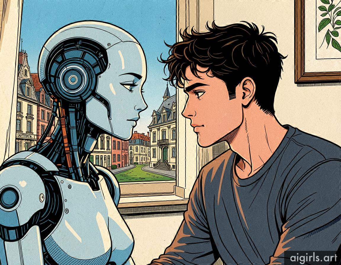 A young man with his AI girlfriend