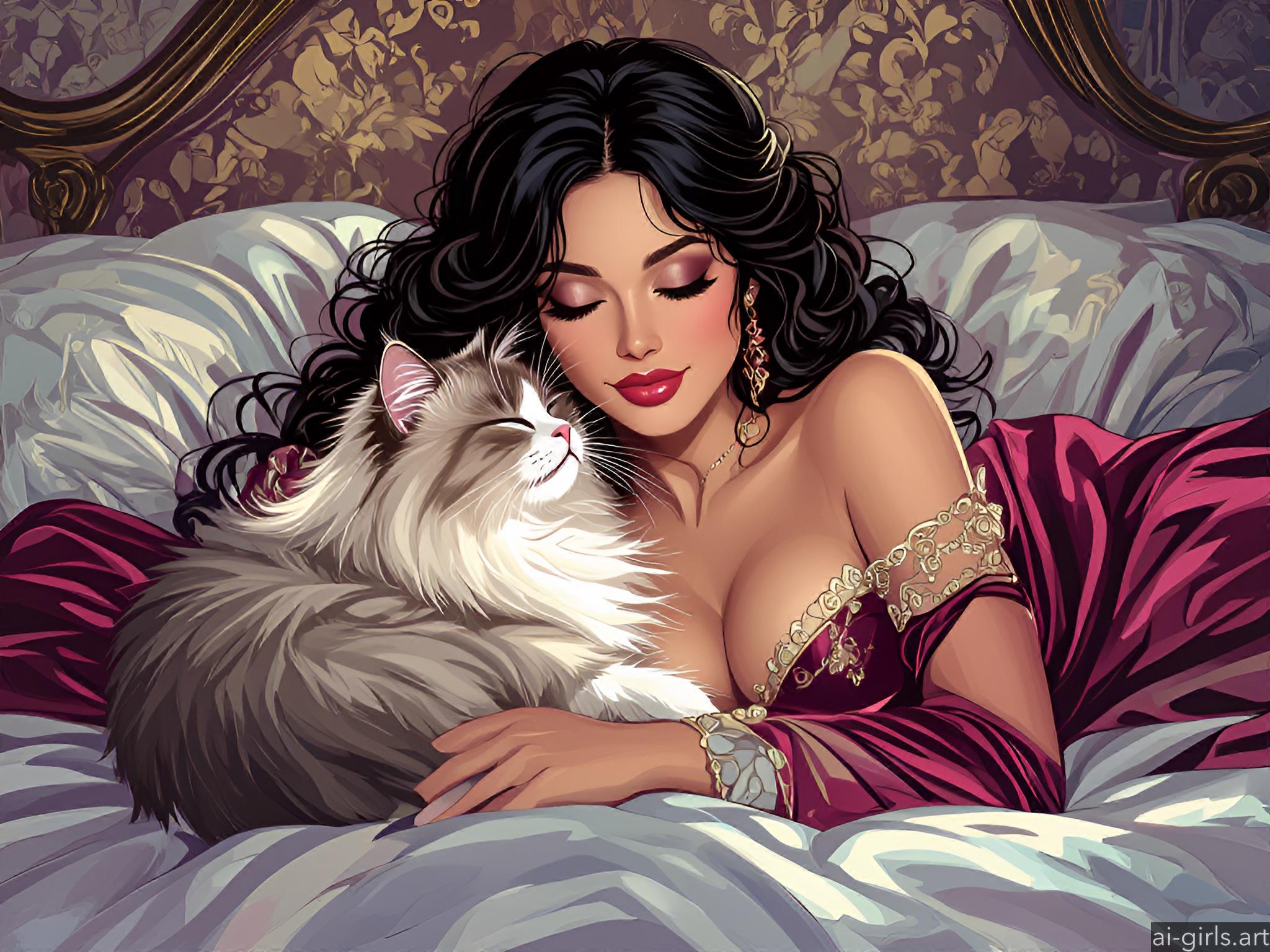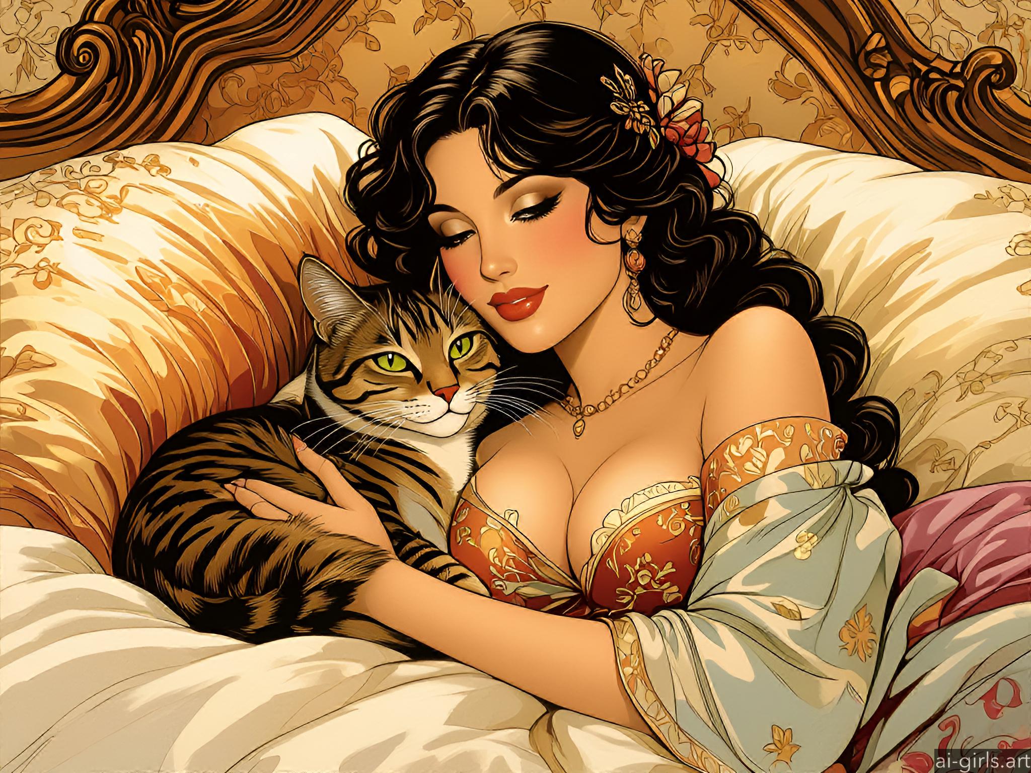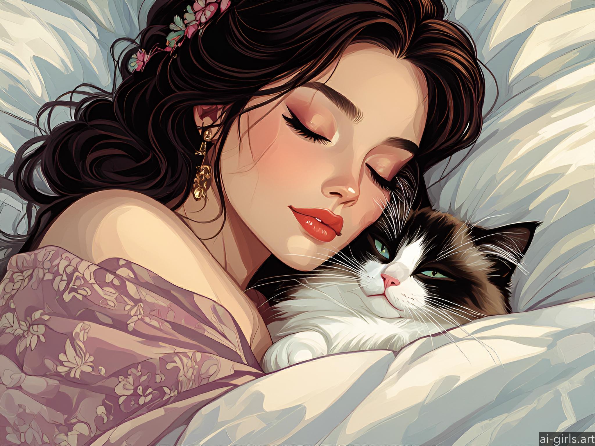Girl sleeping with her cat