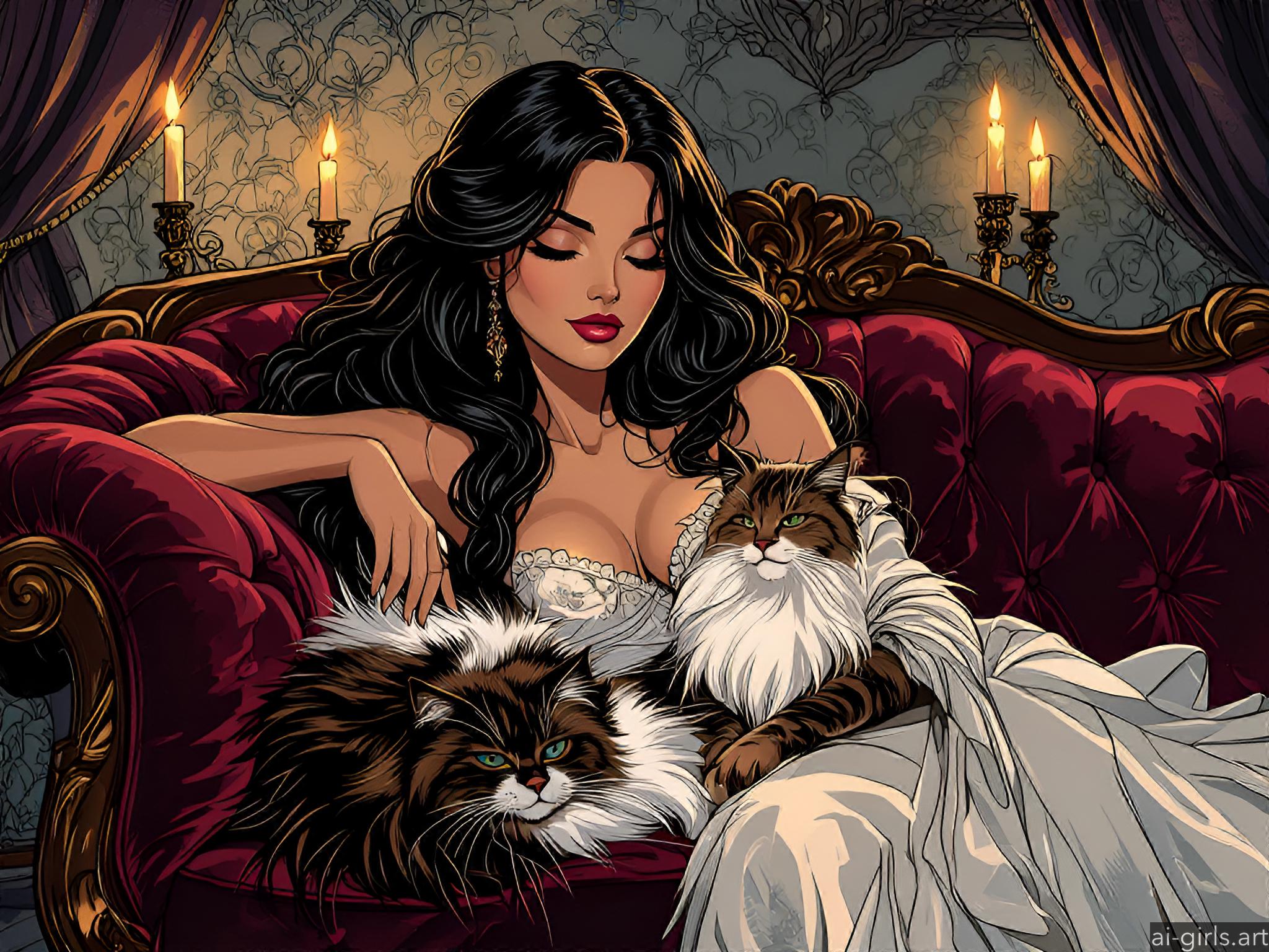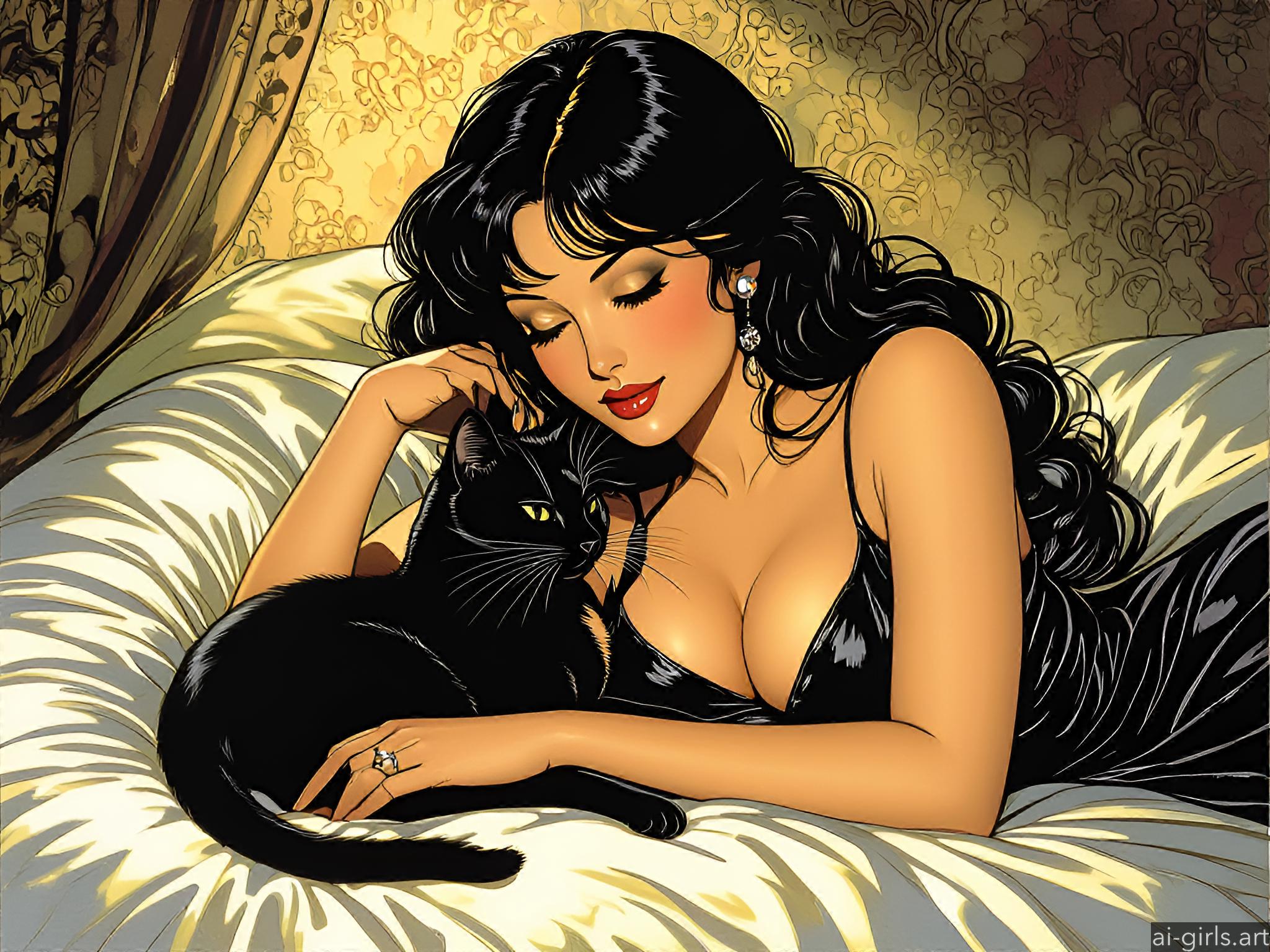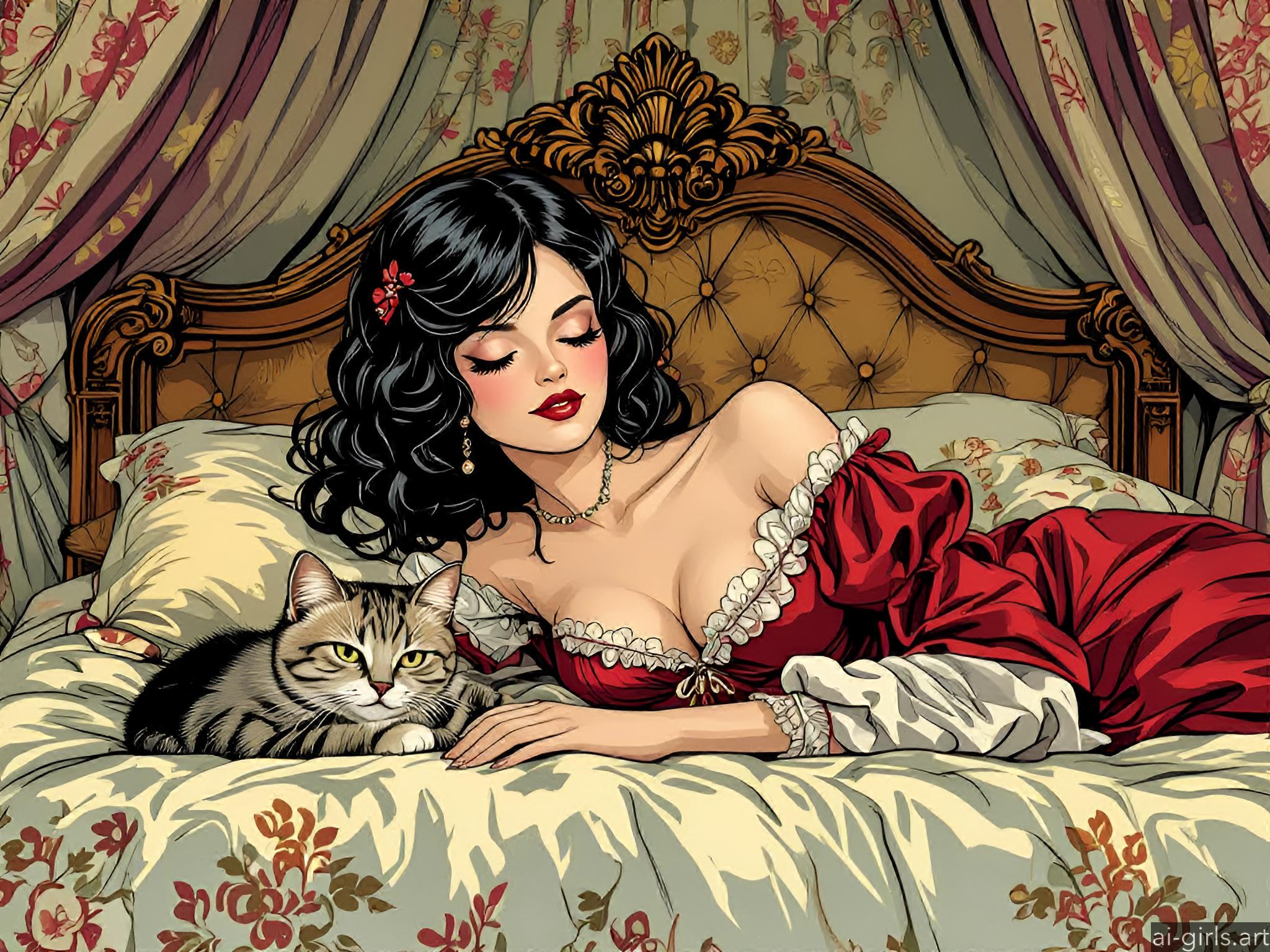 Girl sleeping with her cat