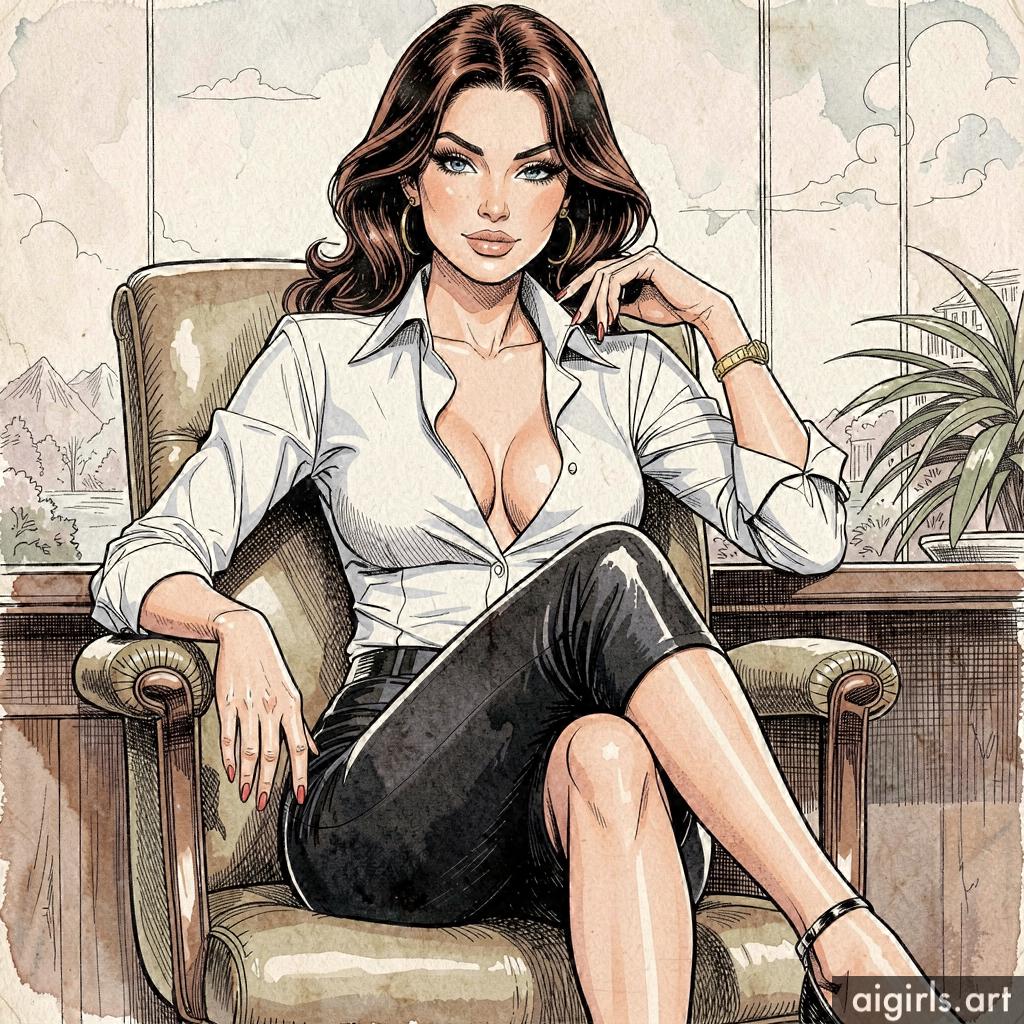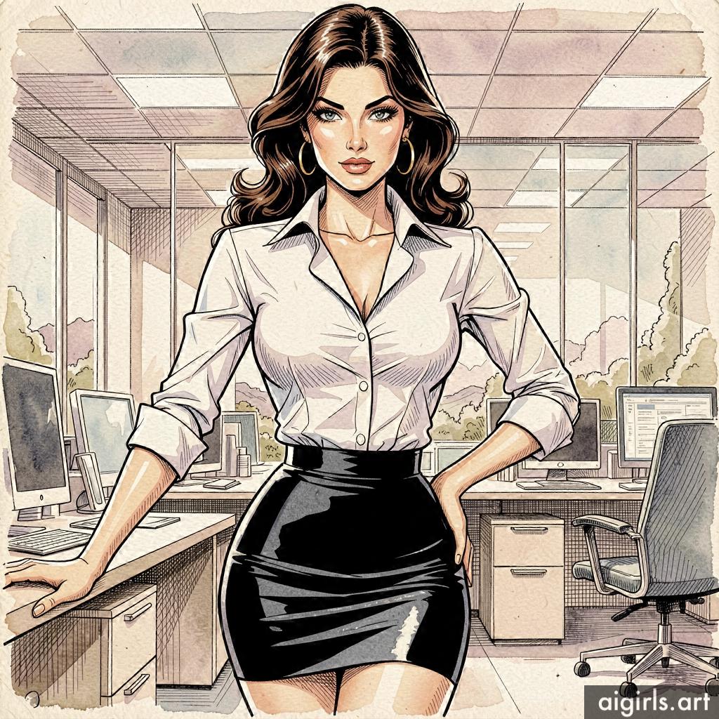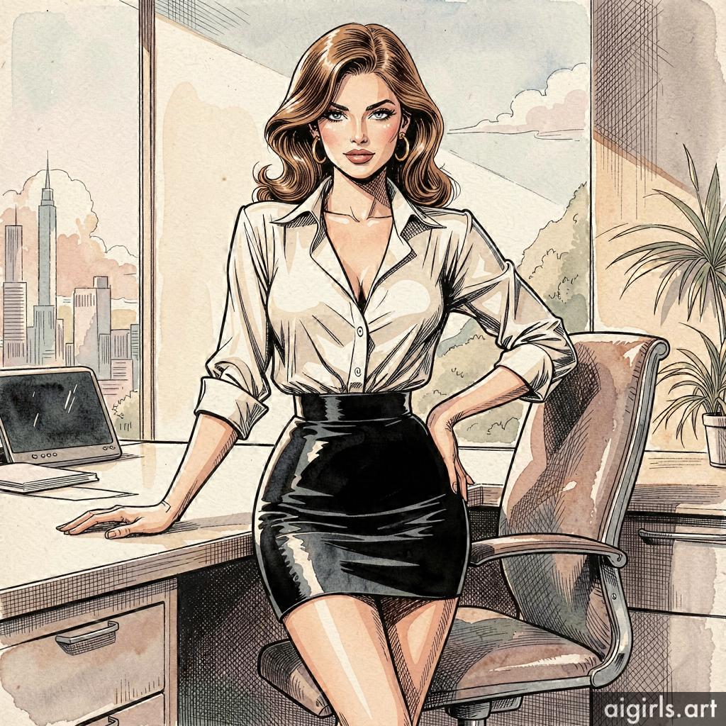 Seductive secretary in her office