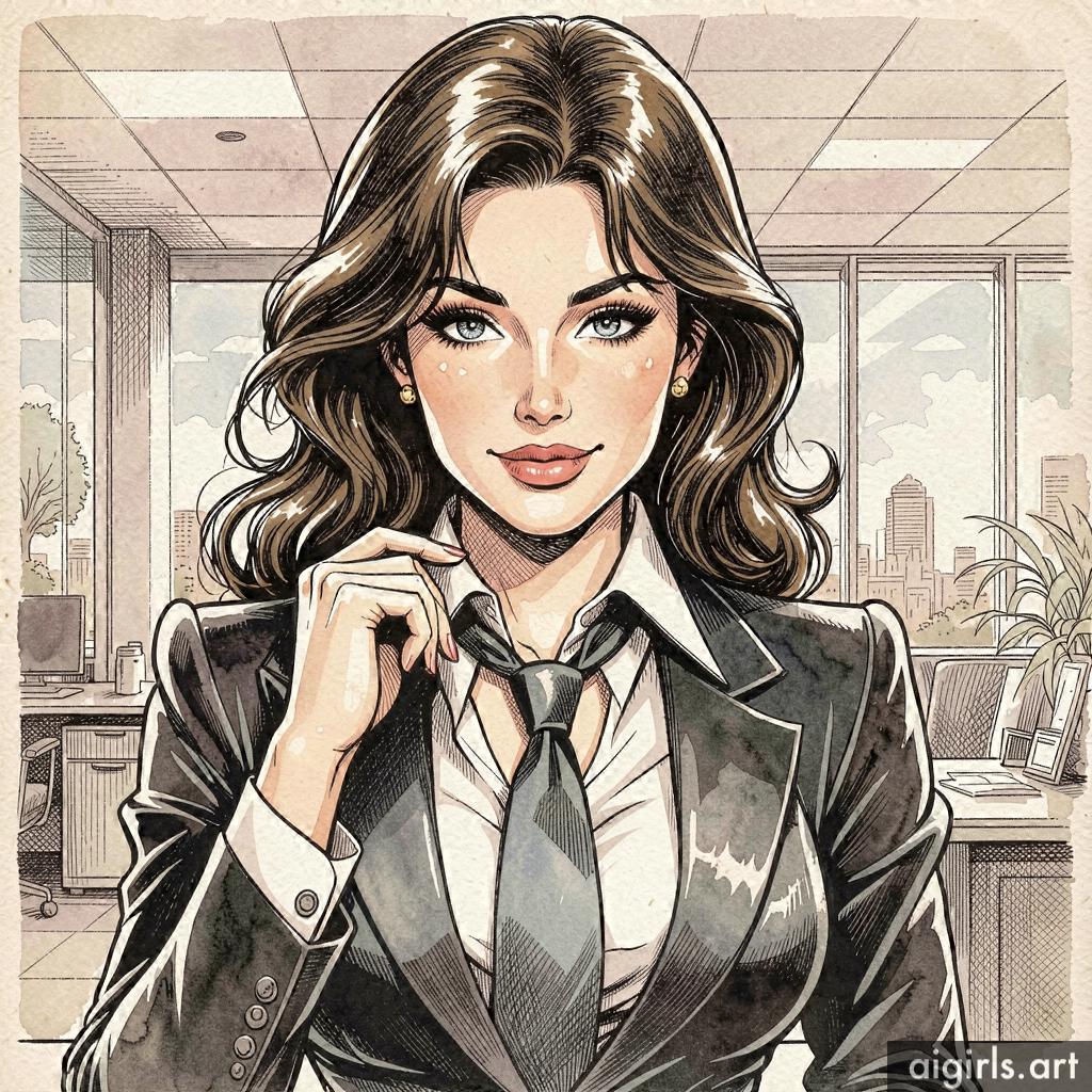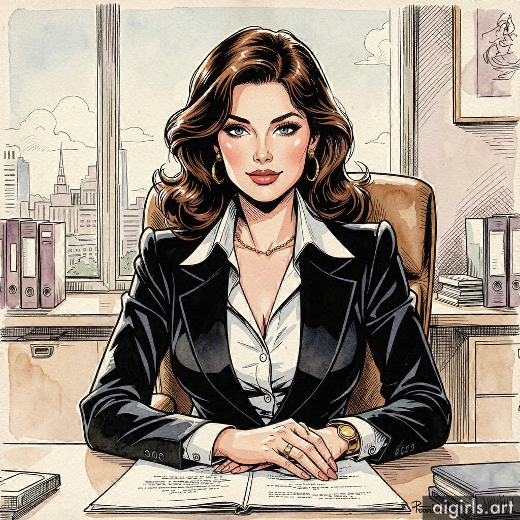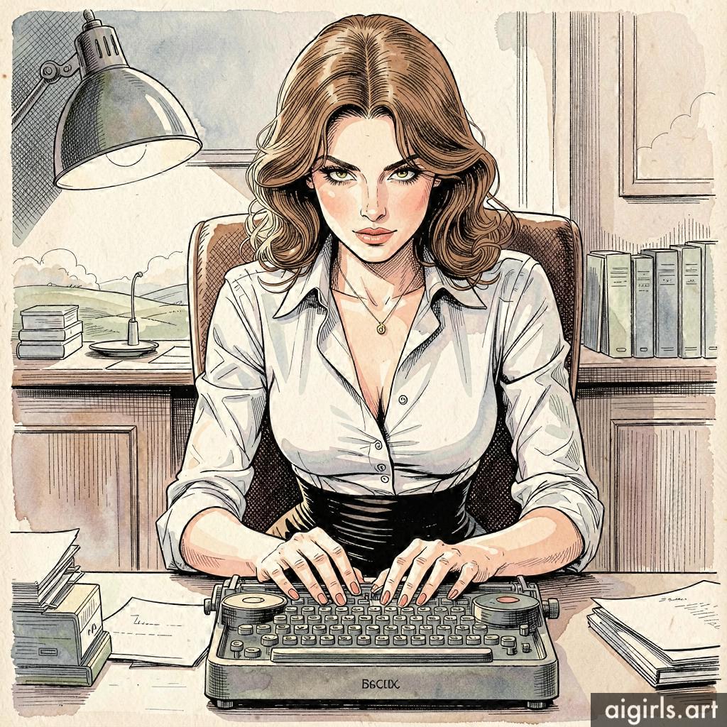 Seductive secretary in her office