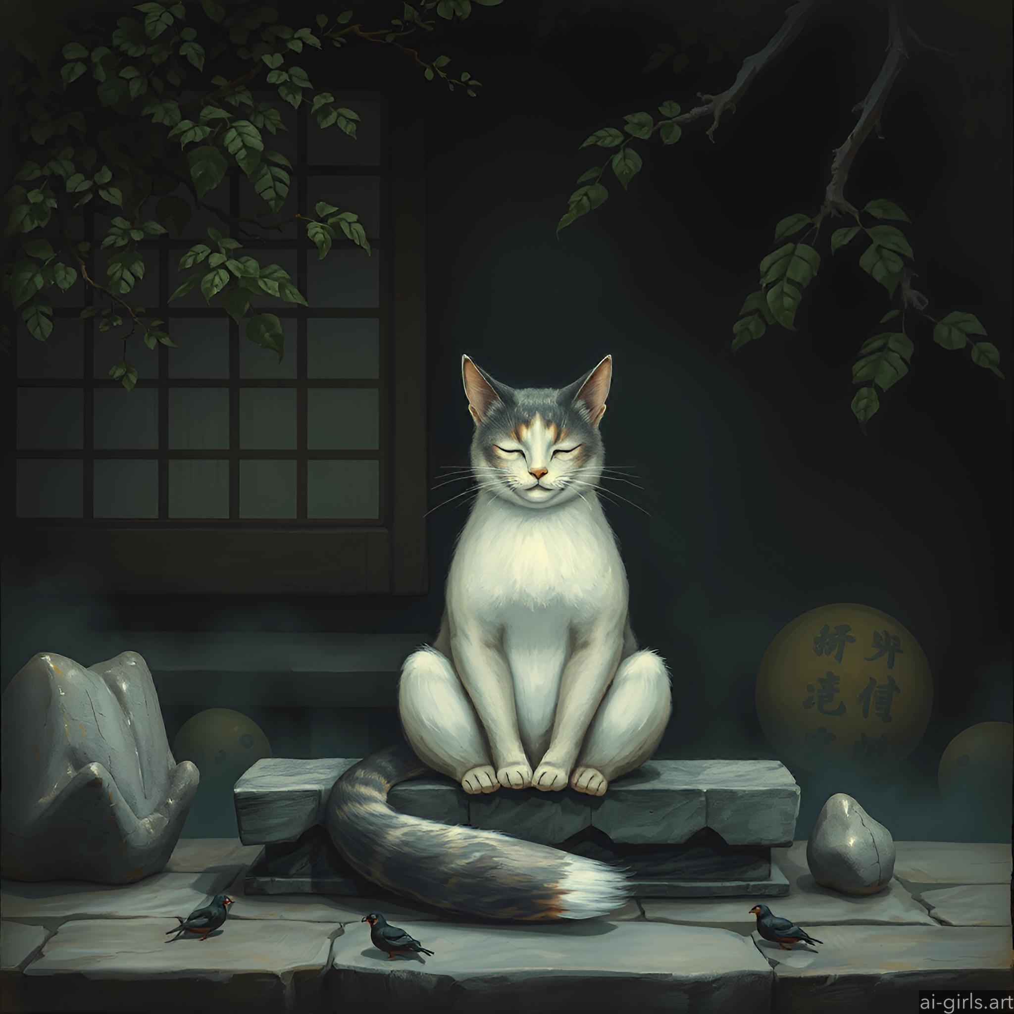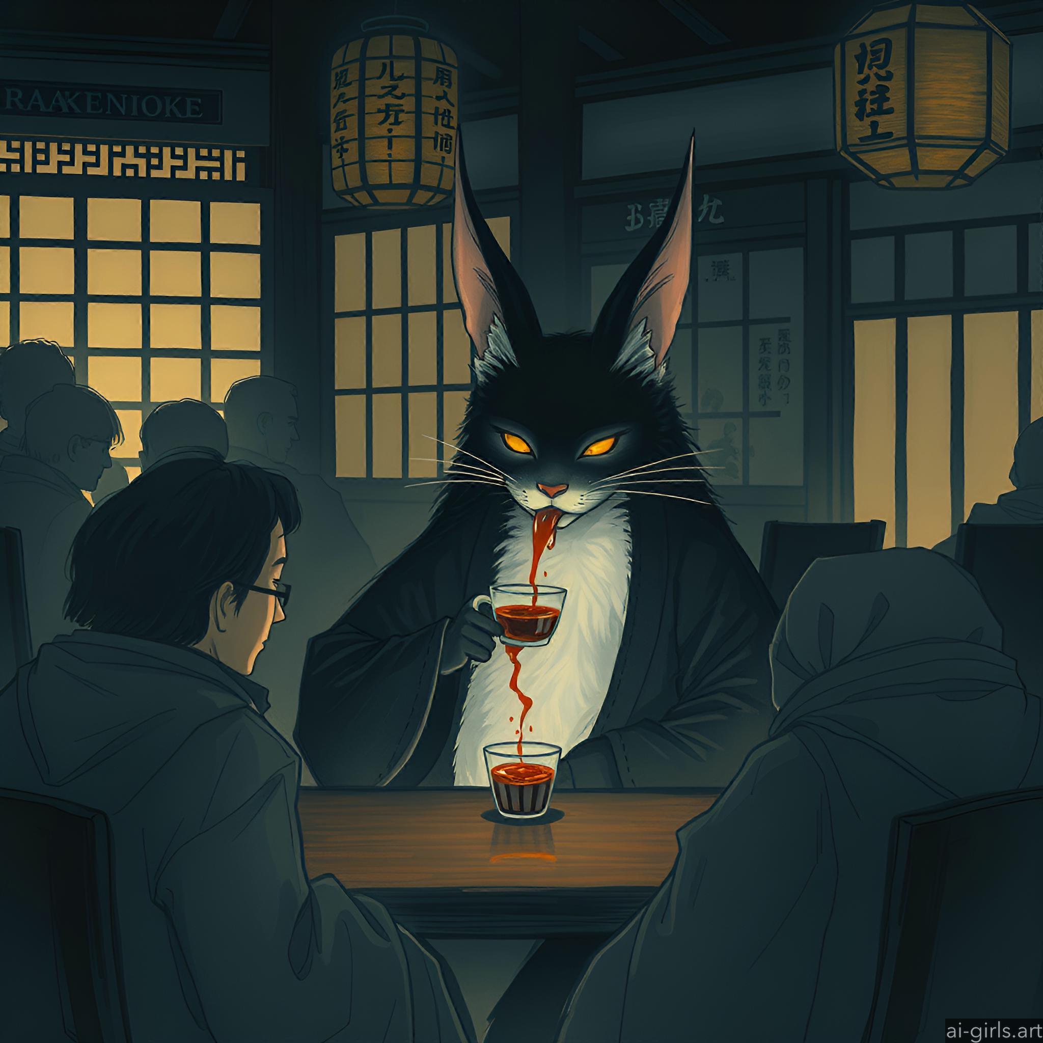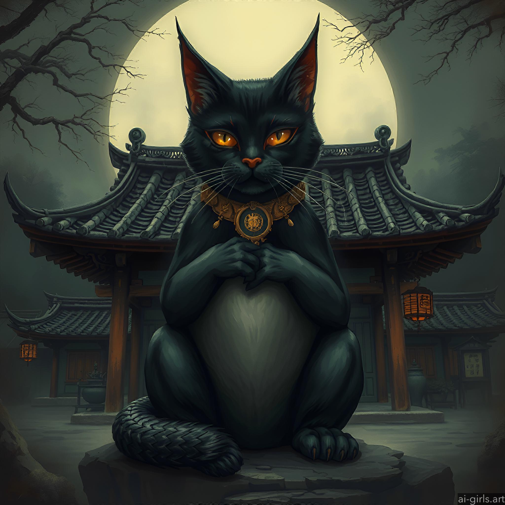 Bakeneko are supernatural cats in Japanese folklore. Bakeneko can transform into human forms, often taking on the appearance of a woman. They are known to engage in activities such as dancing and speaking human words.