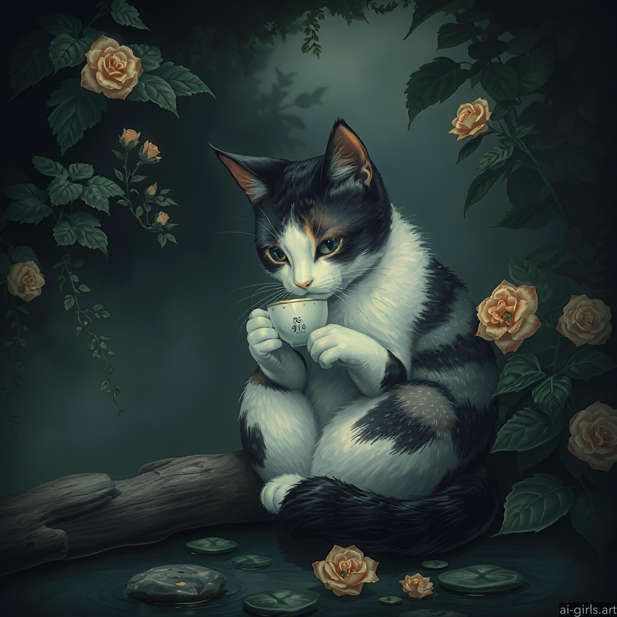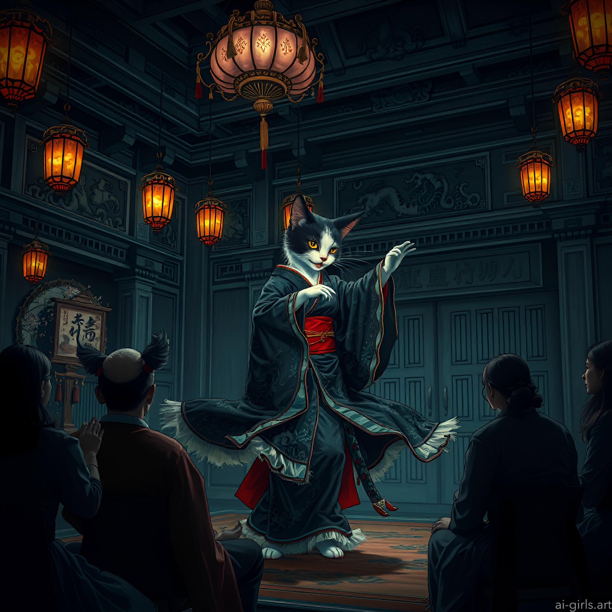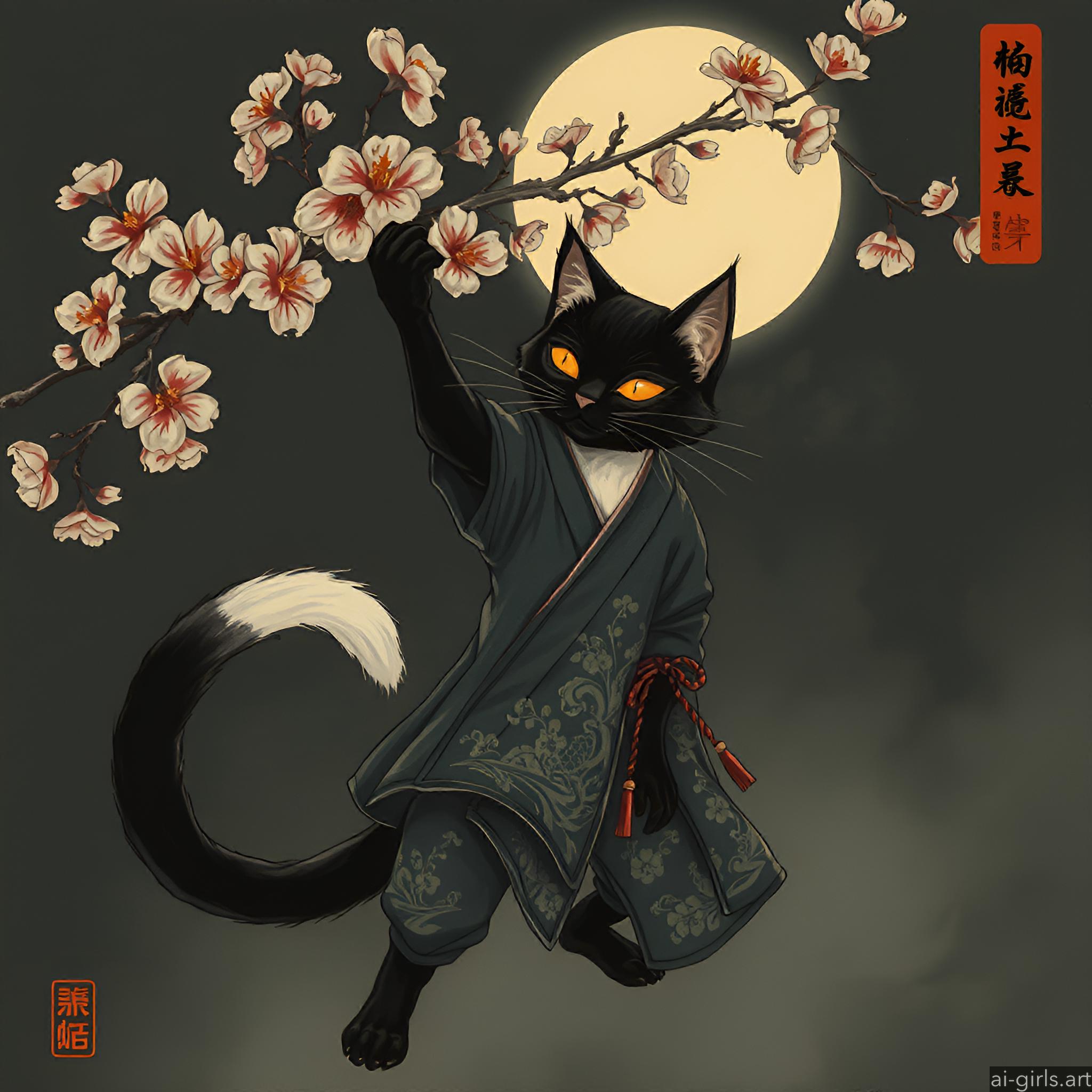 Bakeneko are supernatural cats in Japanese folklore. Bakeneko can transform into human forms, often taking on the appearance of a woman. They are known to engage in activities such as dancing and speaking human words.