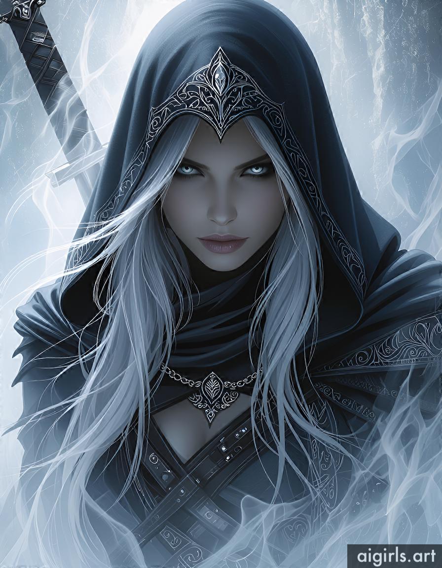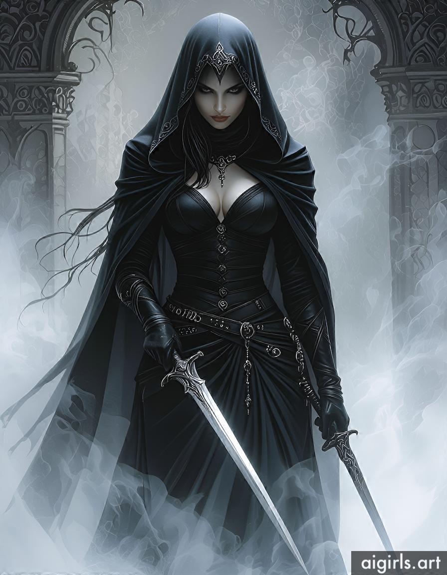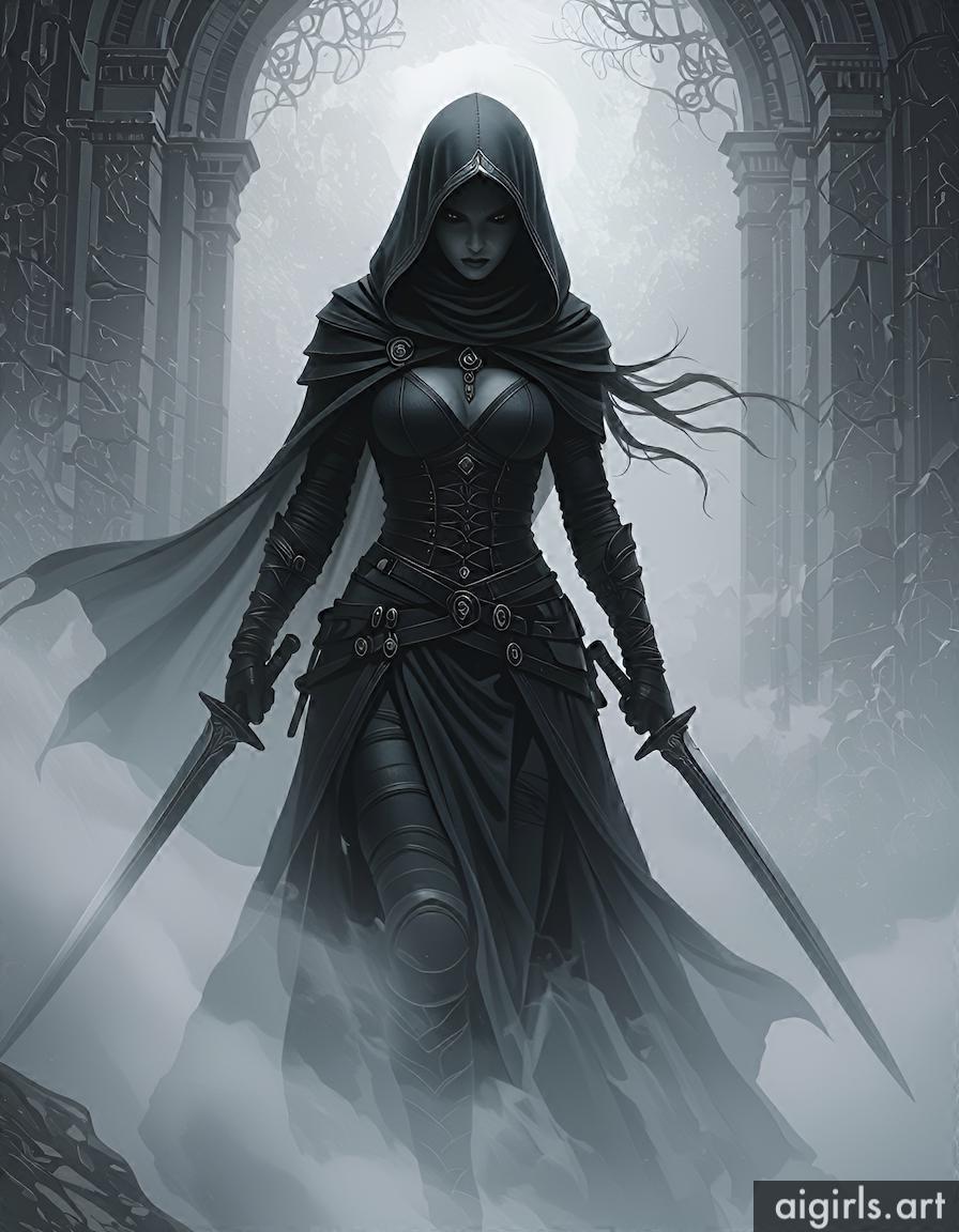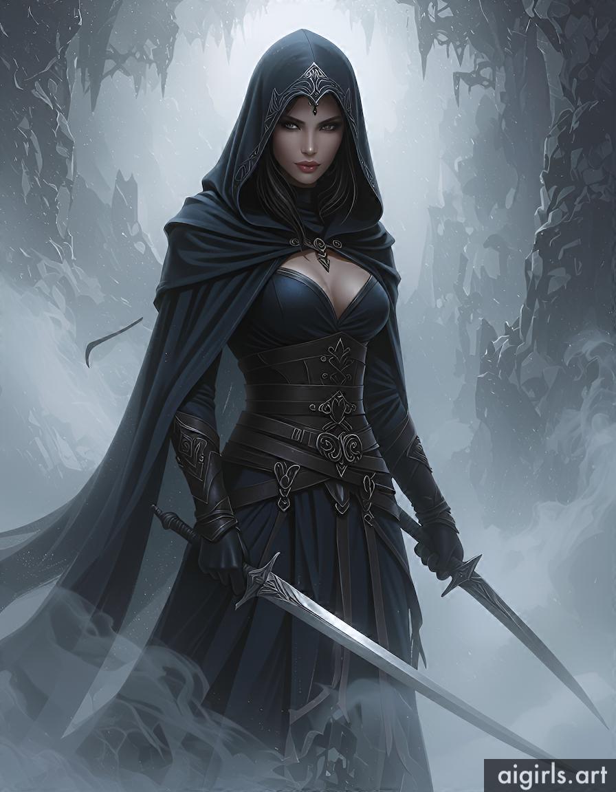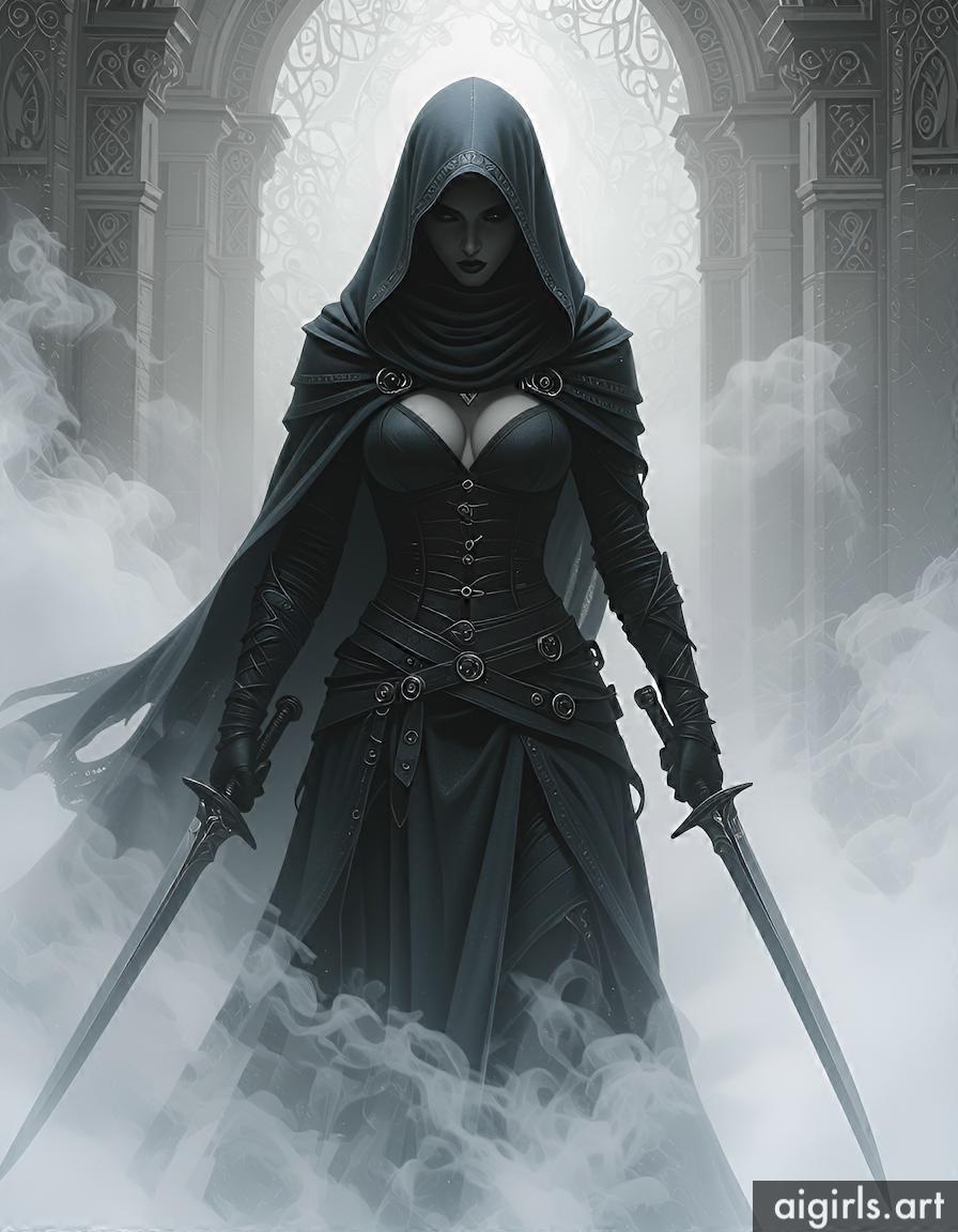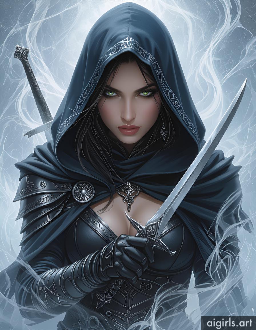 Hooded assassin woman.