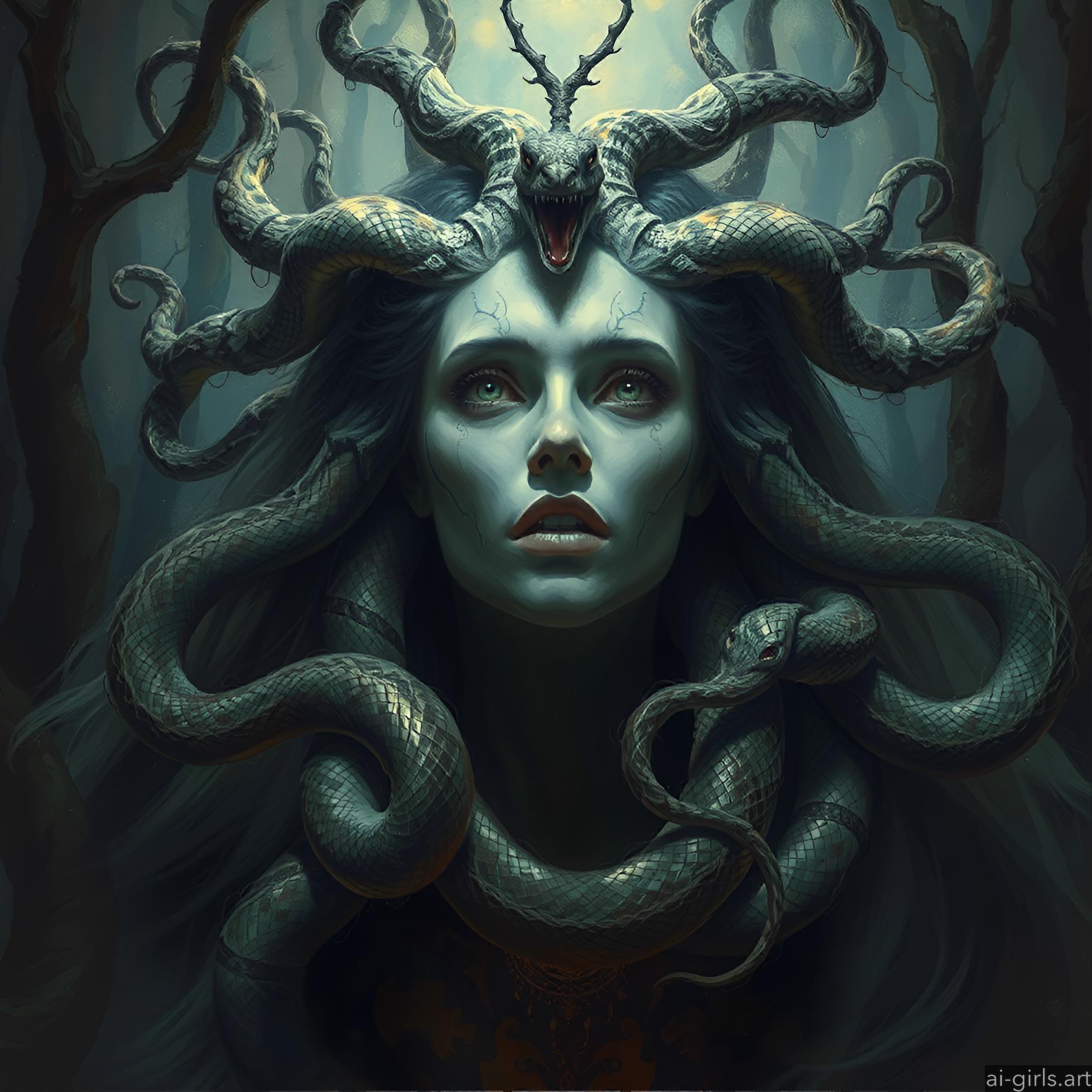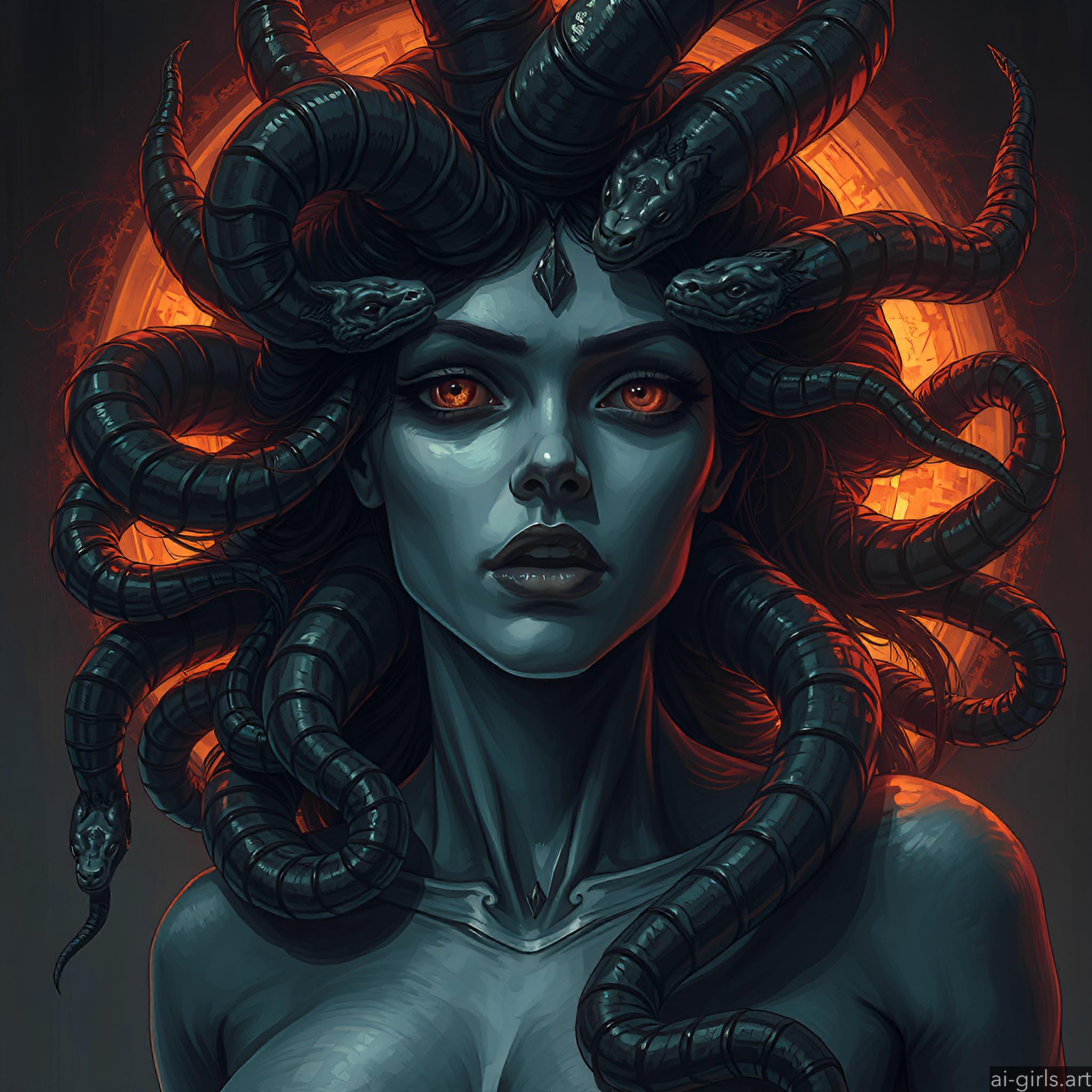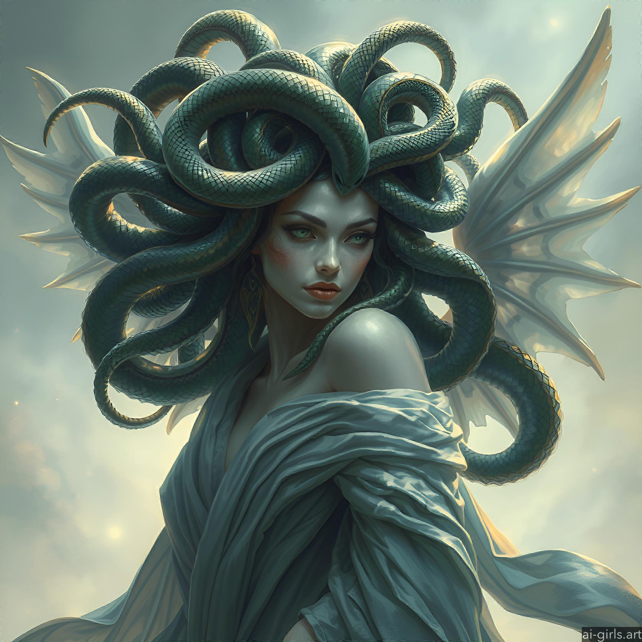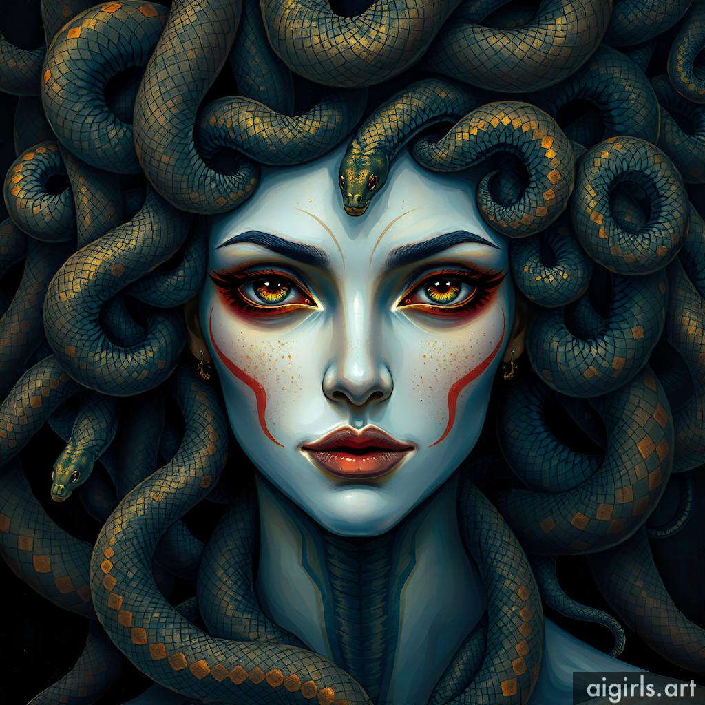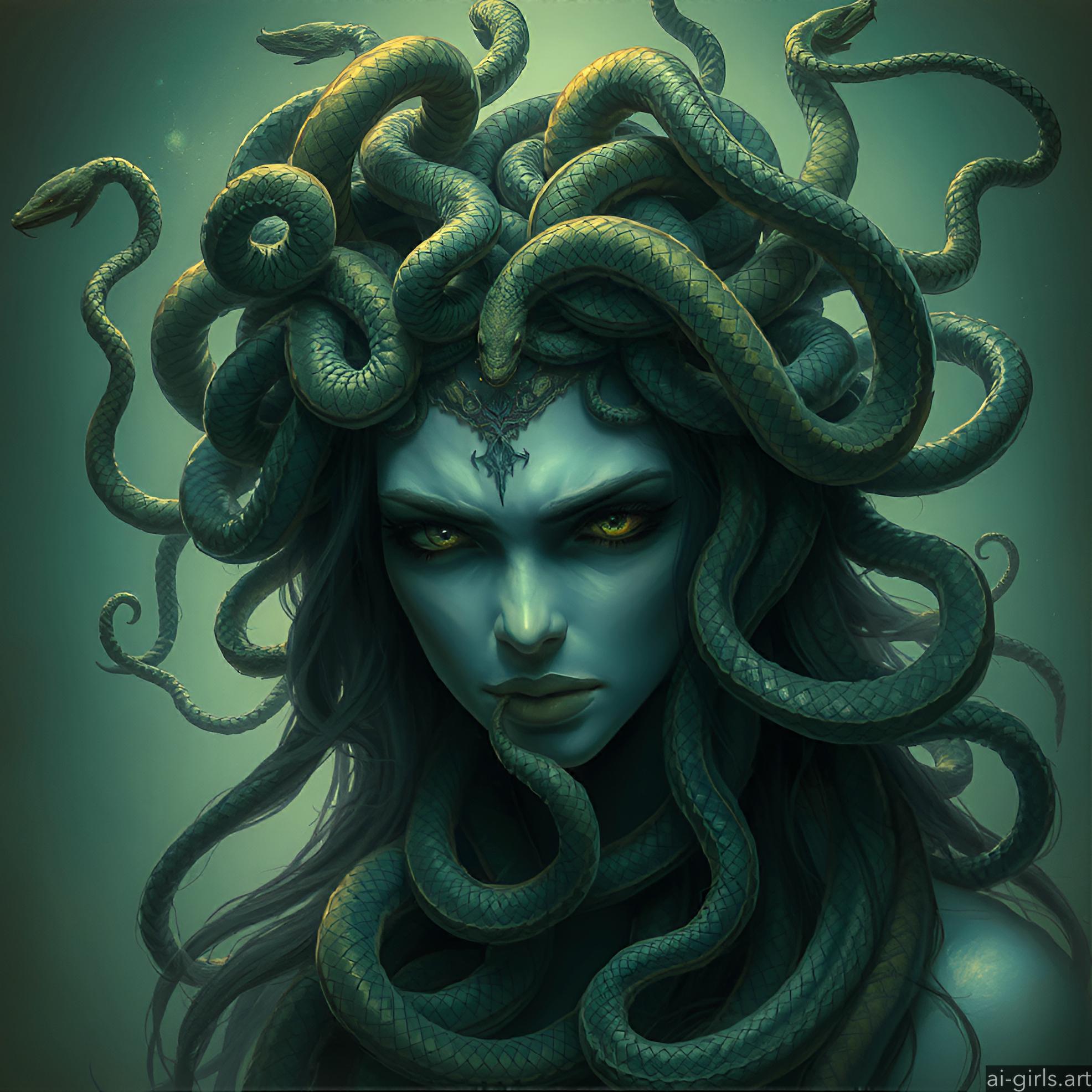 Medusa is a prominent figure in Greek mythology, known as one of the three Gorgons, the daughters of the primordial sea gods Phorcys and Ceto. She is typically depicted as a winged female creature with snakes for hair, and her gaze could turn anyone who looked at her into stone.