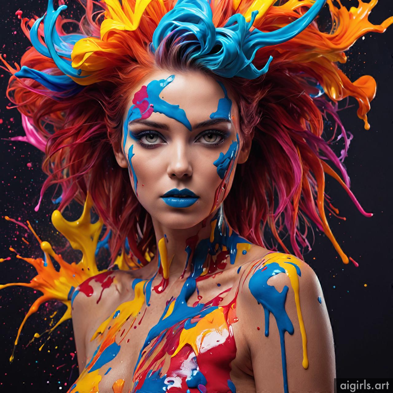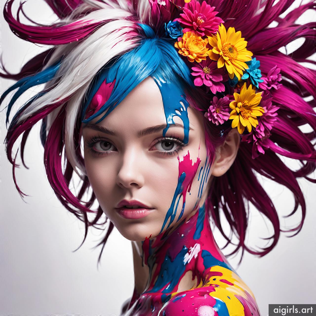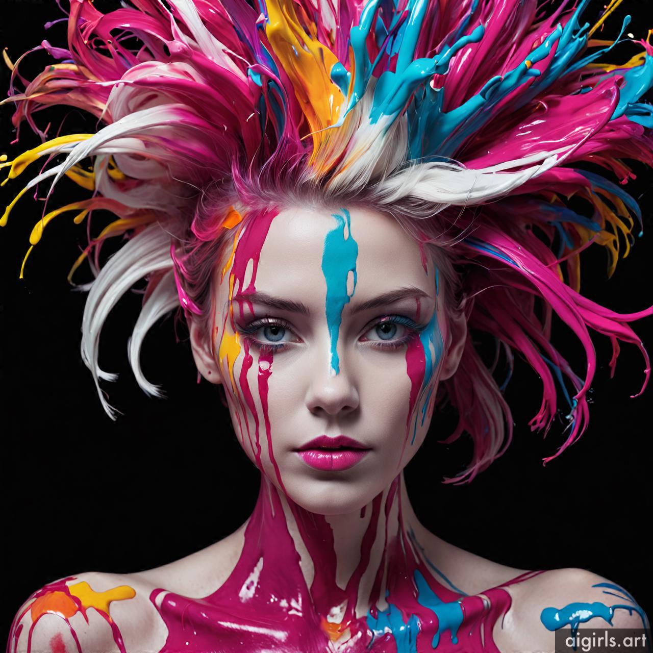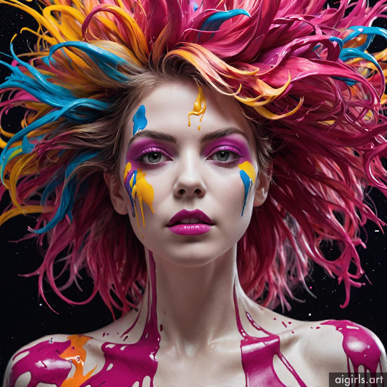 Woman colorful stains portraits are vibrant and dynamic works of art that employ bold splashes of color to create striking visual compositions. These portraits often feature women as the focal point, with their features and expressions rendered against a backdrop of abstract and colorful stains. The use of vibrant hues and fluid shapes adds energy and movement to the artwork, infusing it with a sense of liveliness and spontaneity. Each portrait is a unique expression of creativity, with the colorful stains serving as both a decorative element and a means of conveying emotion and mood.