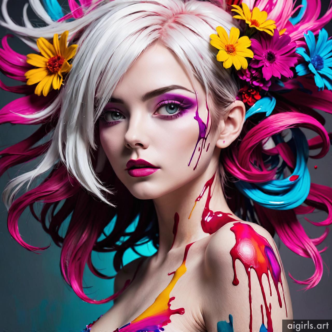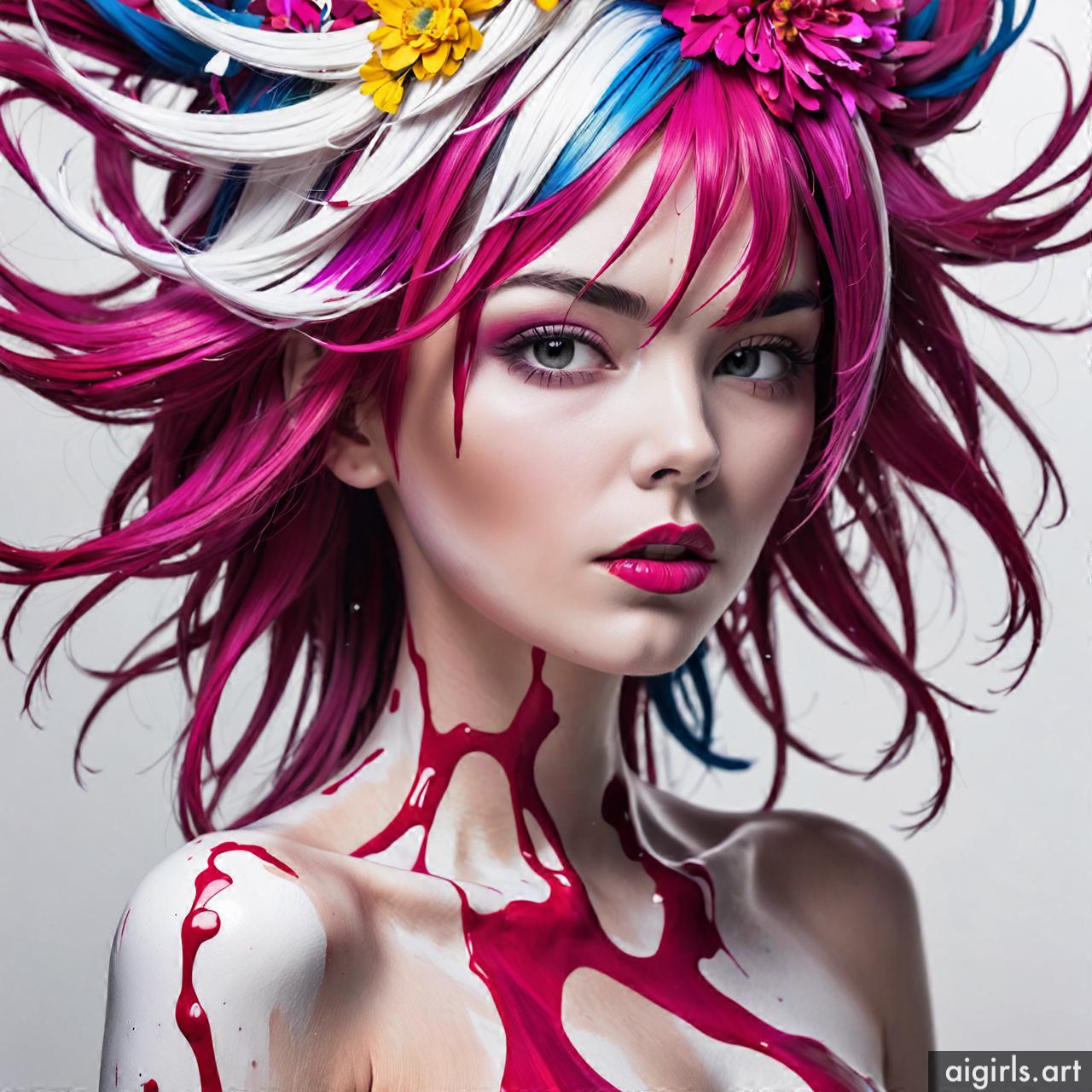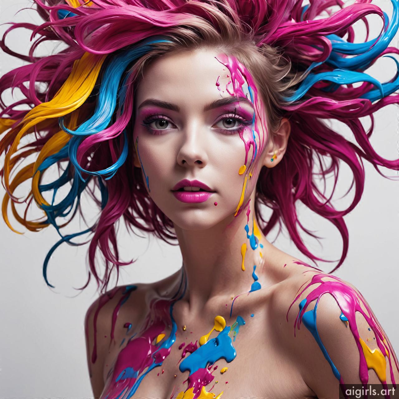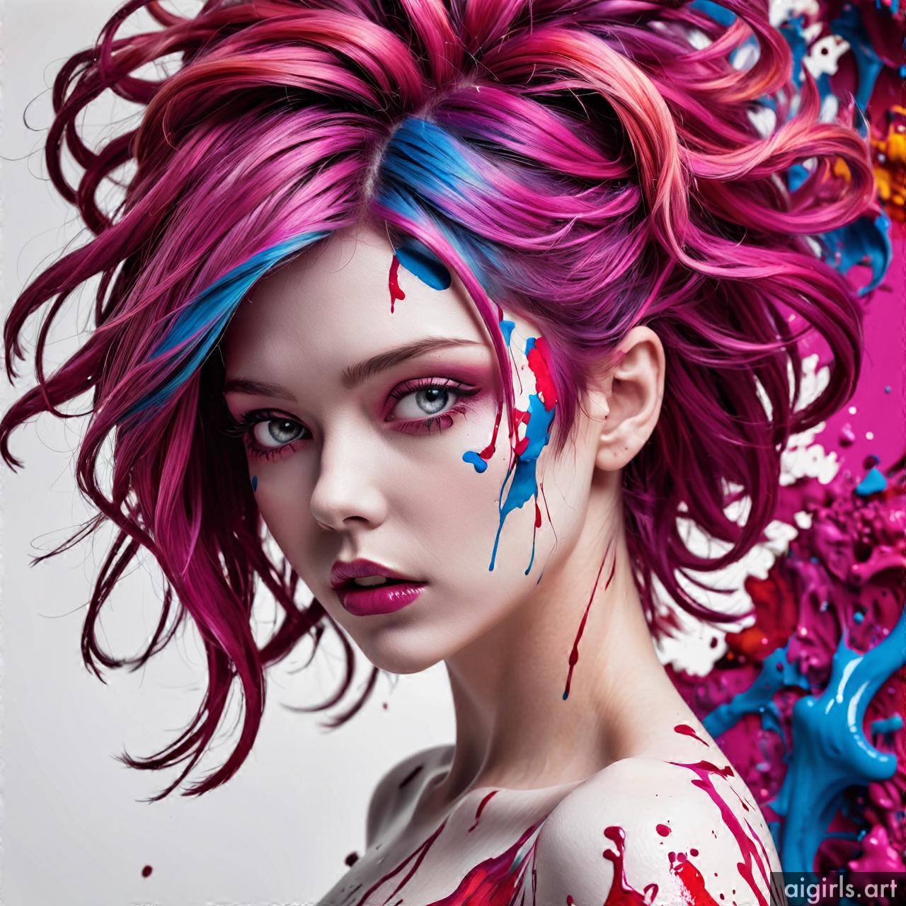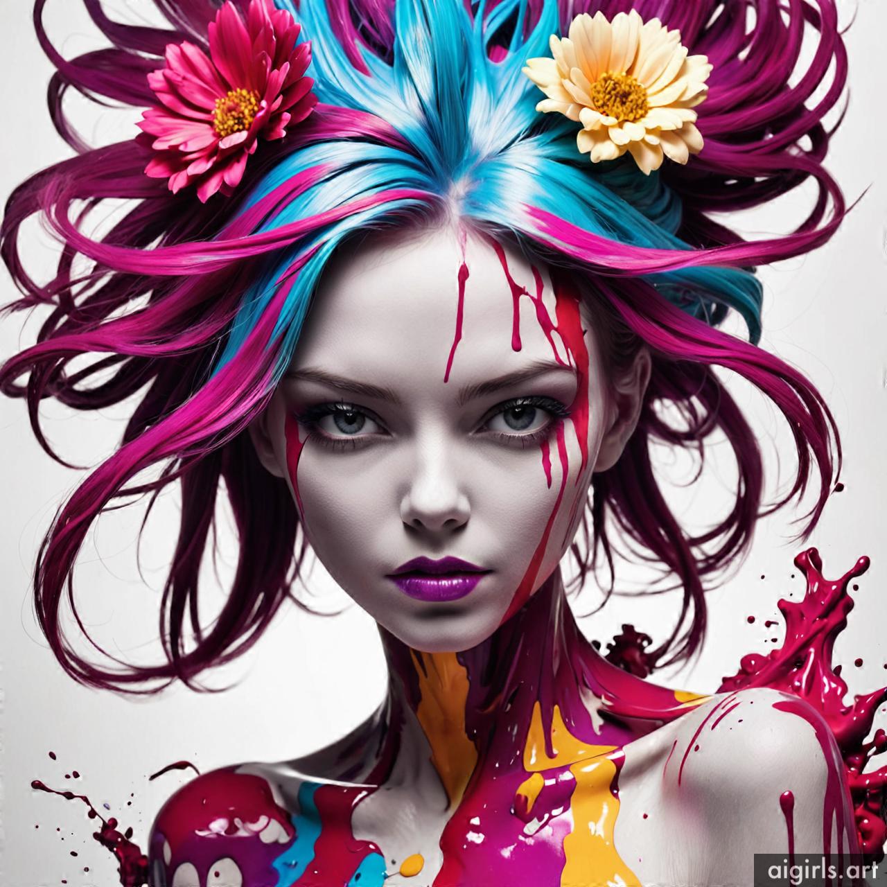 Woman colorful stains portraits are vibrant and dynamic works of art that employ bold splashes of color to create striking visual compositions. These portraits often feature women as the focal point, with their features and expressions rendered against a backdrop of abstract and colorful stains. The use of vibrant hues and fluid shapes adds energy and movement to the artwork, infusing it with a sense of liveliness and spontaneity. Each portrait is a unique expression of creativity, with the colorful stains serving as both a decorative element and a means of conveying emotion and mood.
