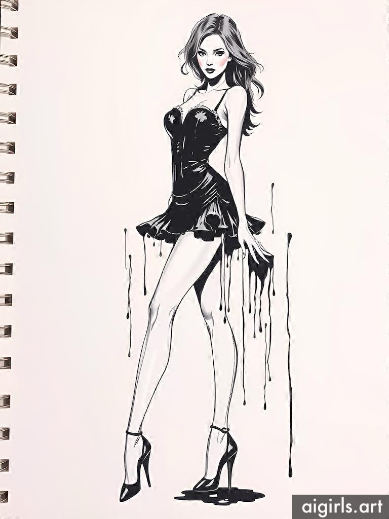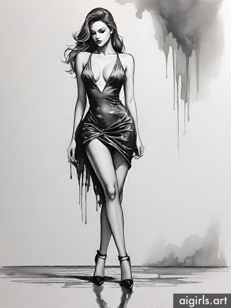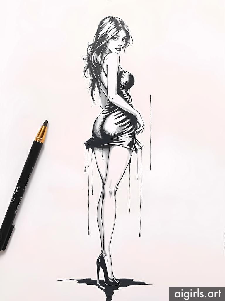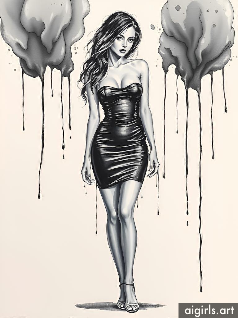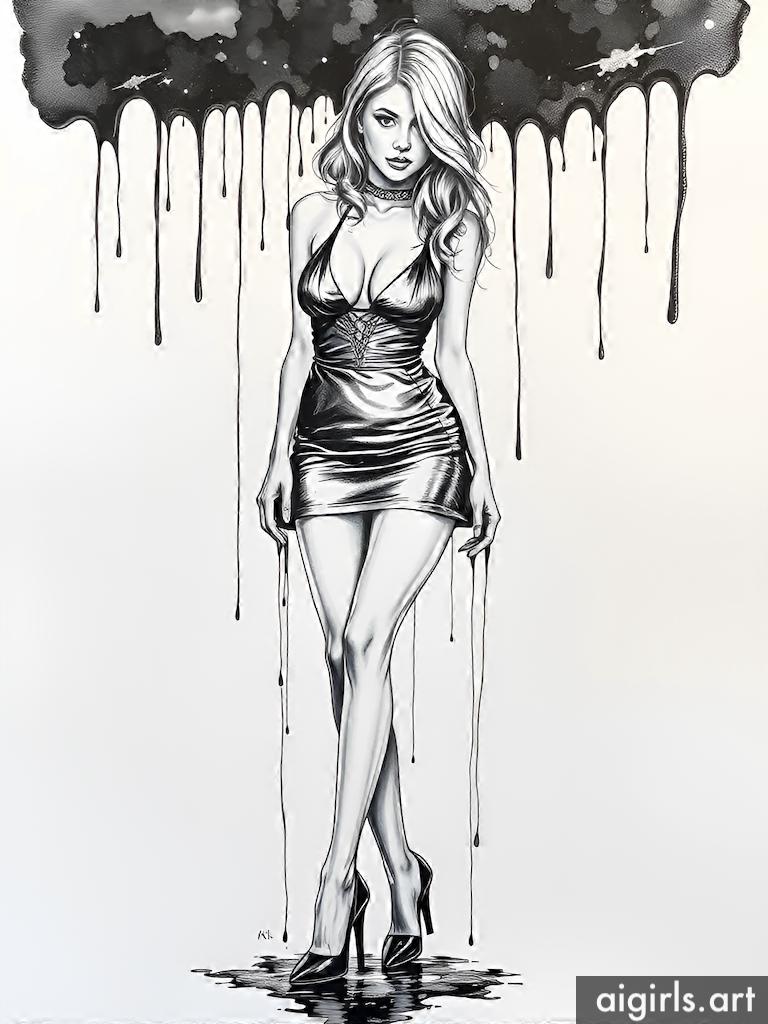 Ink dripping woman drawings
