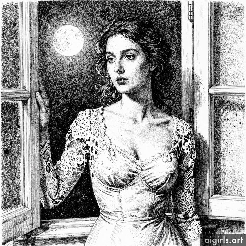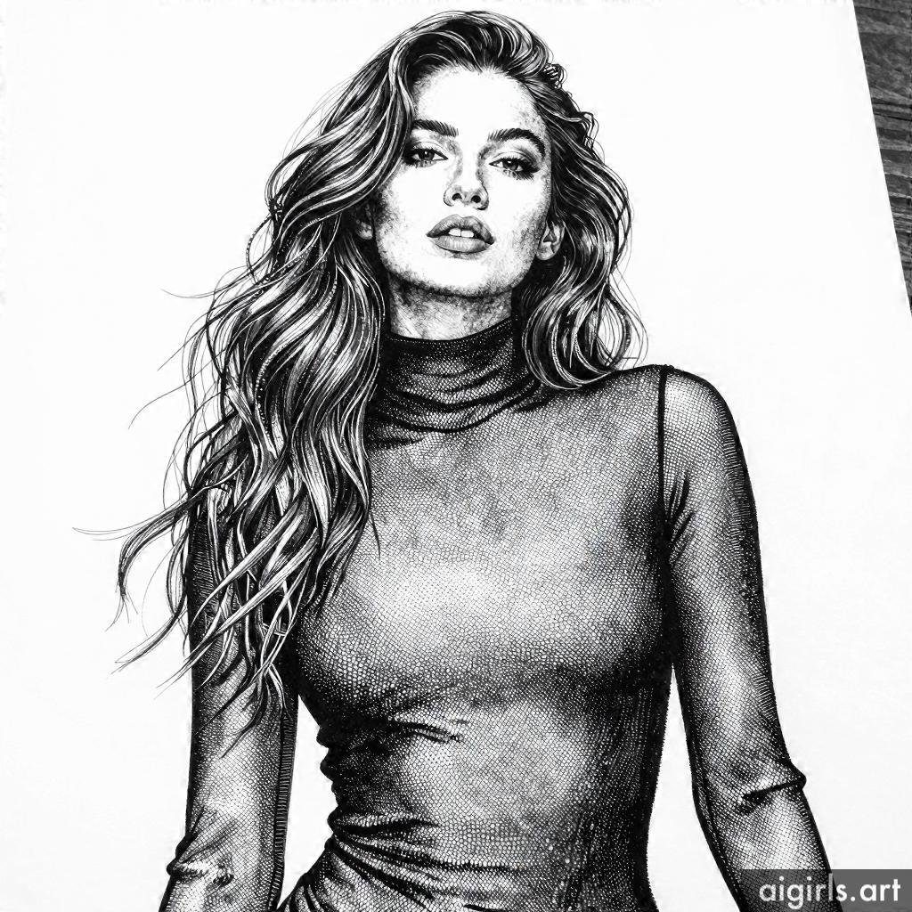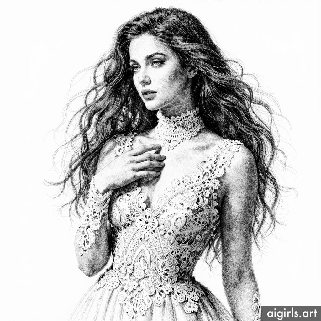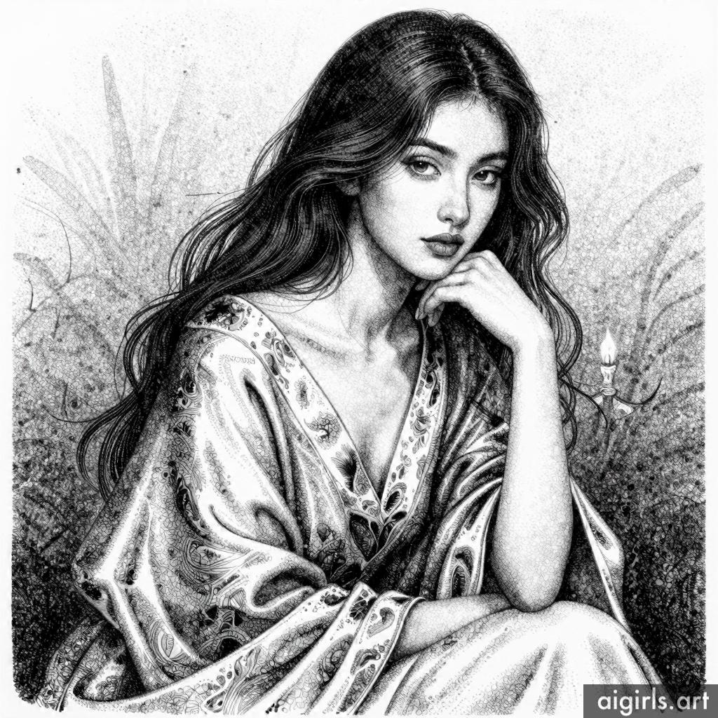 Ai girls stippling ink drawings