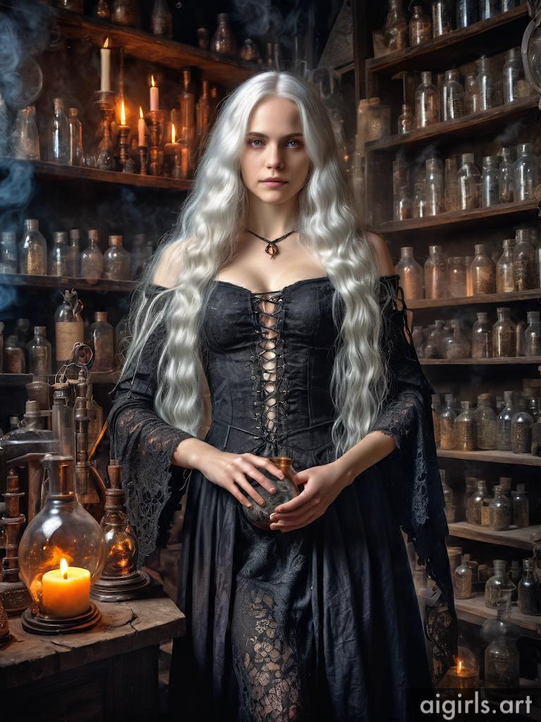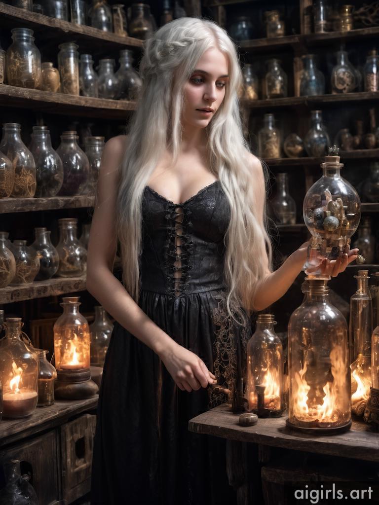 A young alchemist girl in her laboratory