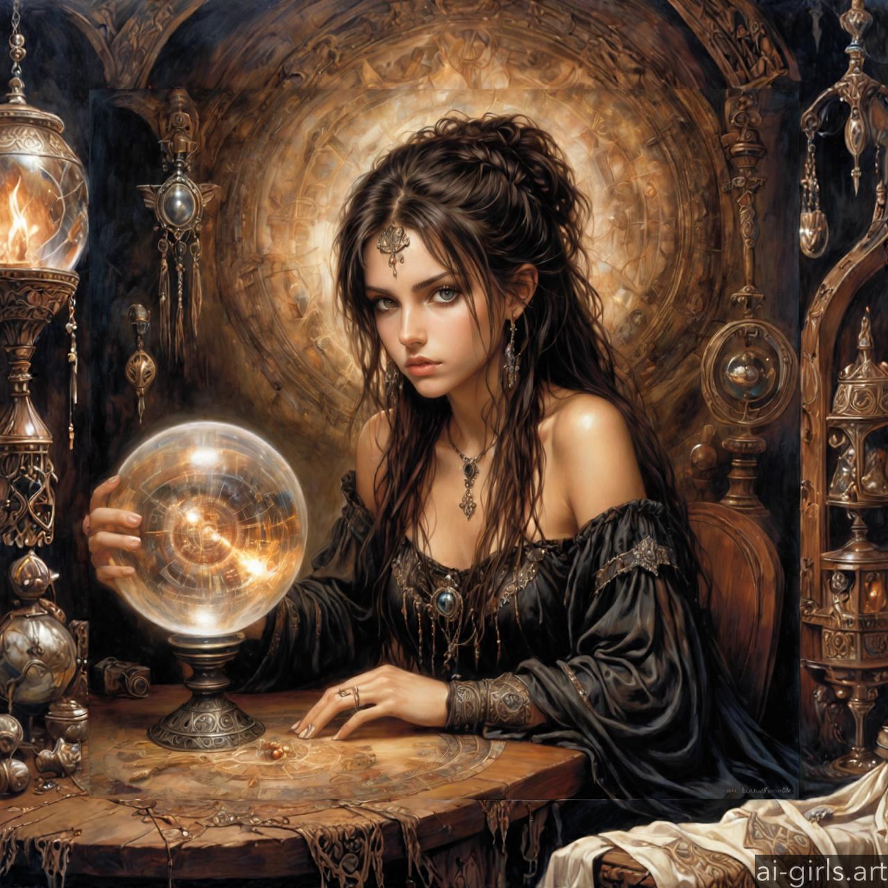 A sorceress holding a fire globe