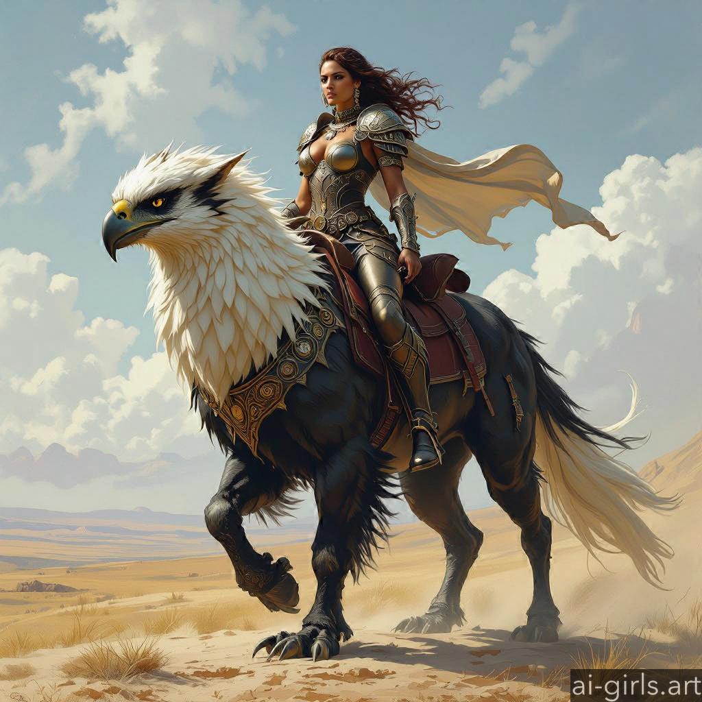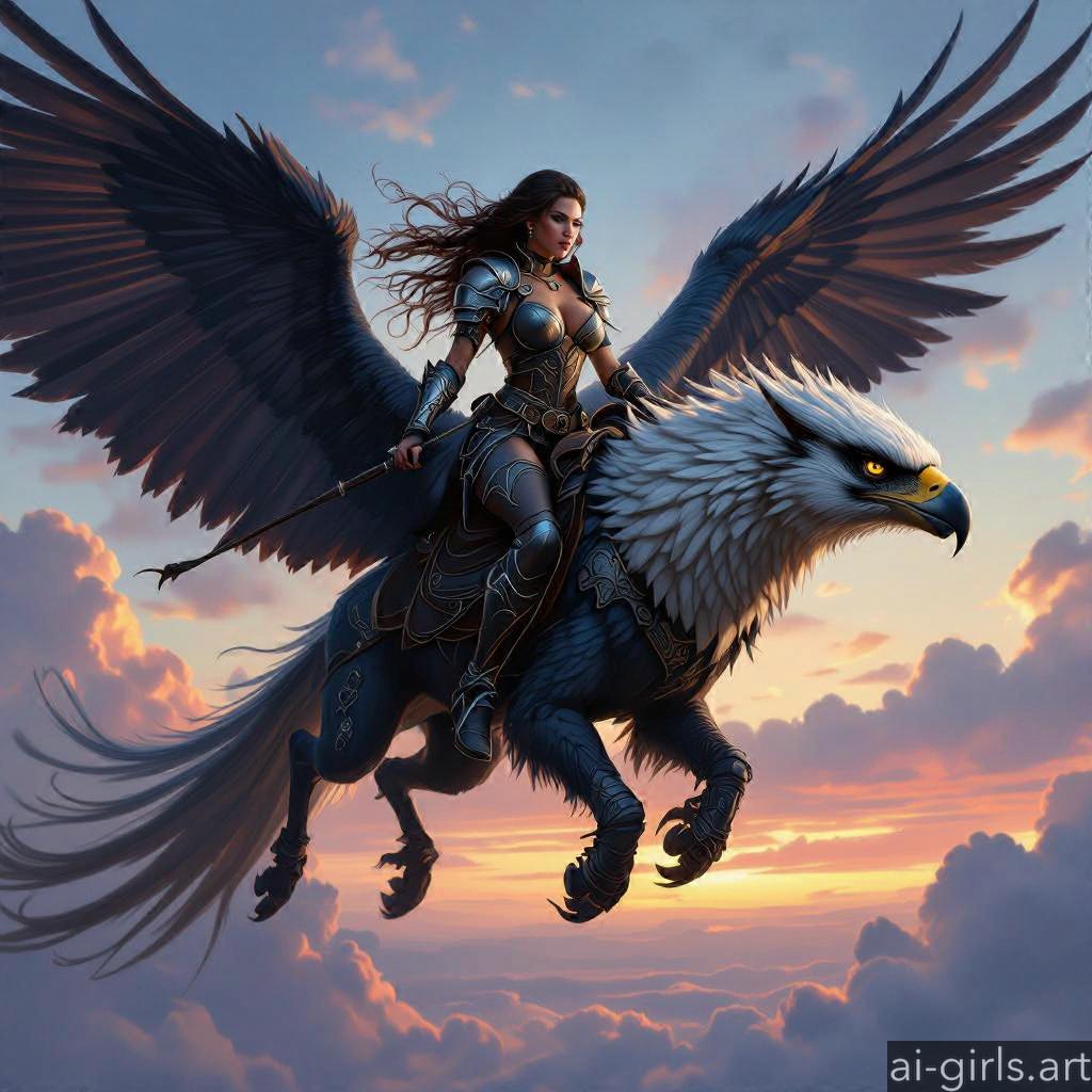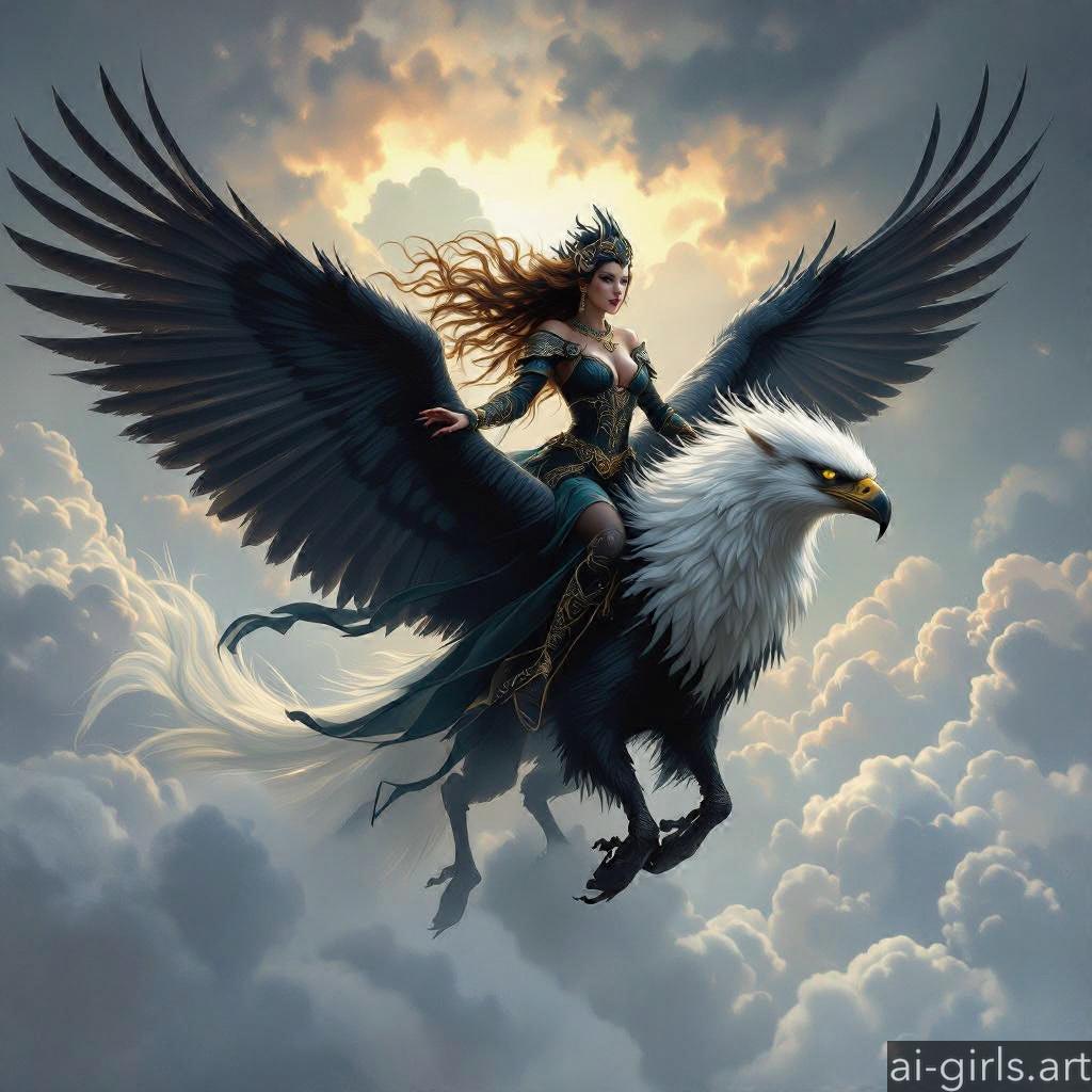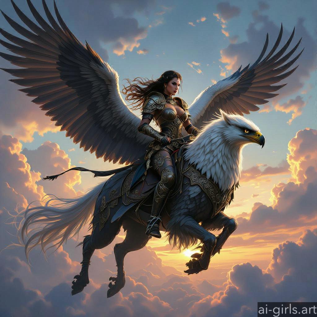 Woman riding a griffin