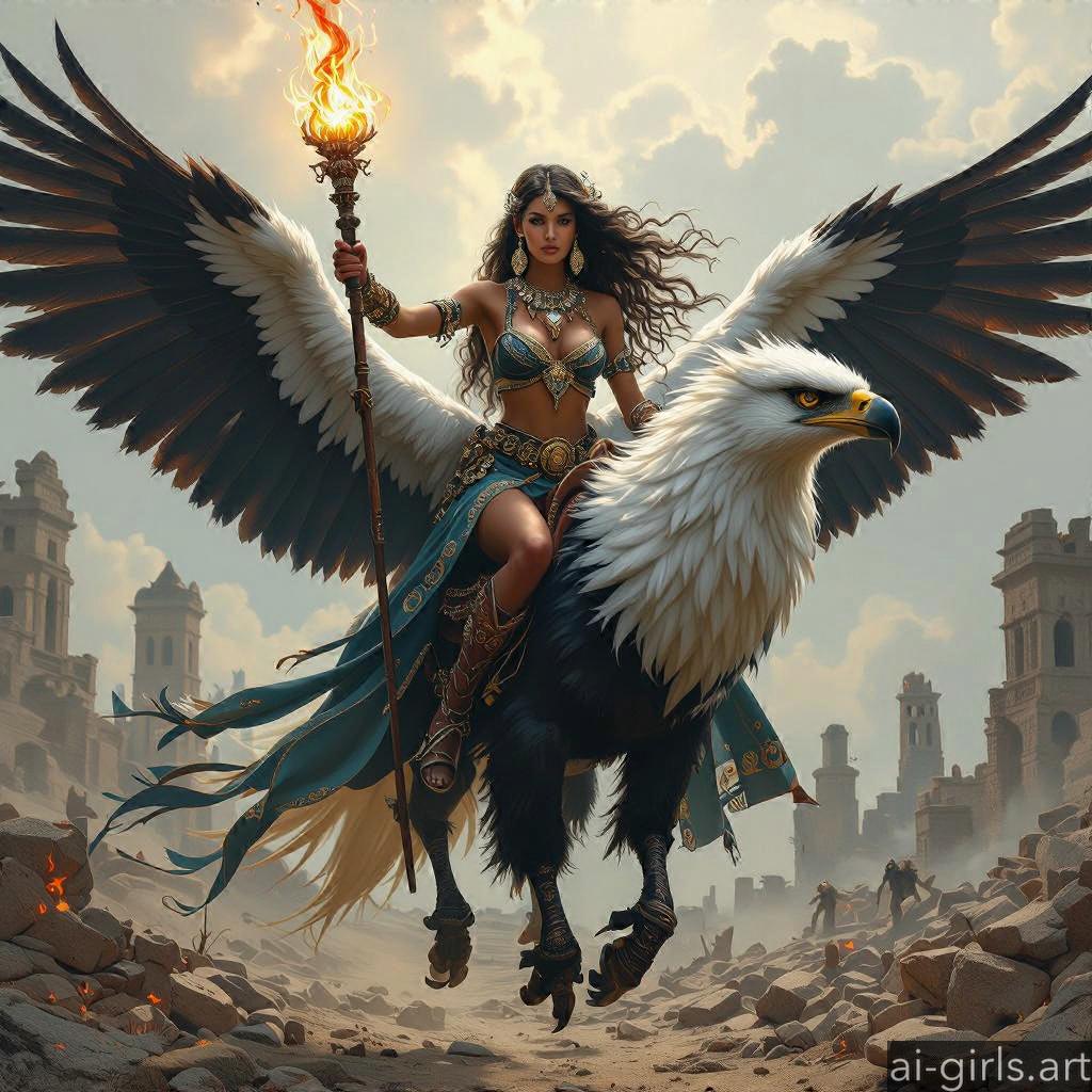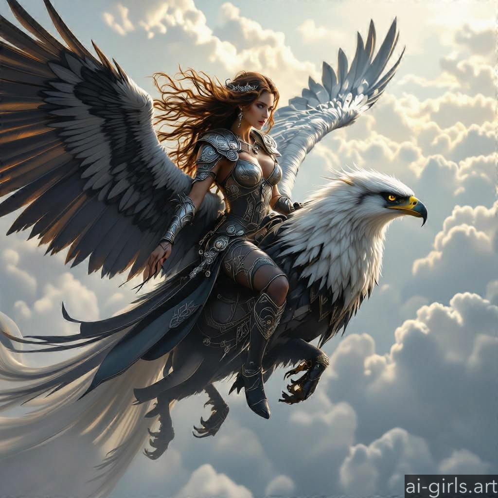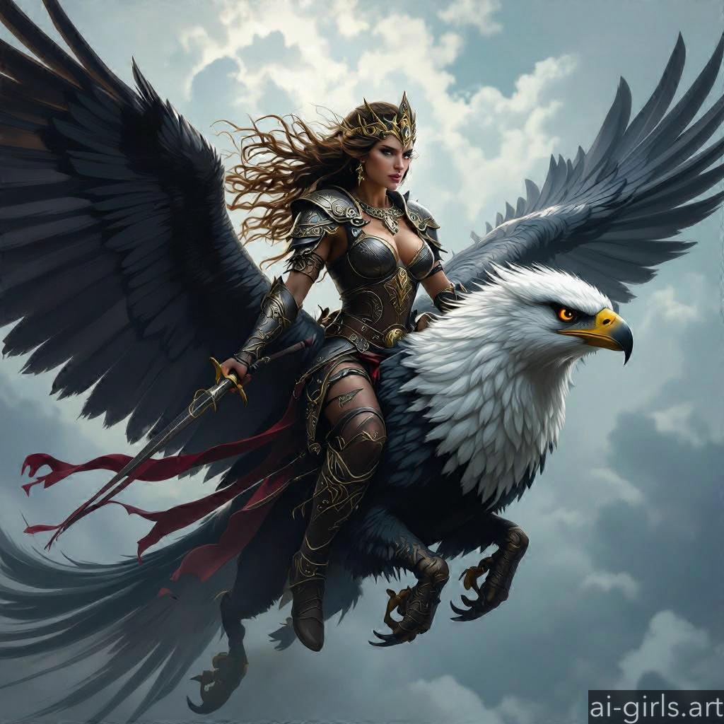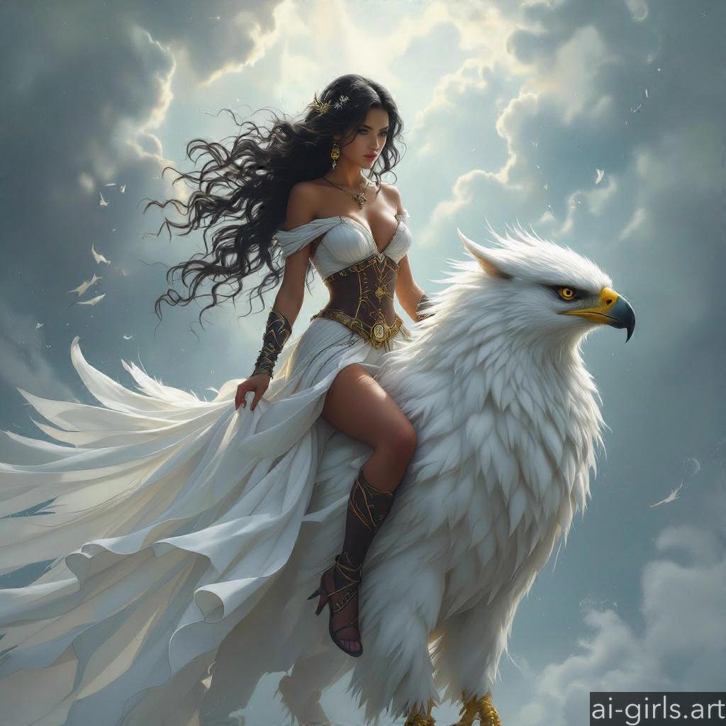 Woman riding a griffin