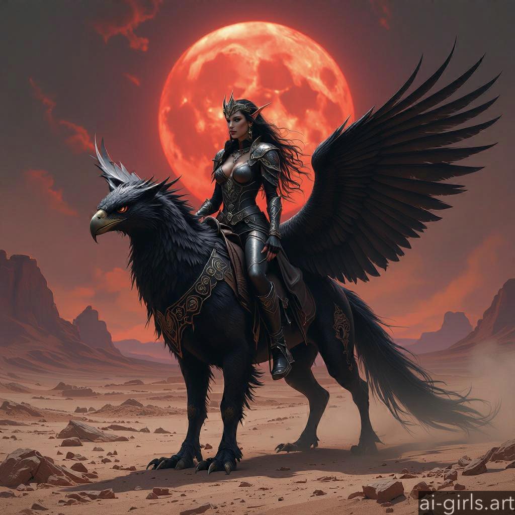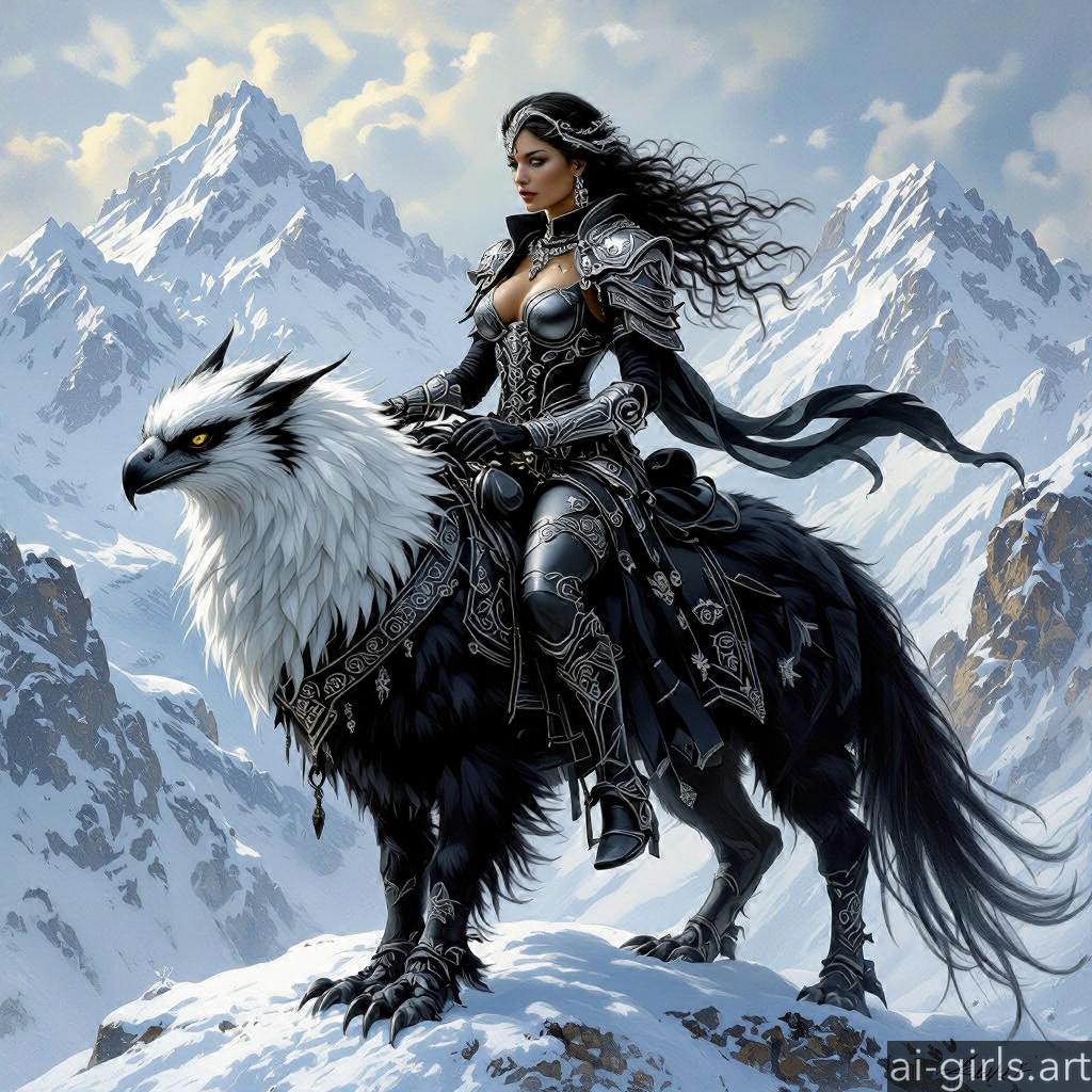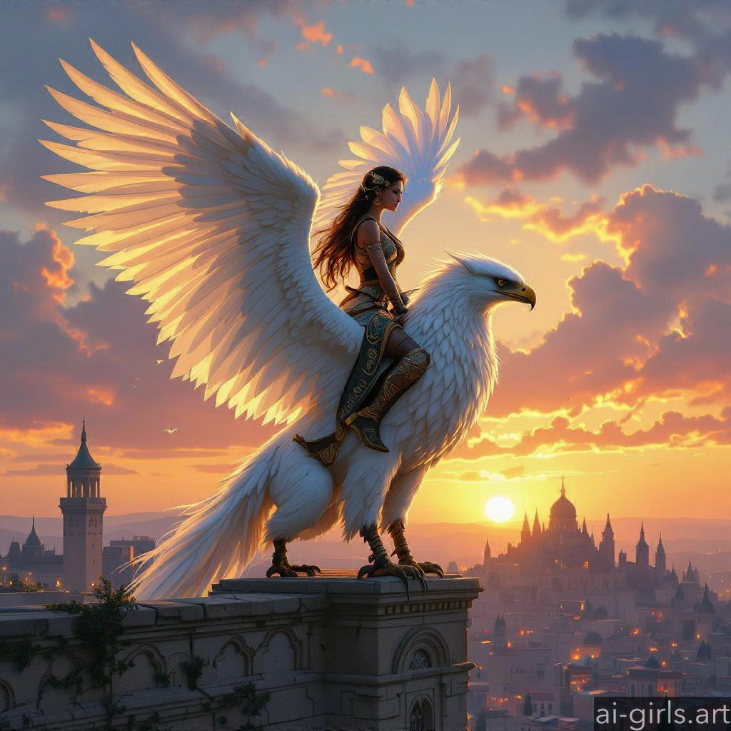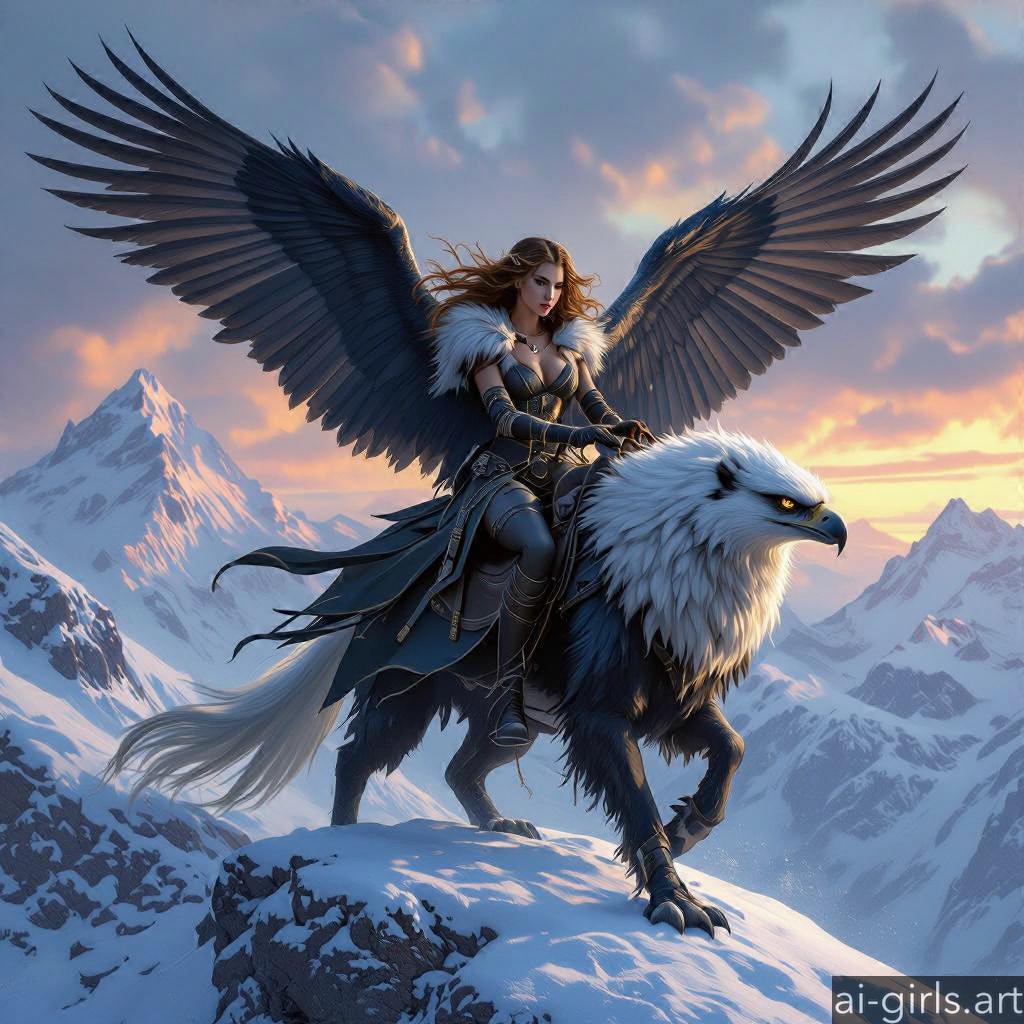 Woman riding a griffin