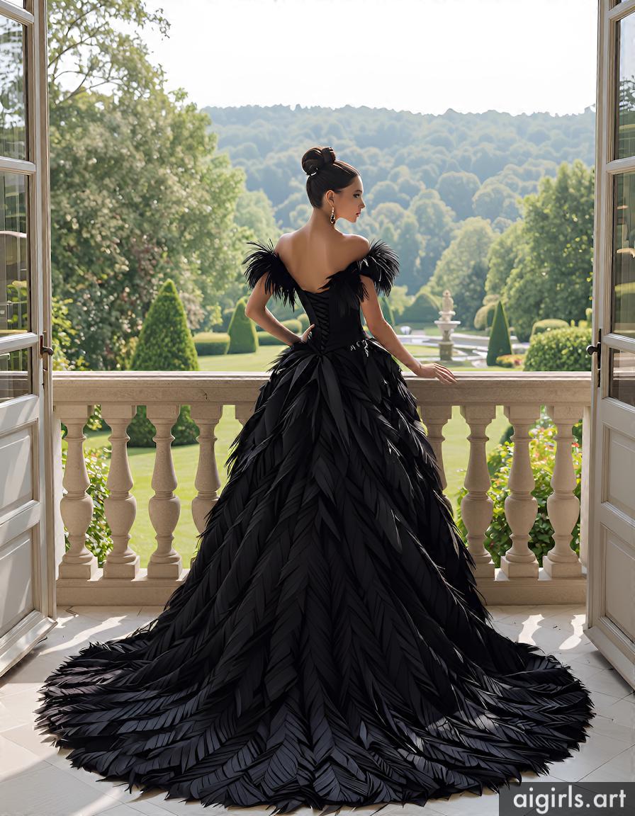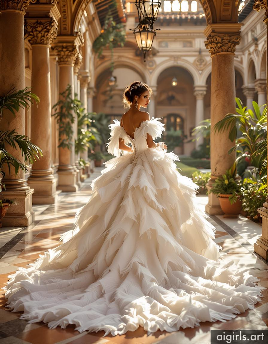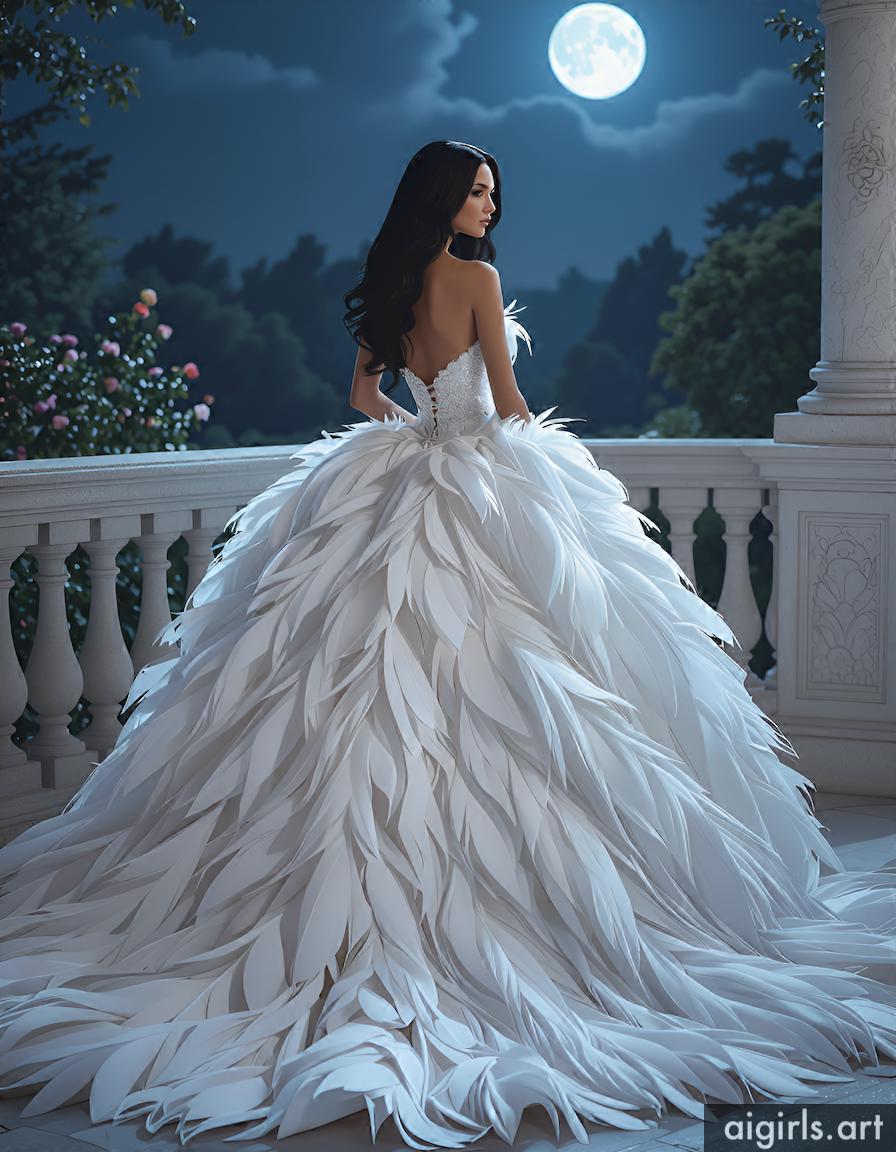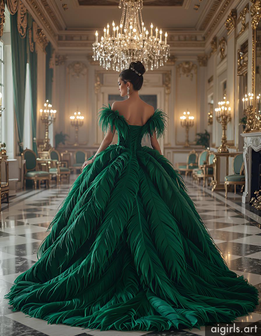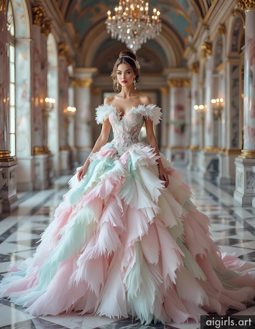 AI girls in feather ballgown