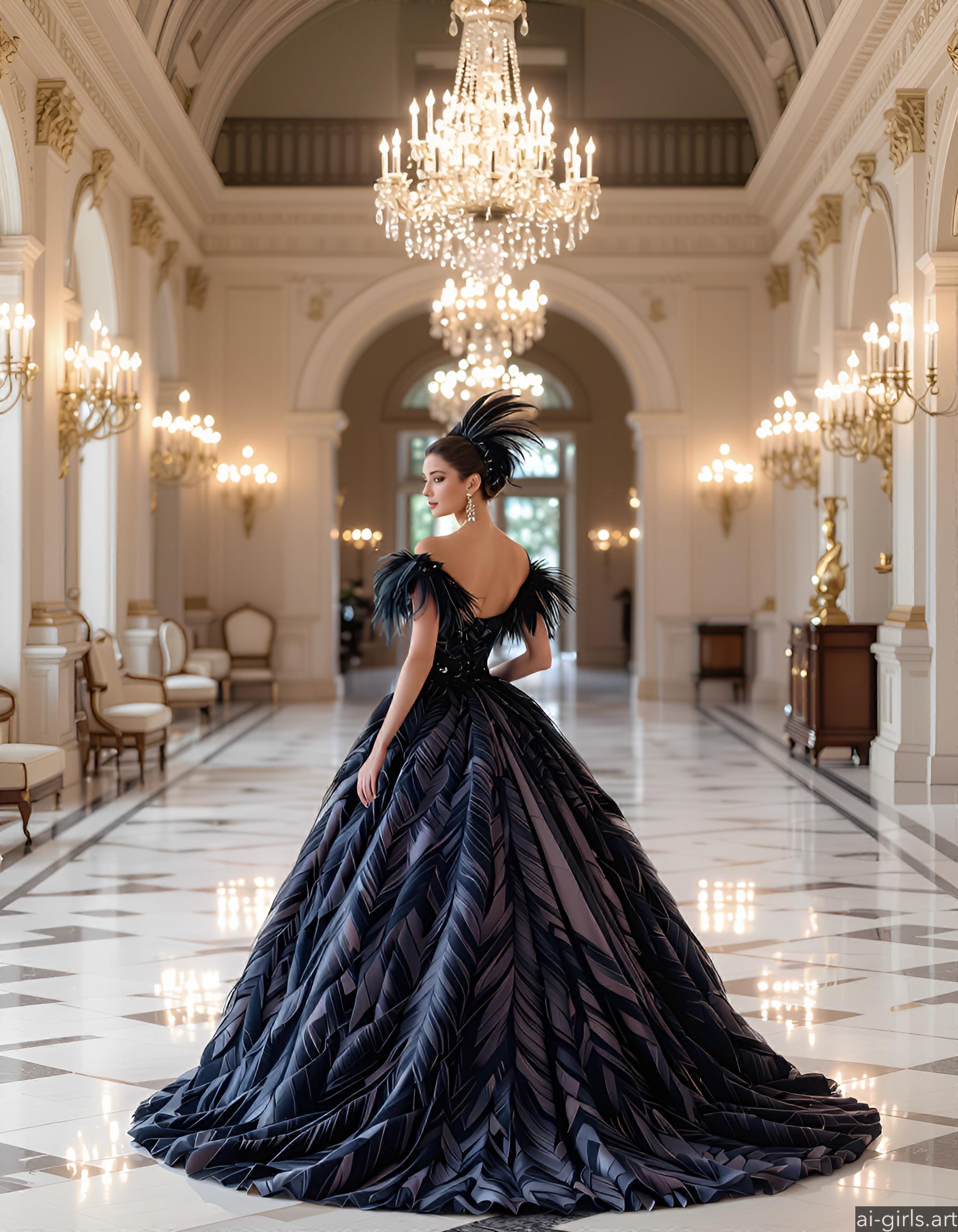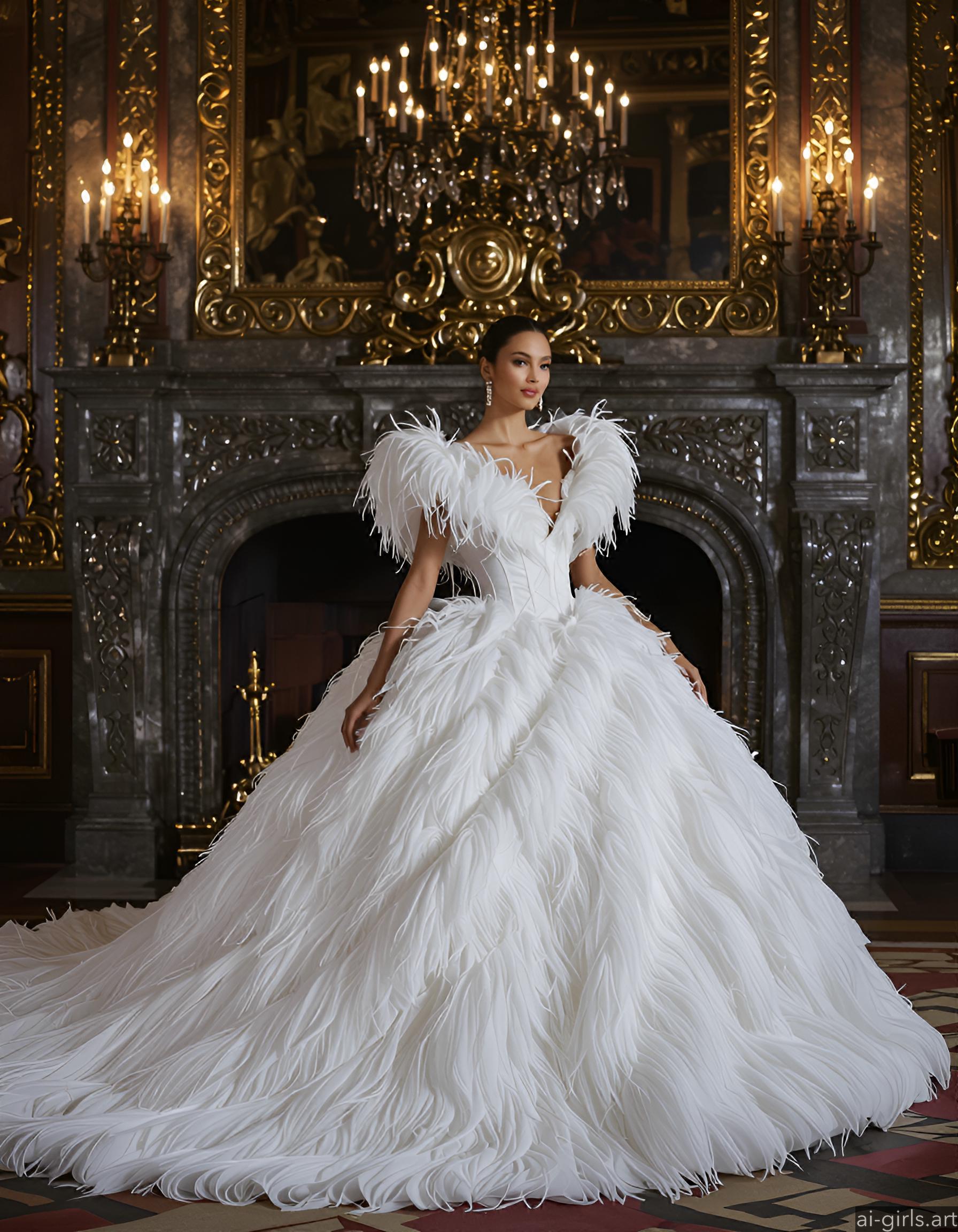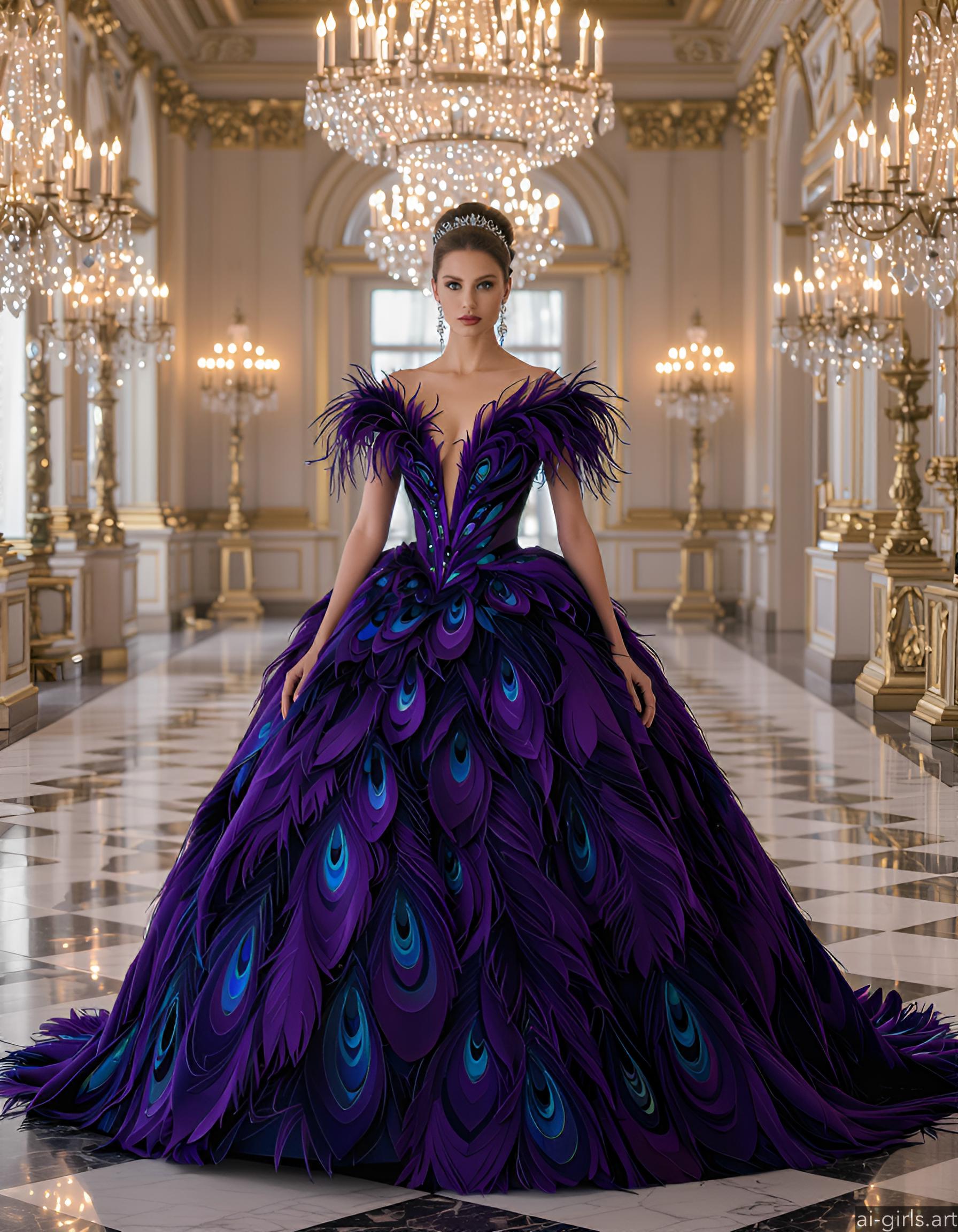 Beautiful AI girls in feather ballgown