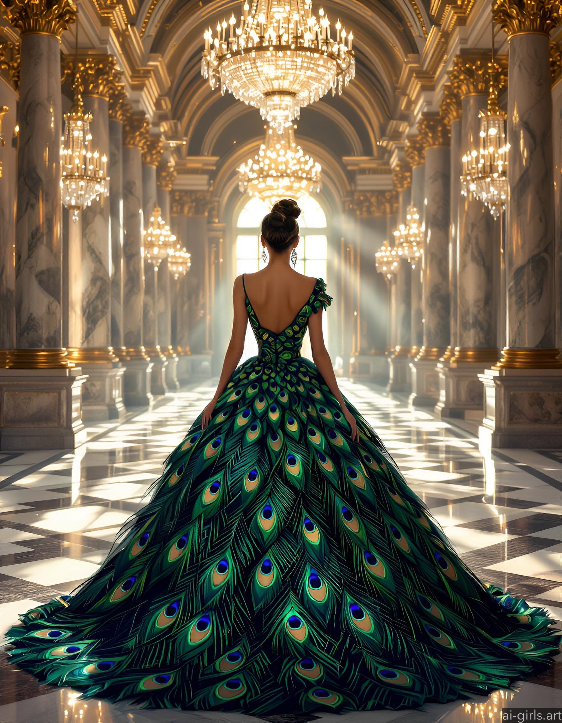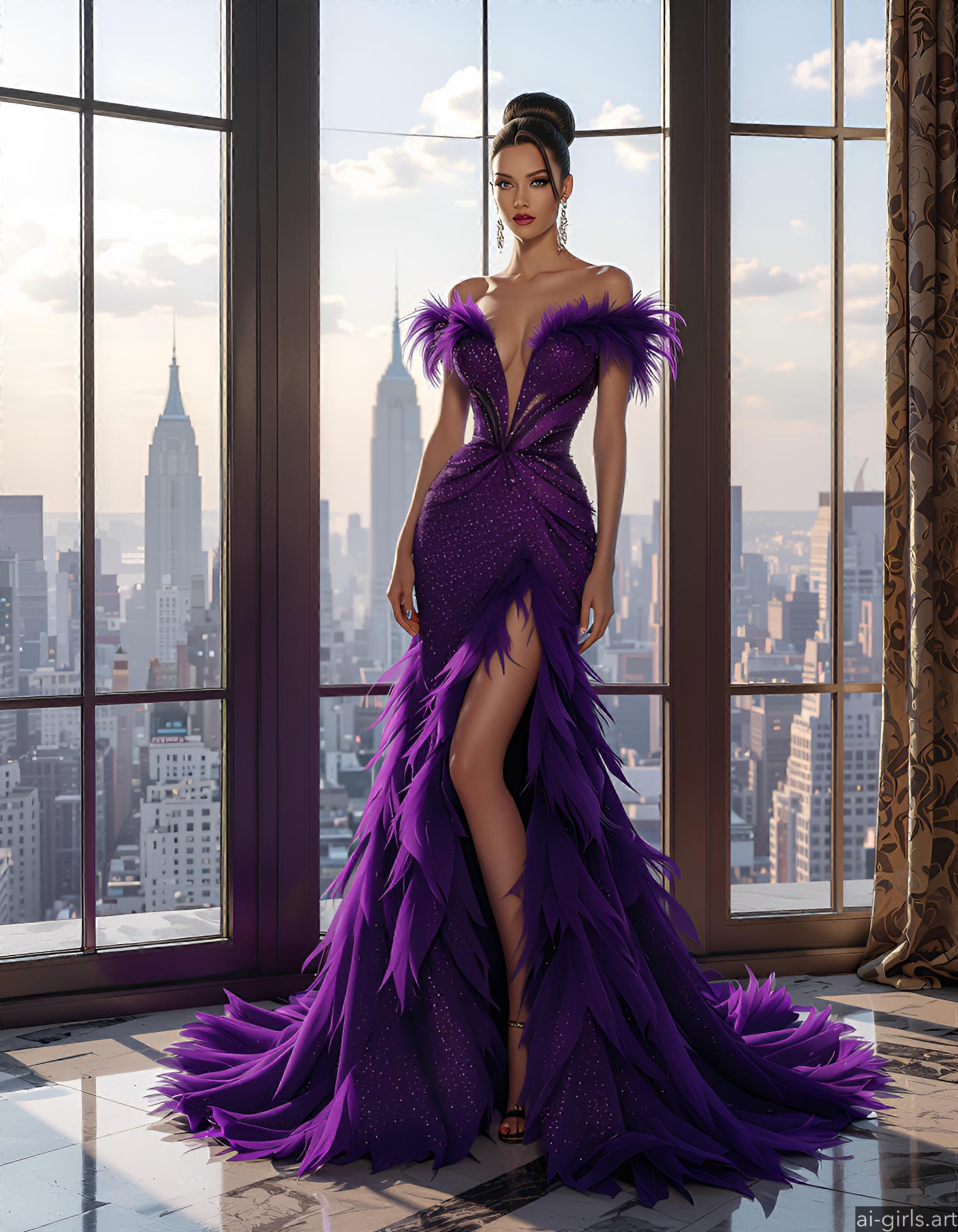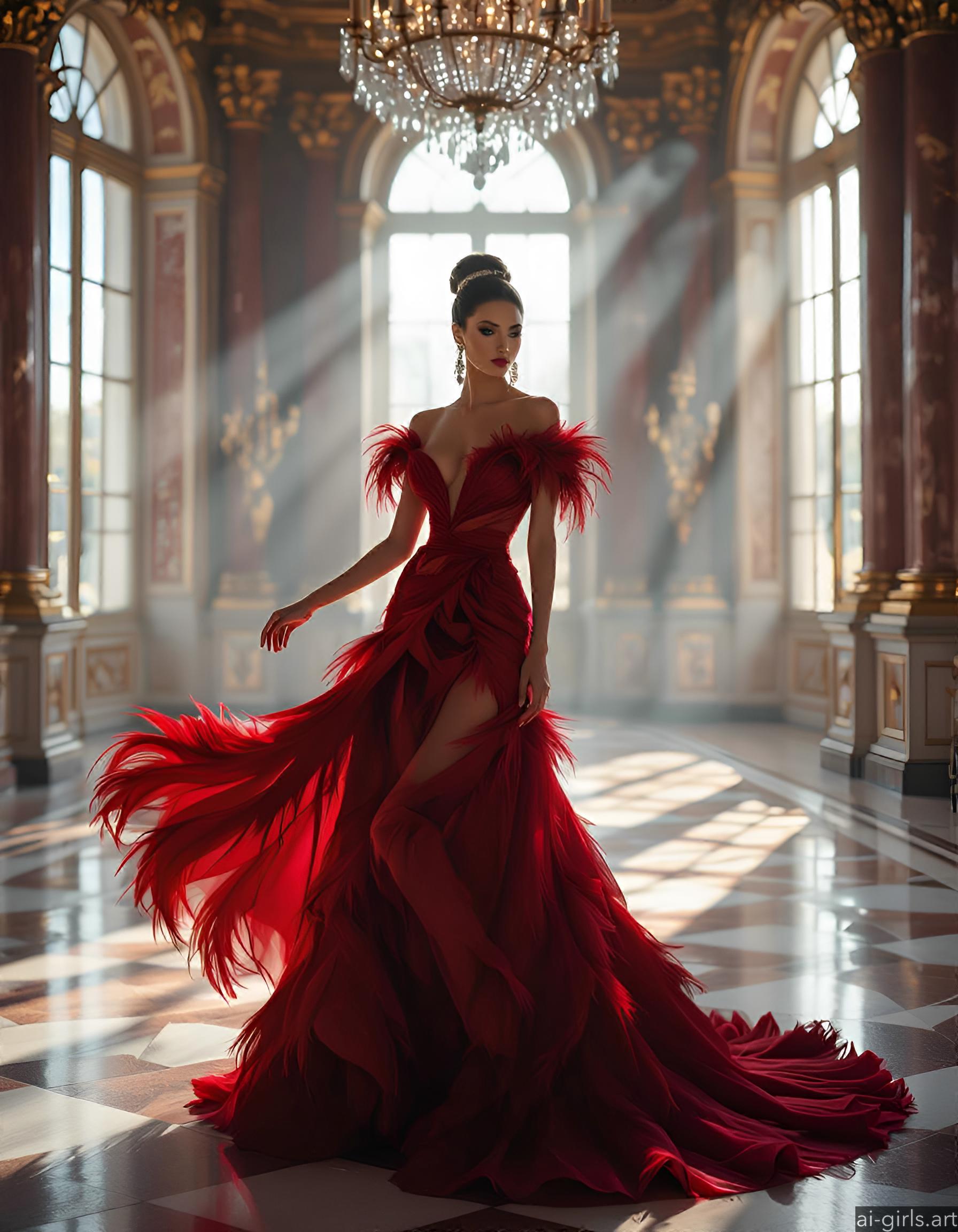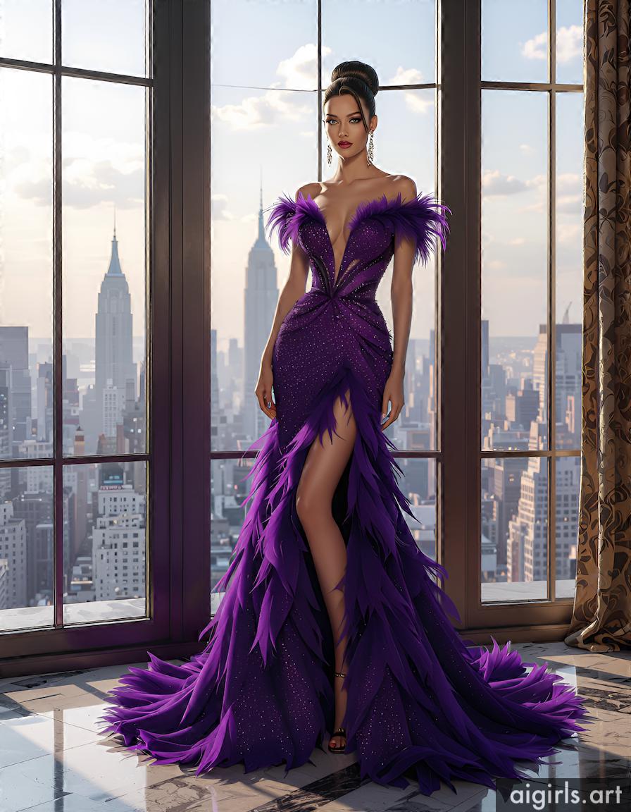 Beautiful AI girls in feather ballgown