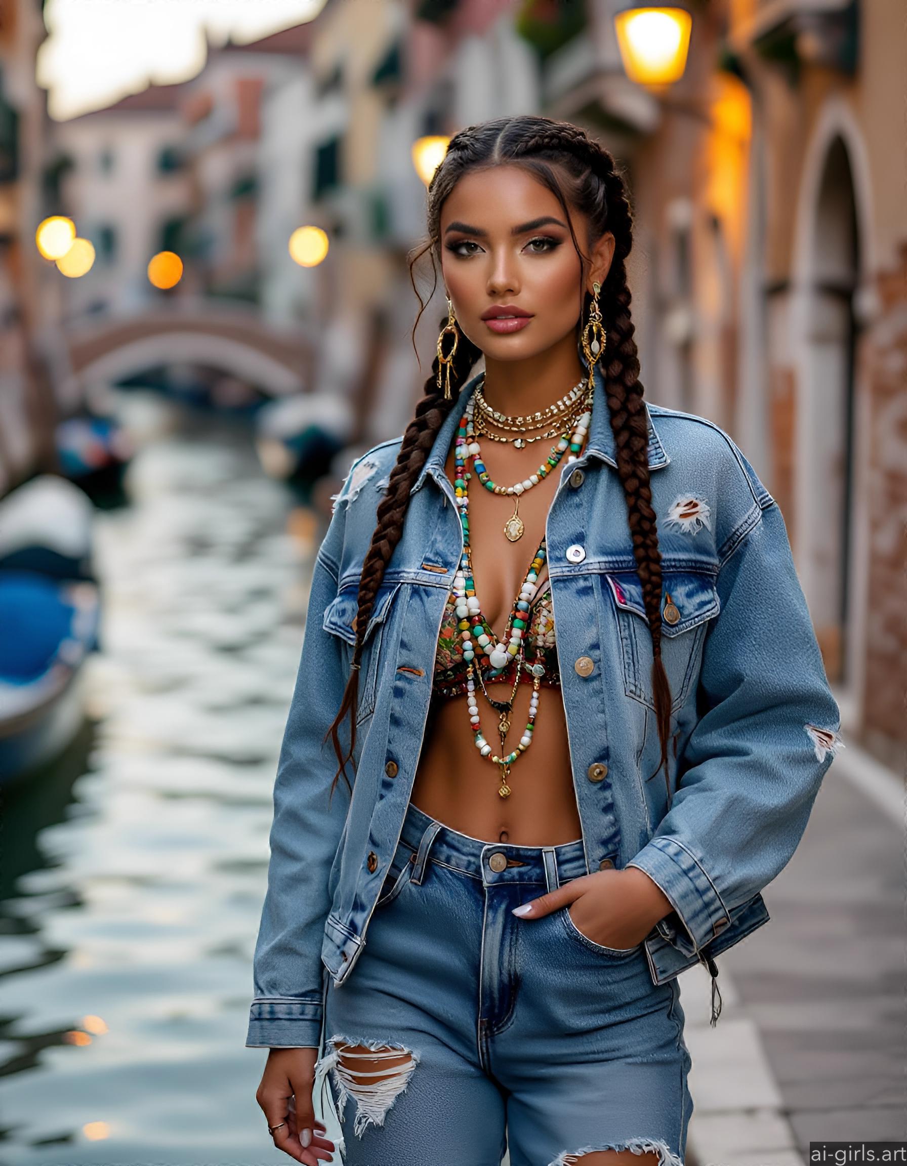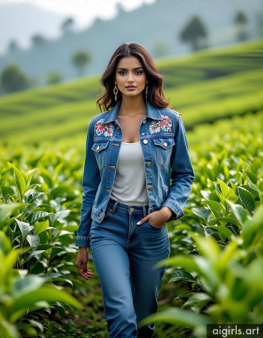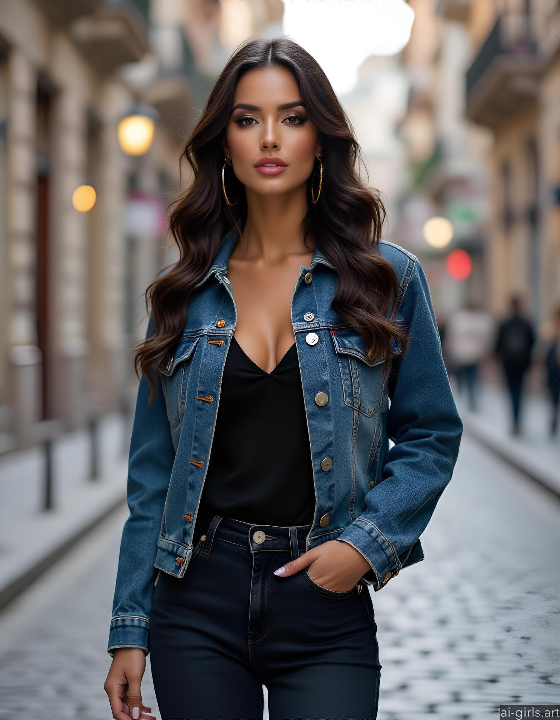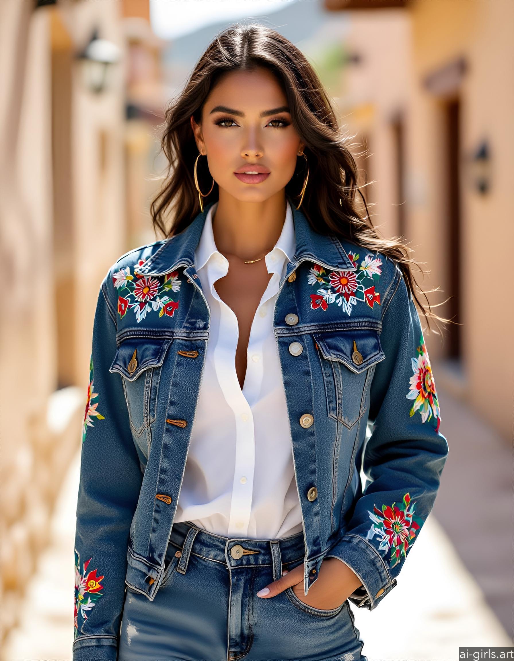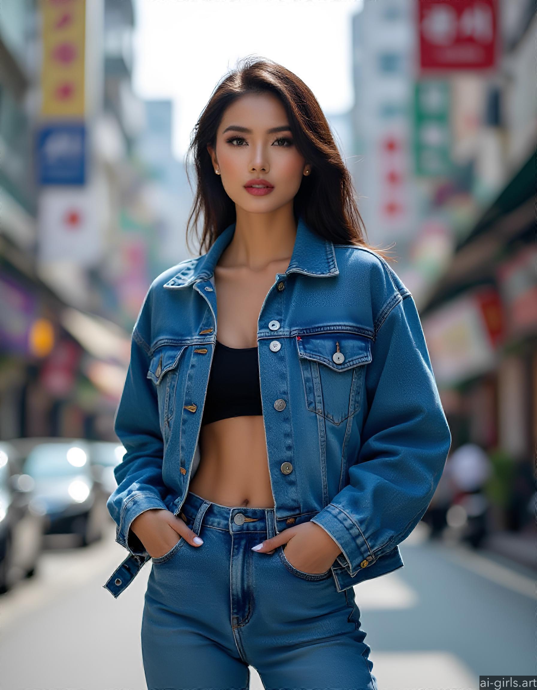Beautiful AI girls wearing a denim jacket and jeans