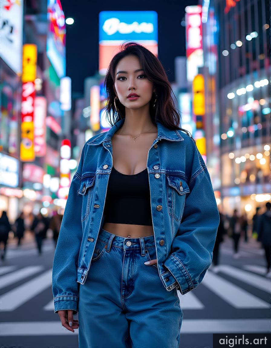 AI girls in denim jacket and jeans