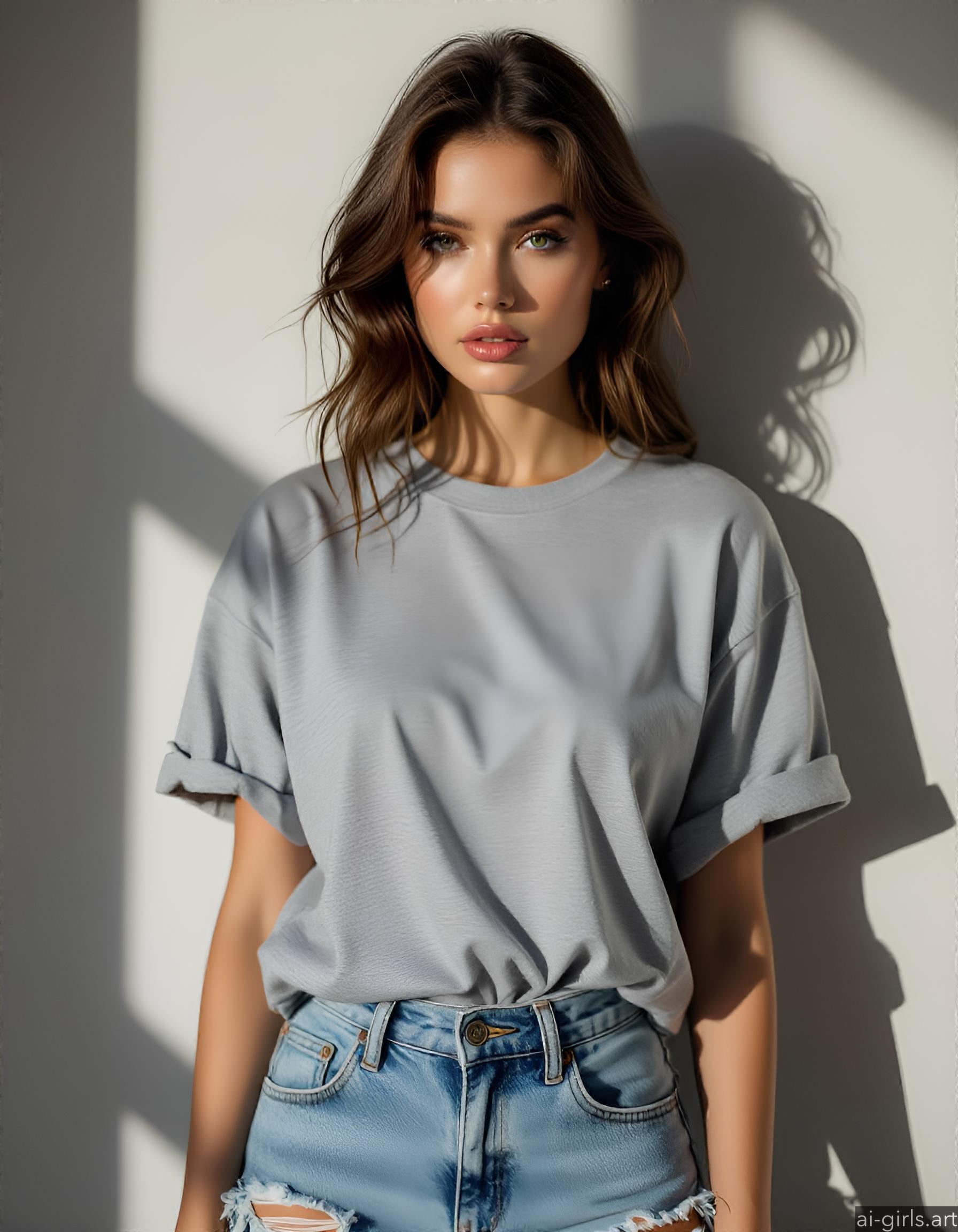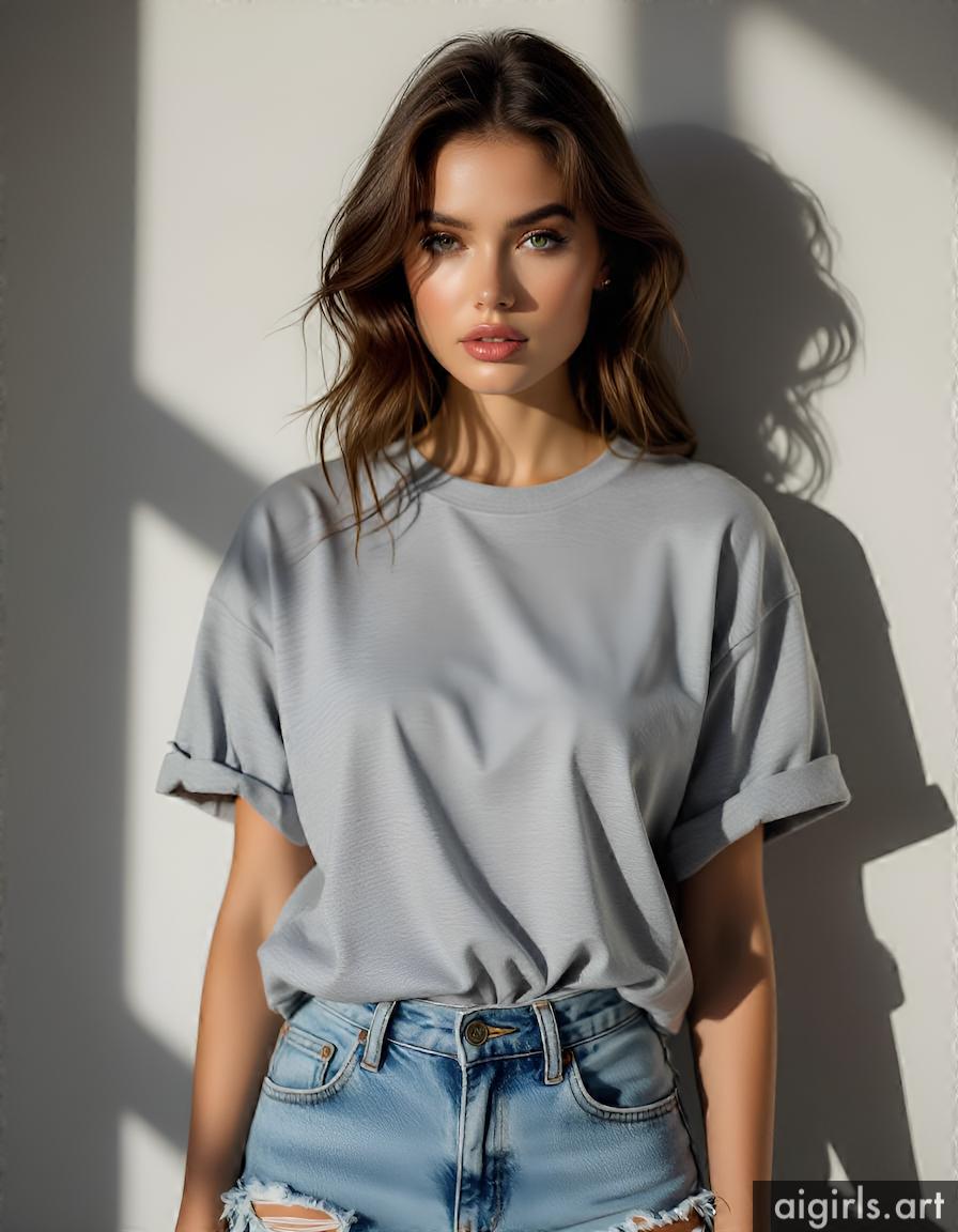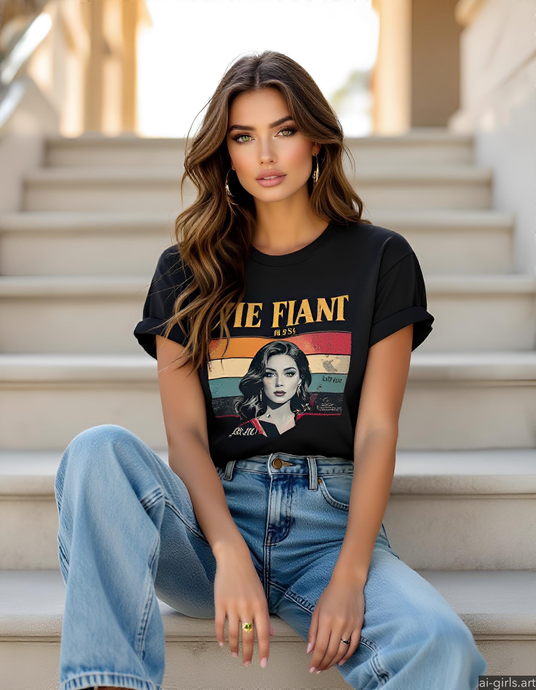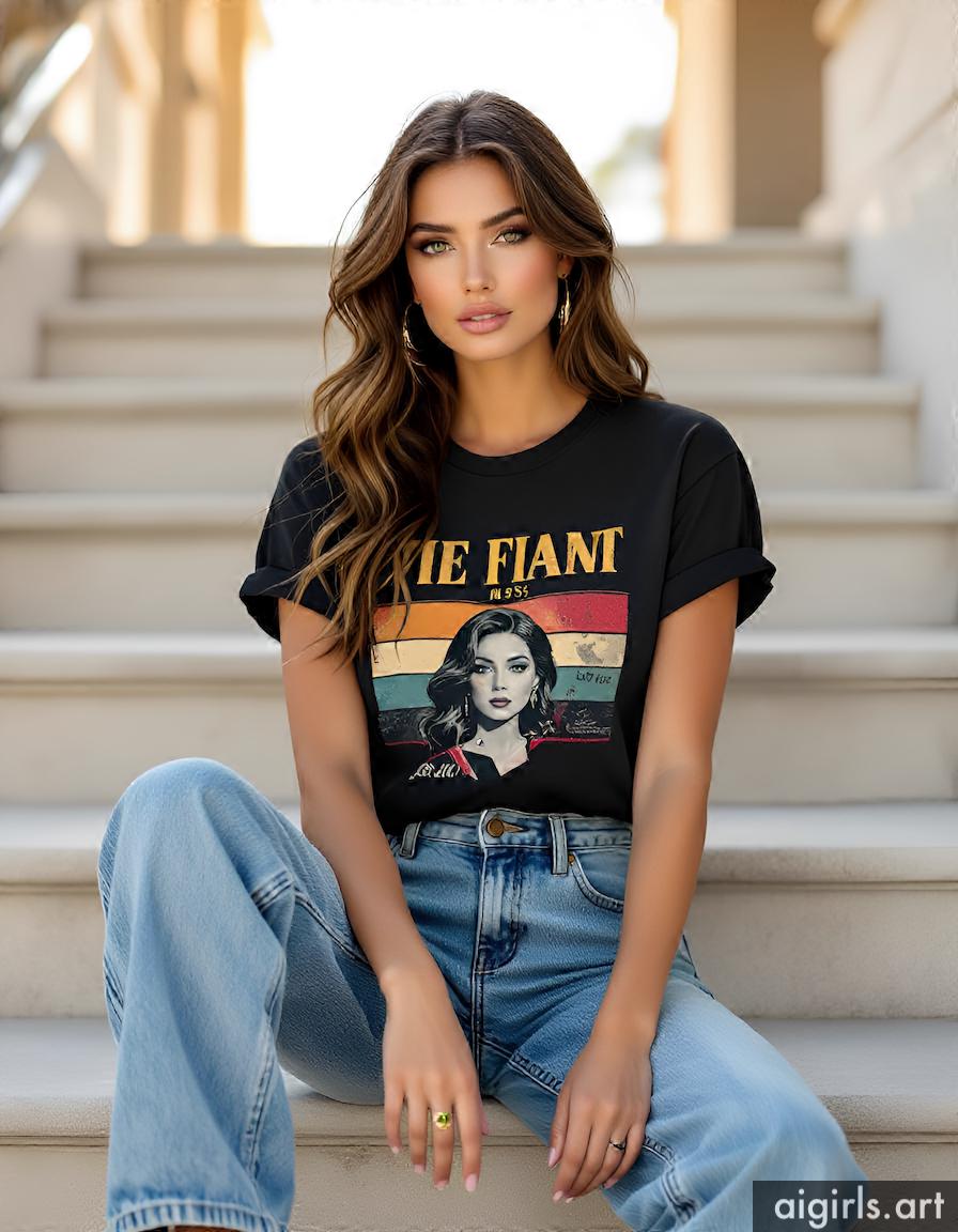 Beautiful AI girls wearing a t-shirt and jeans