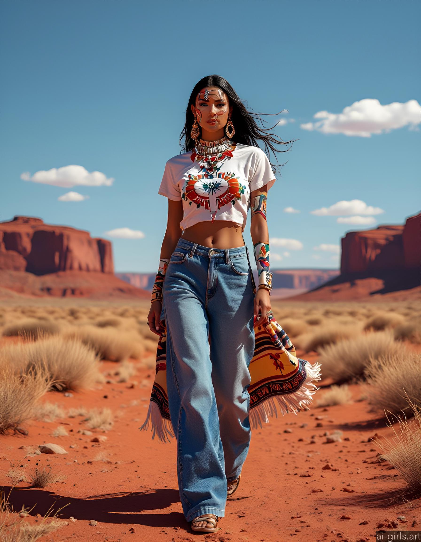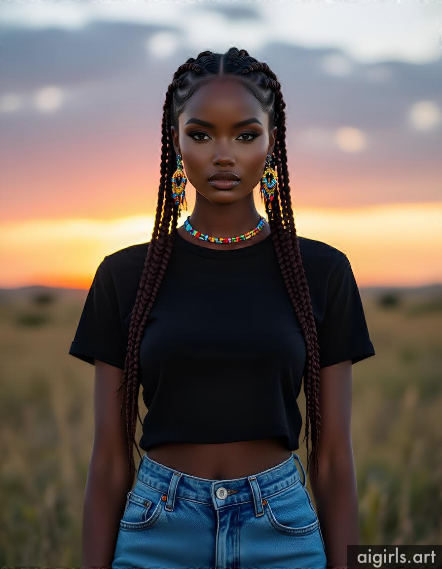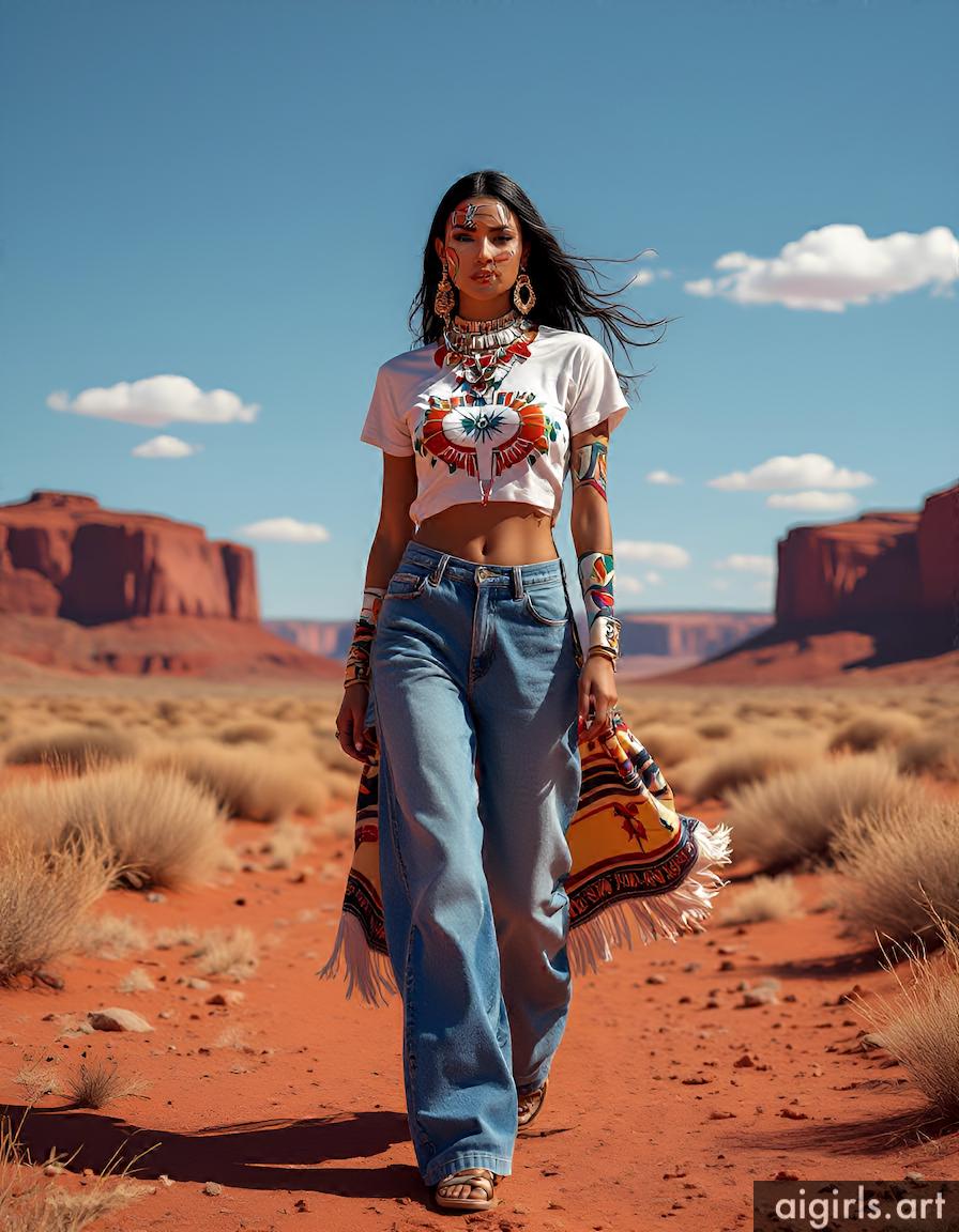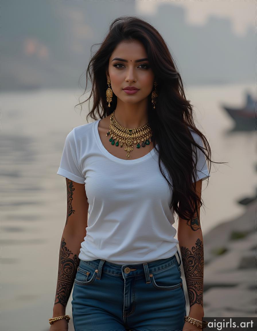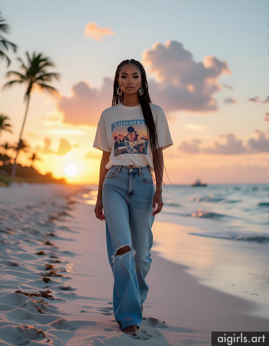 Beautiful AI girls wearing a t-shirt and jeans