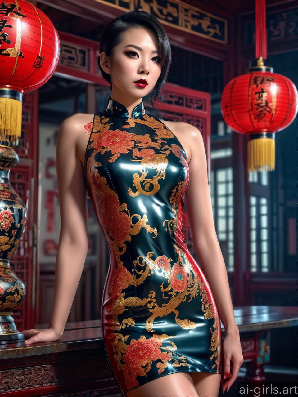 AI girls in latex cheongsam