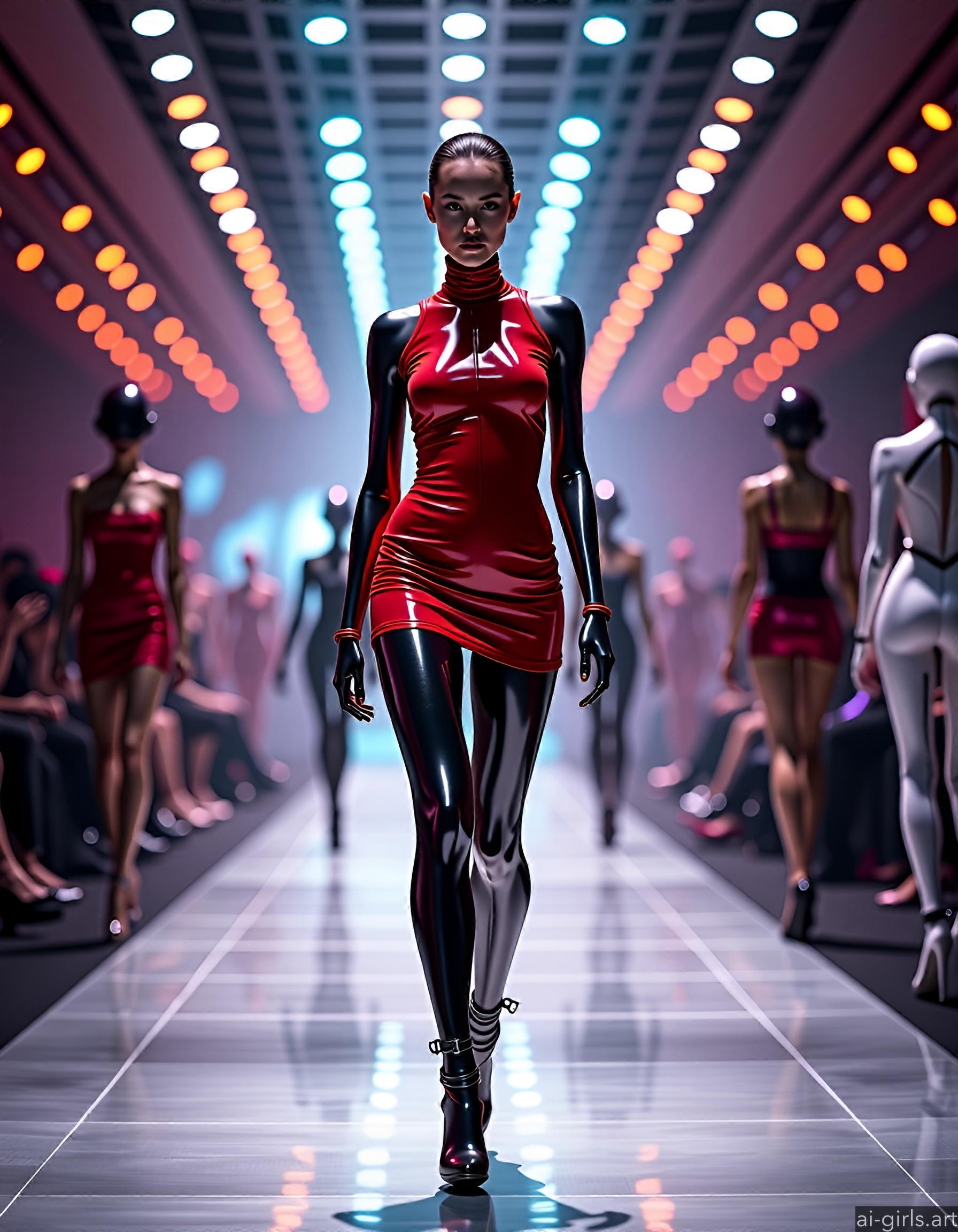 Beautiful AI girls in red latex mini dress