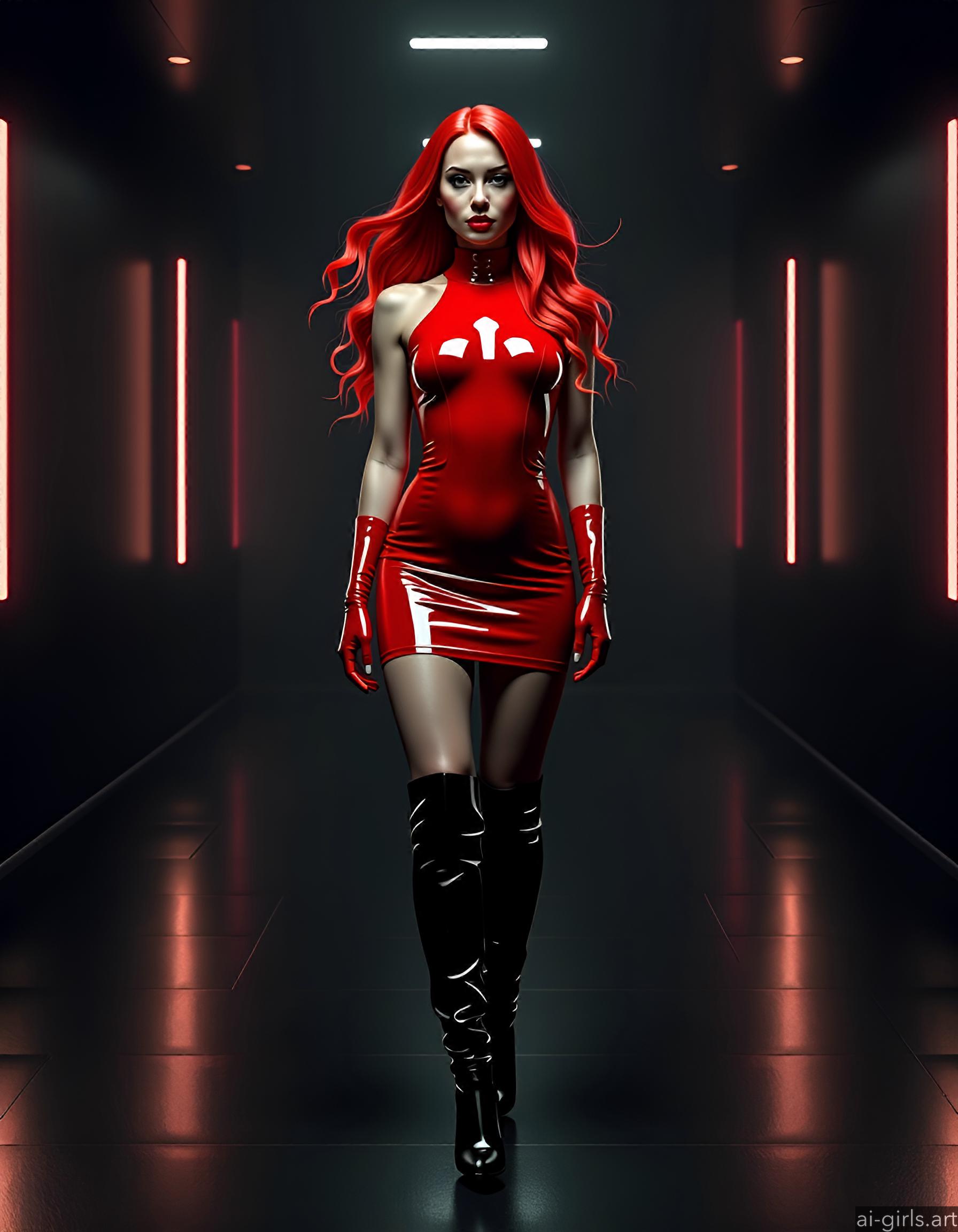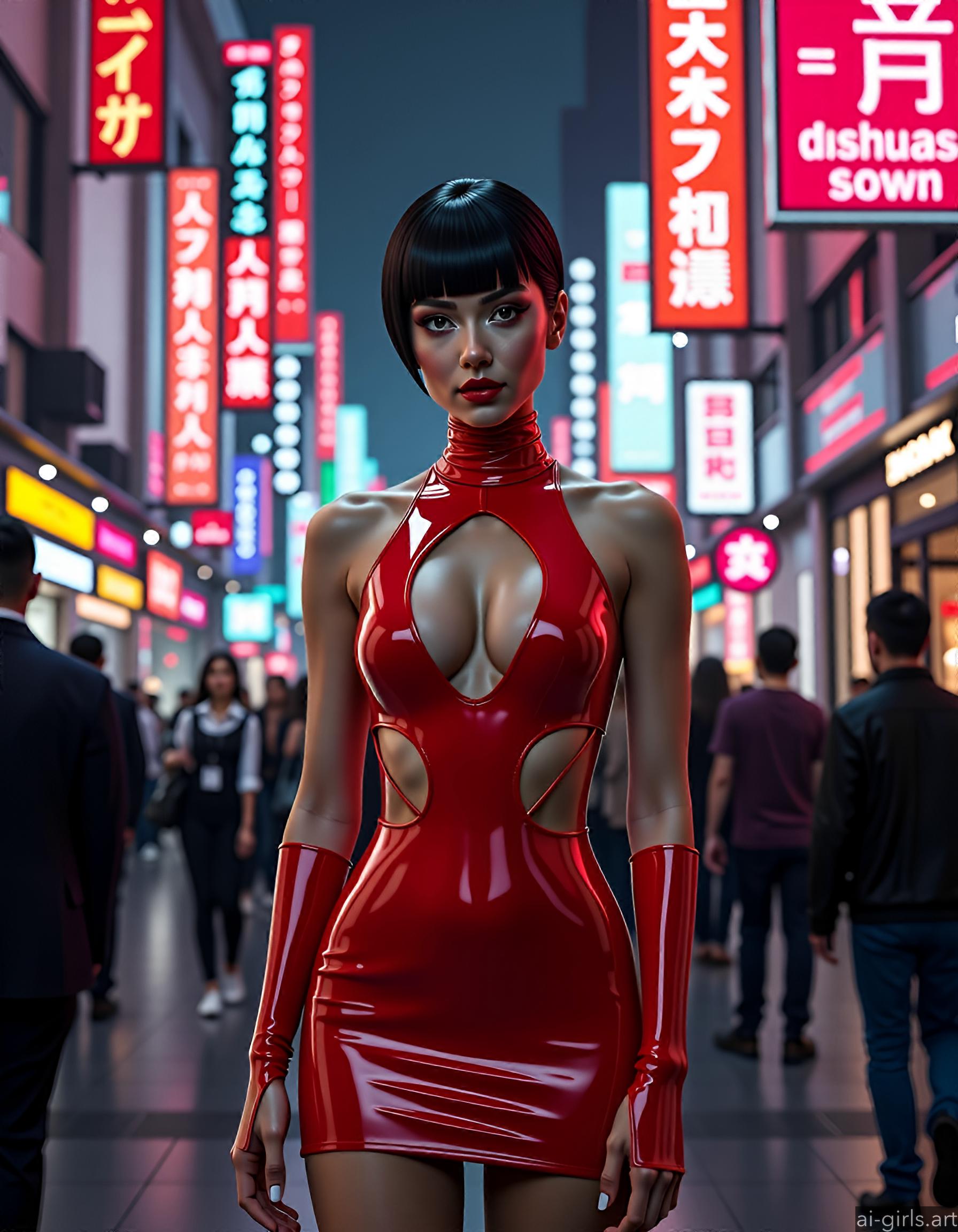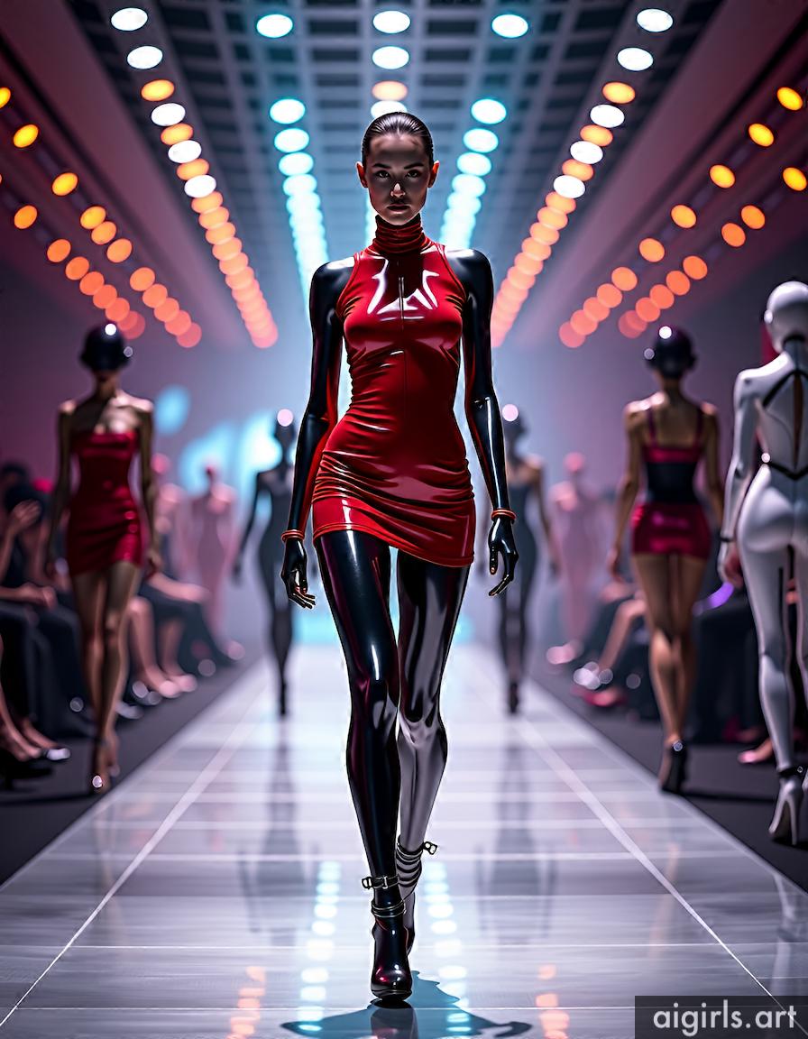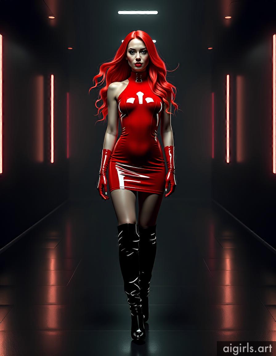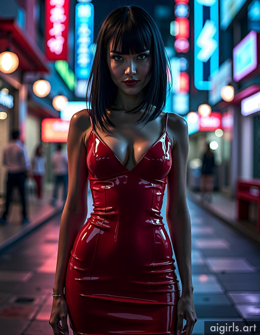 AI girls in red latex mini dress