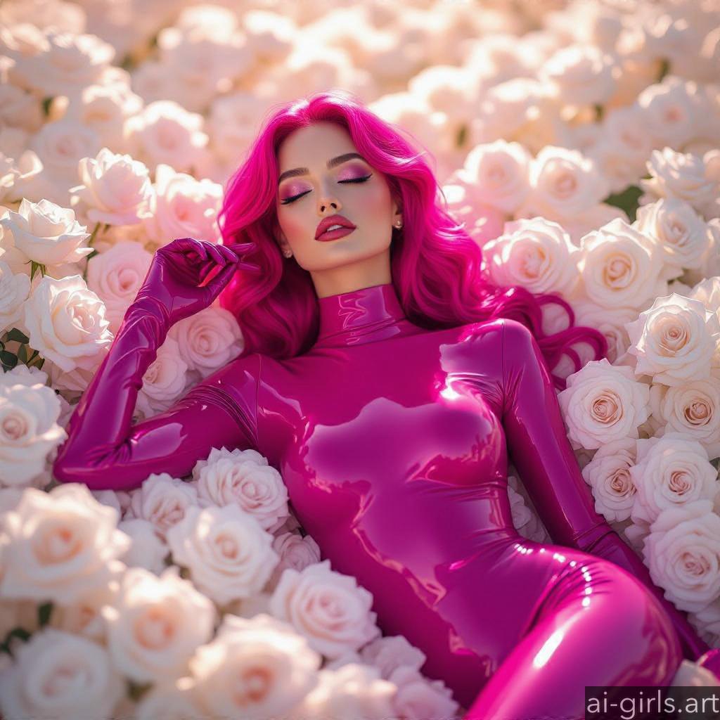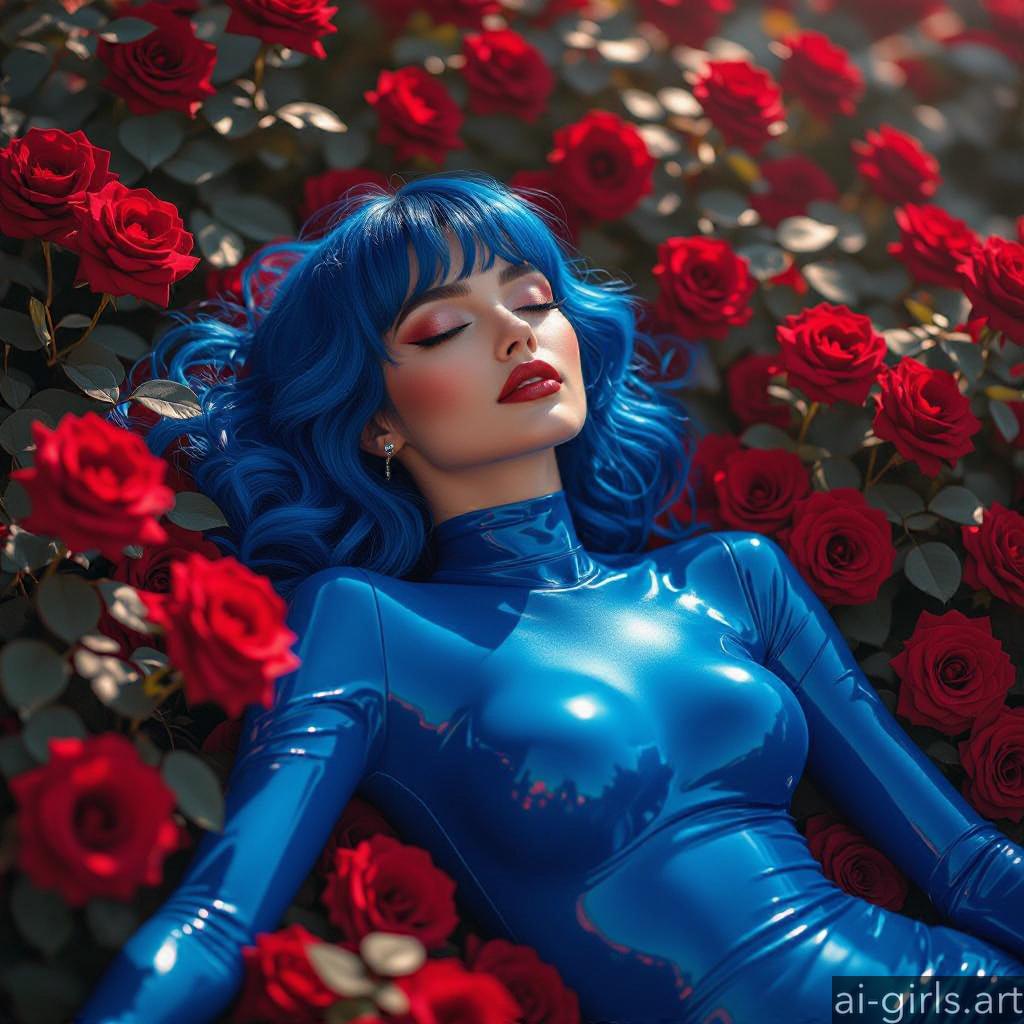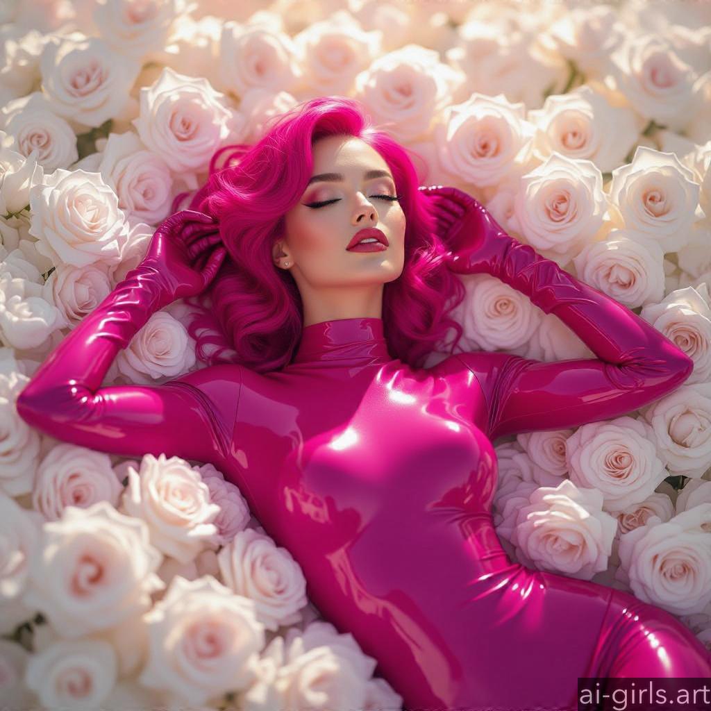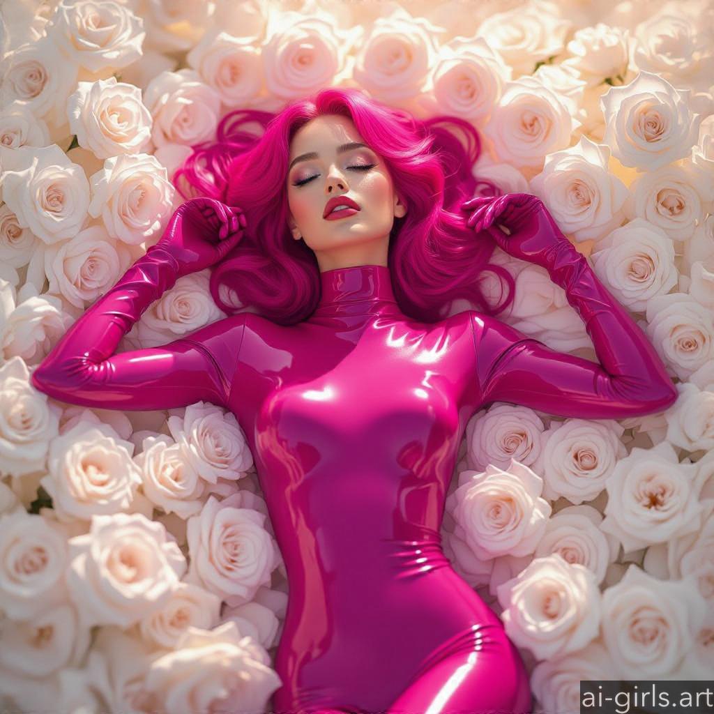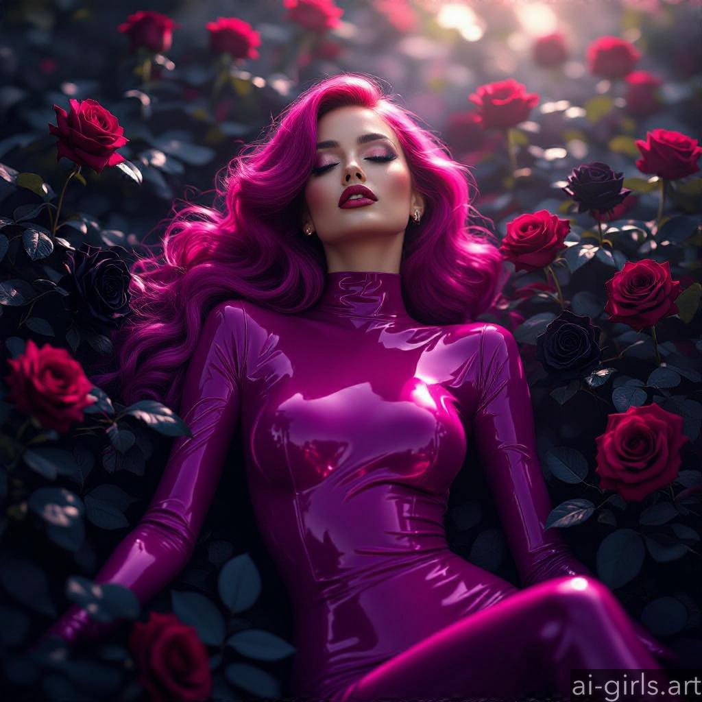 Beautiful AI girls in latex catsuit lying on roses