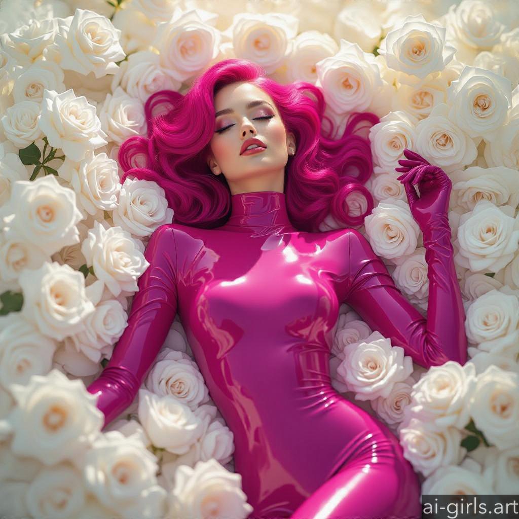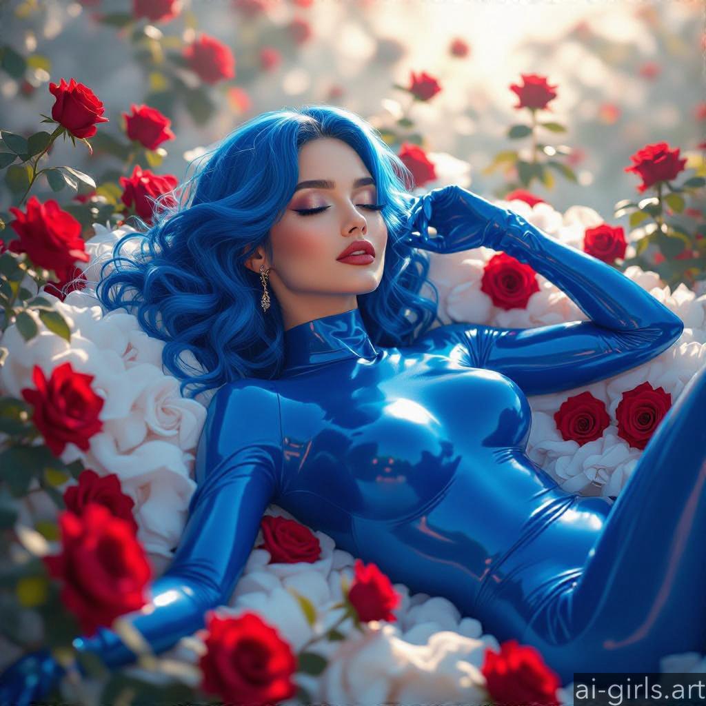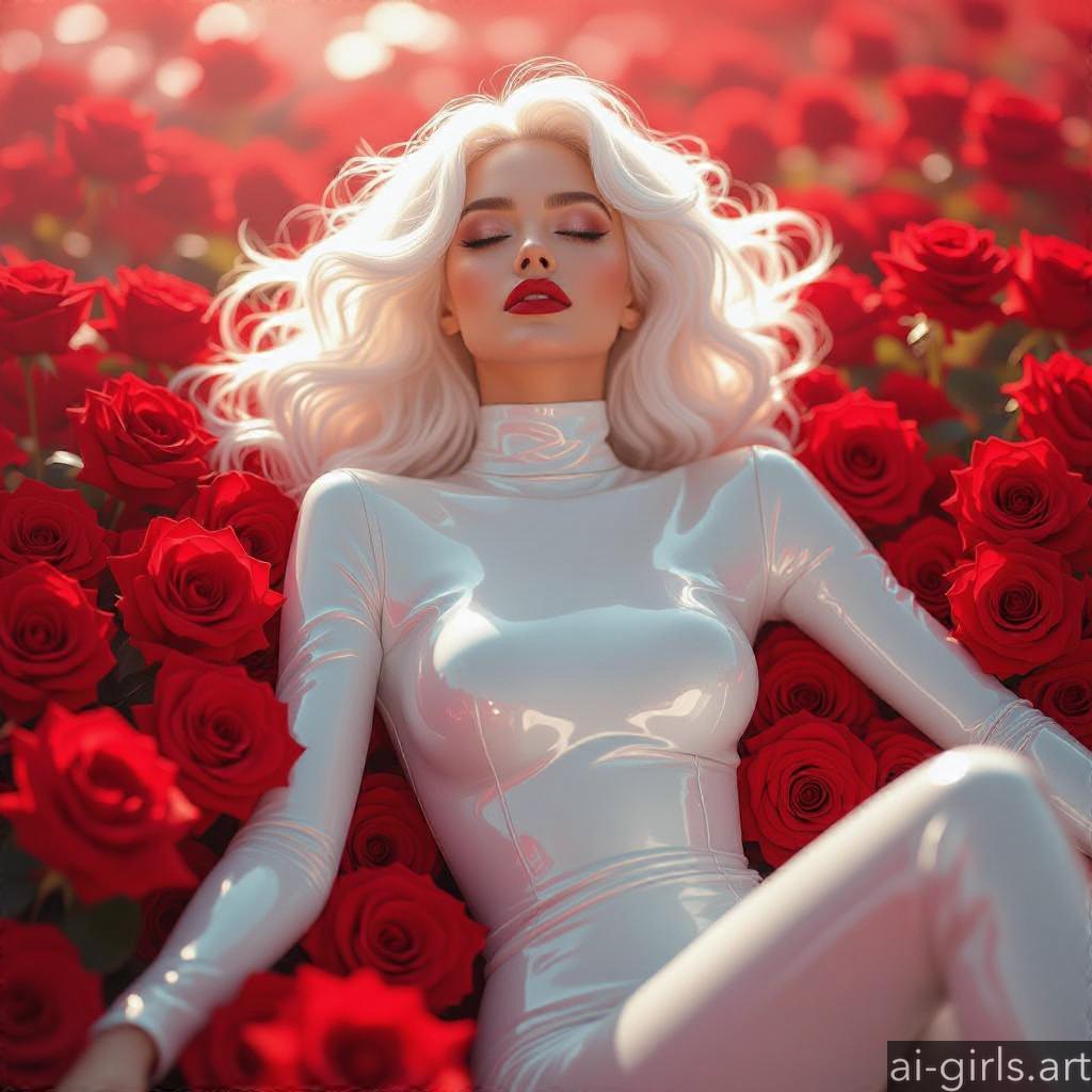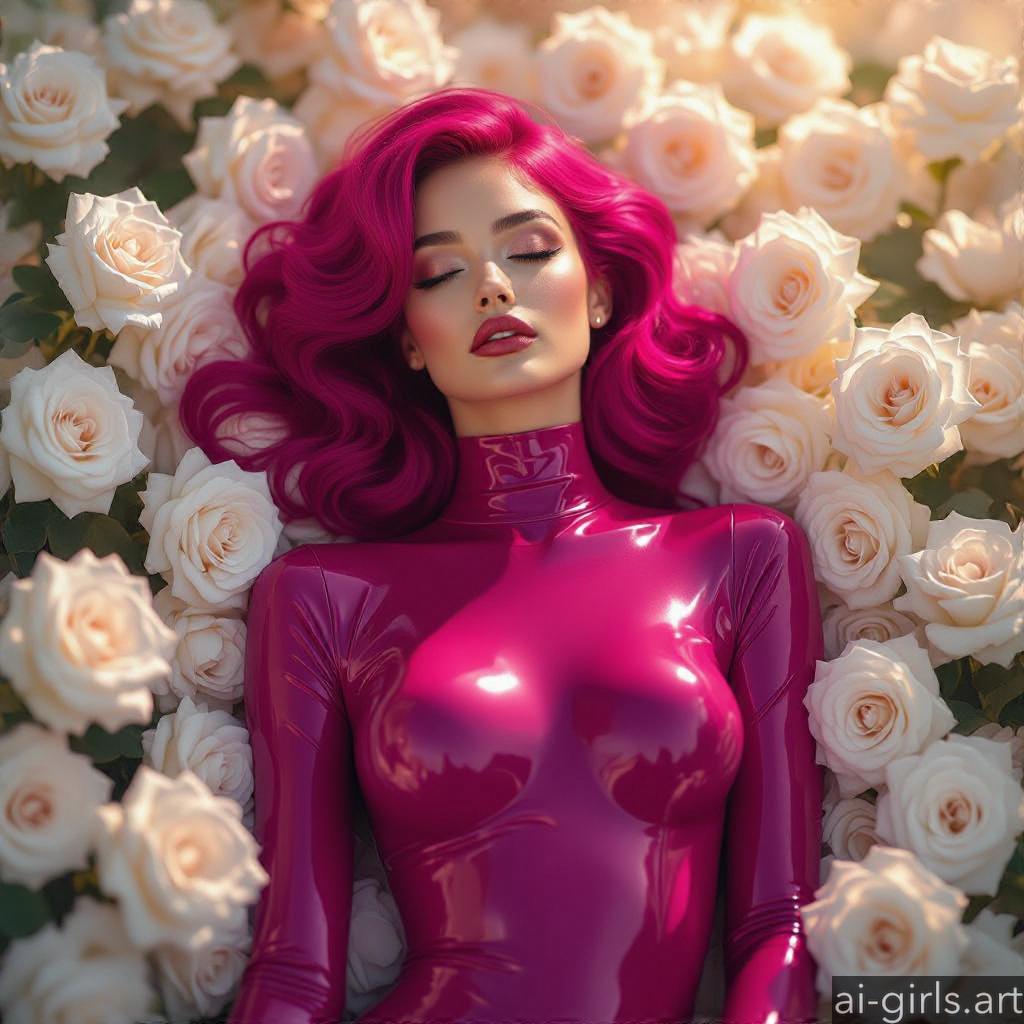 Beautiful AI girls in latex catsuit lying on roses
