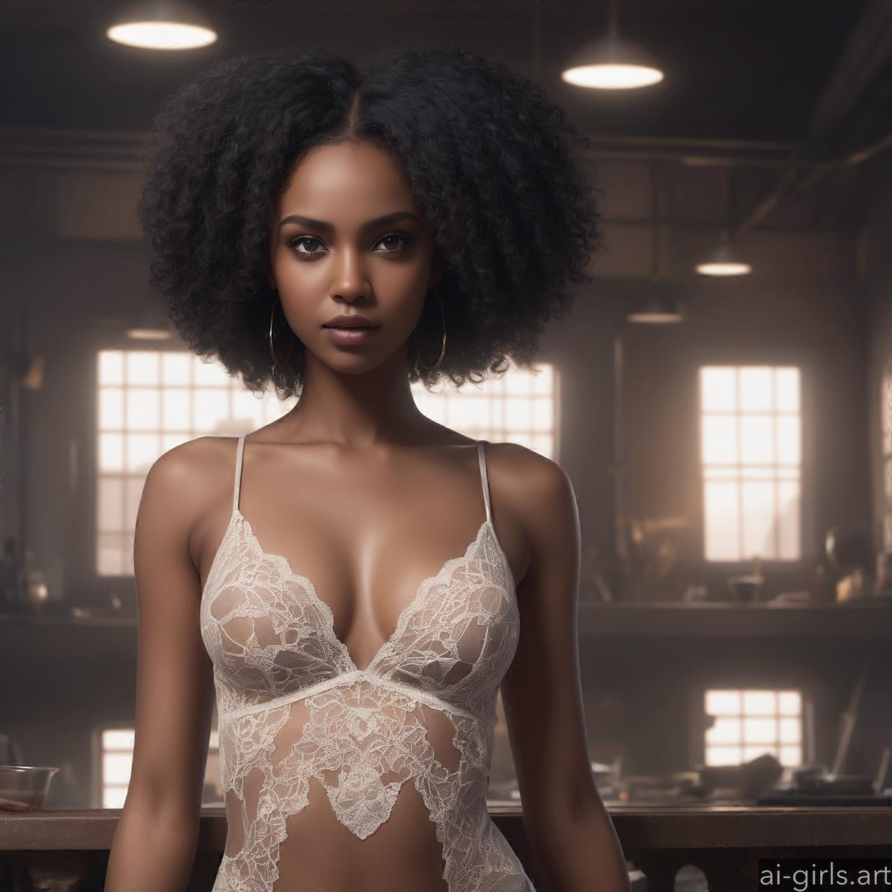 Black girl in sheer lace babydoll