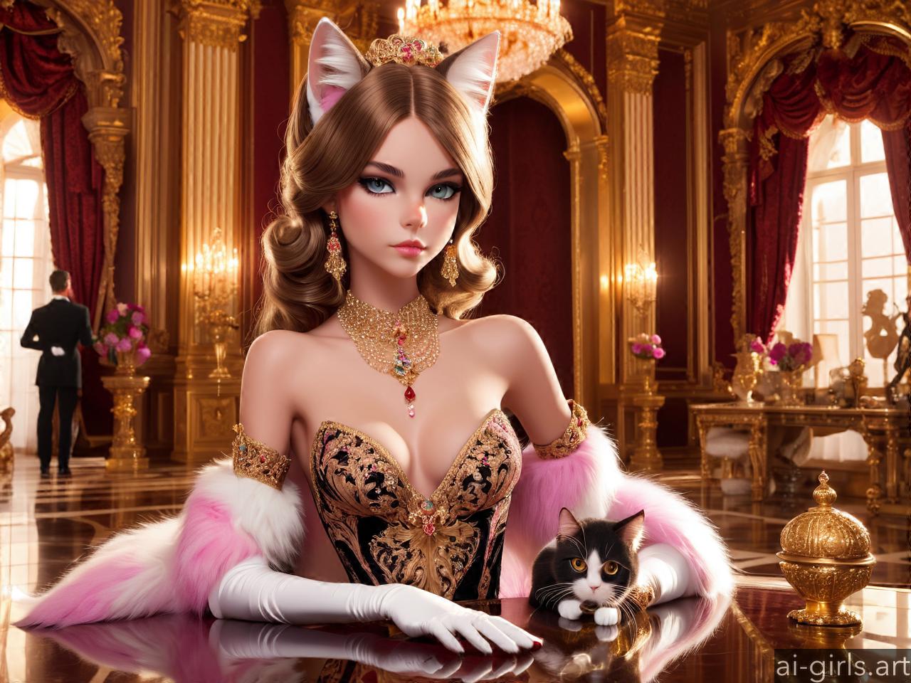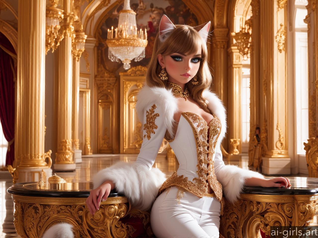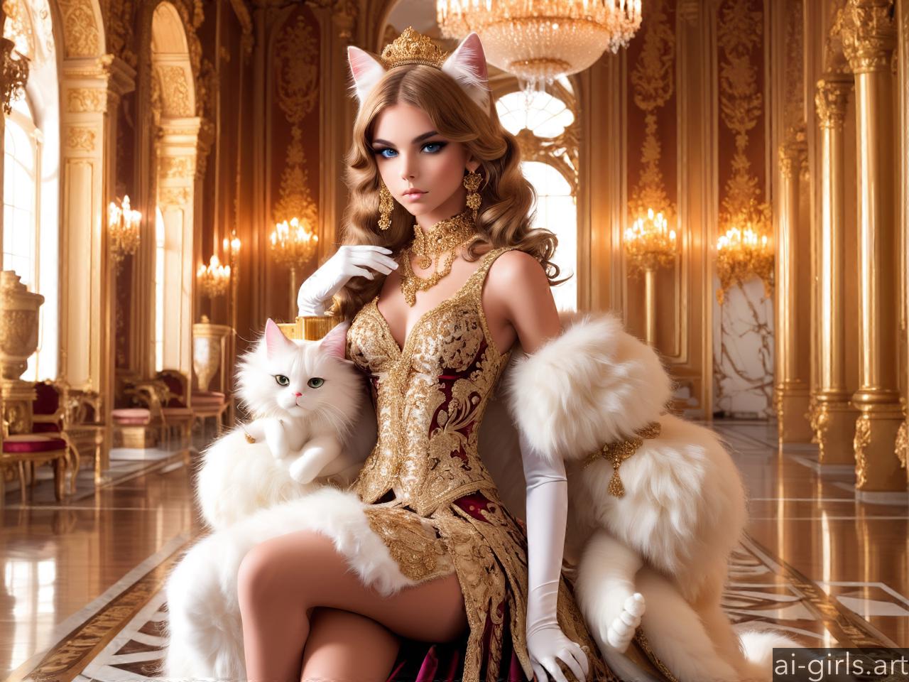 Luxurious cat girl in a palace room