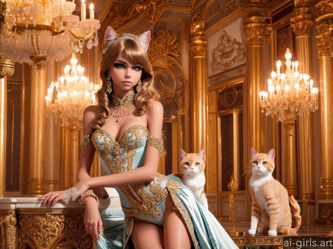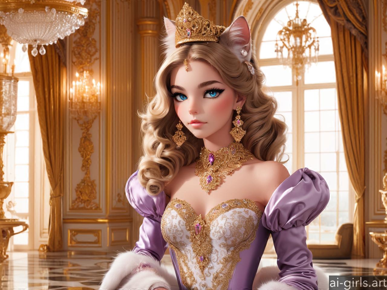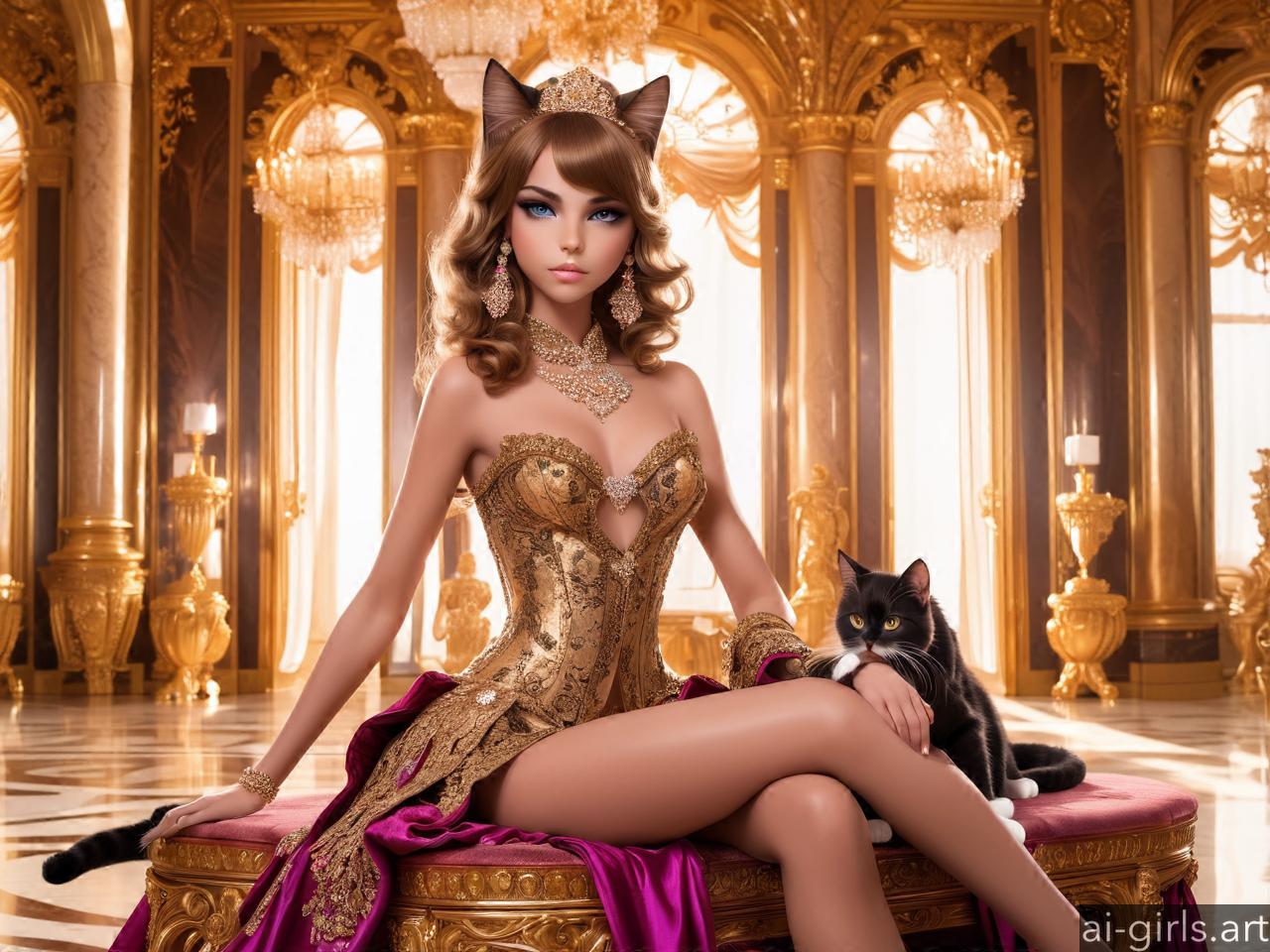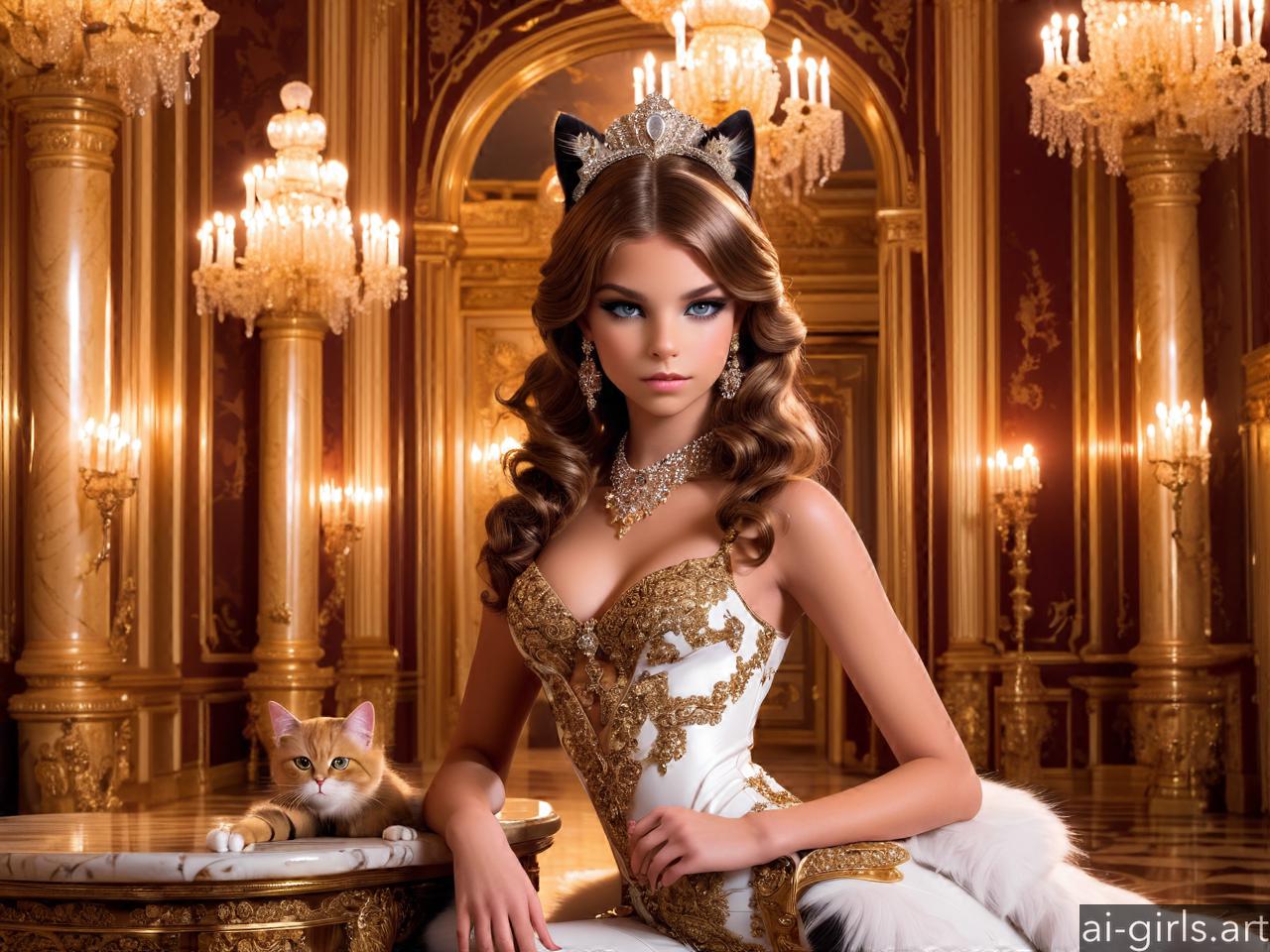 Luxurious cat girl in a palace room