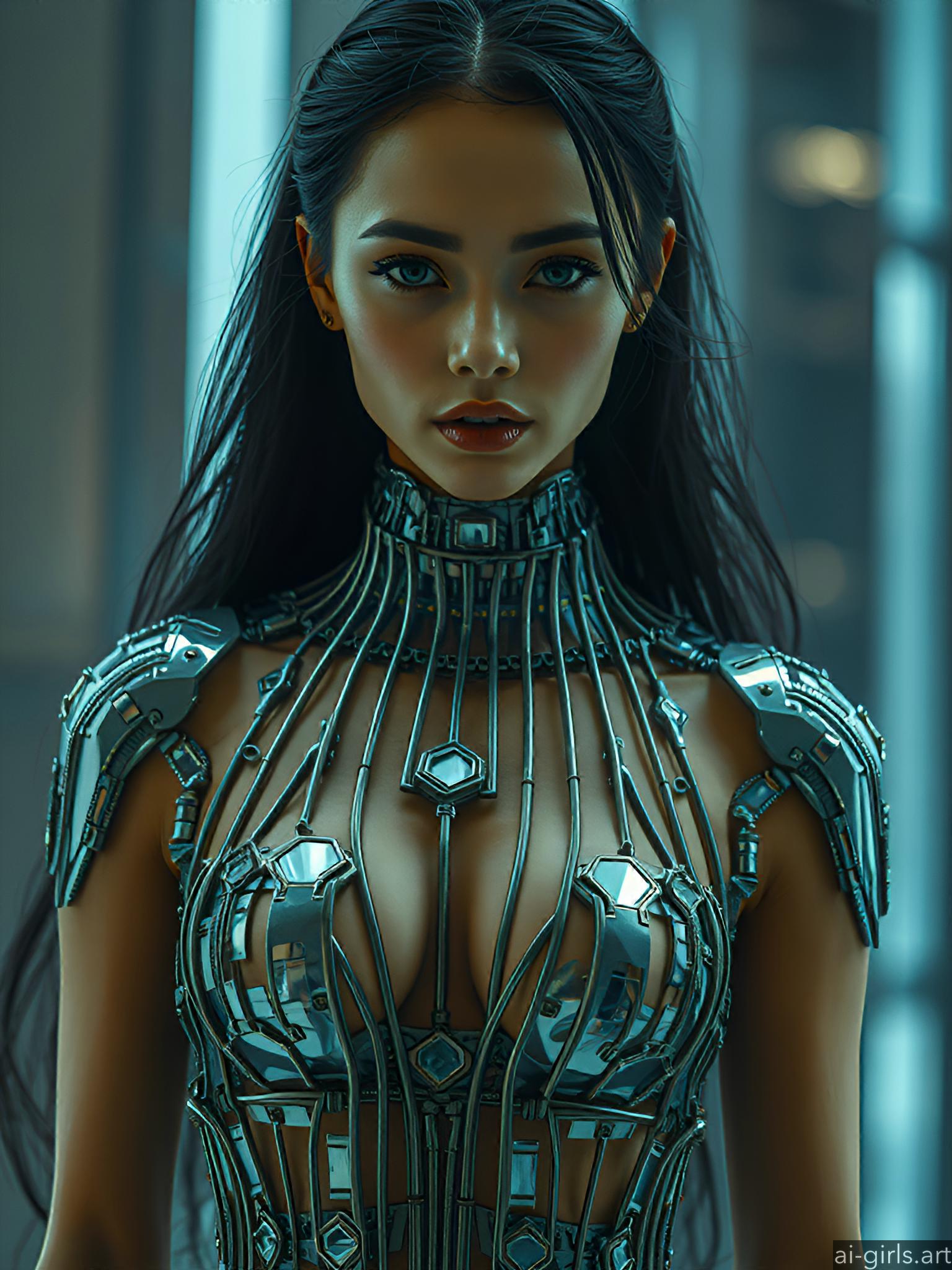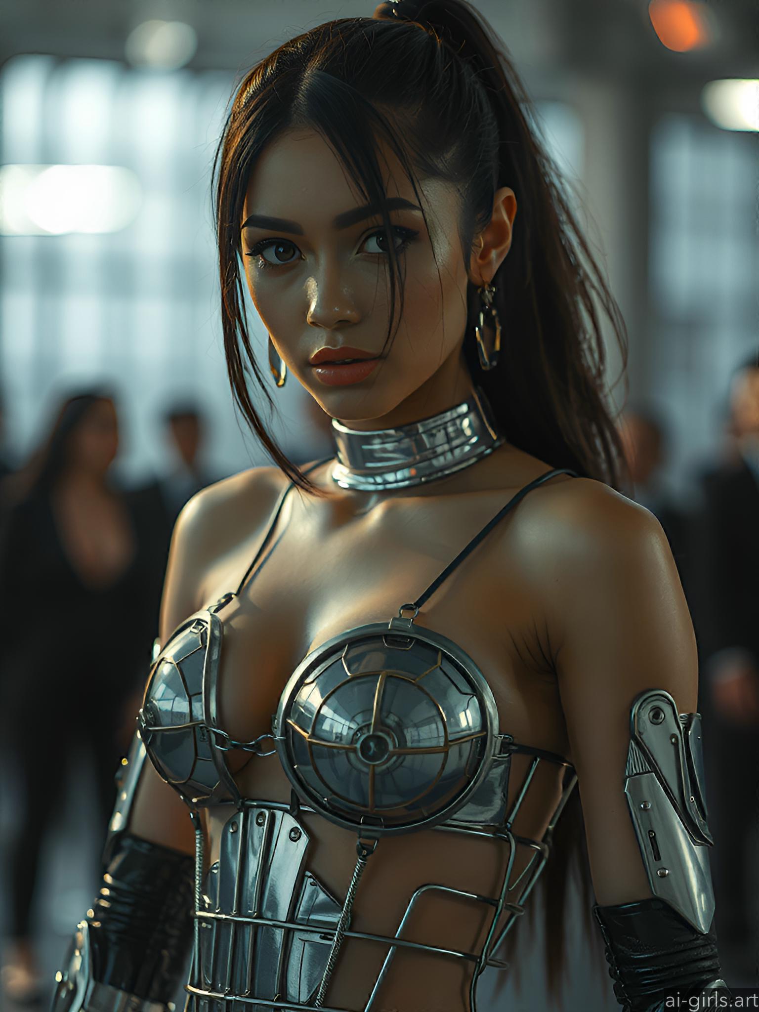 Woman in chain dress