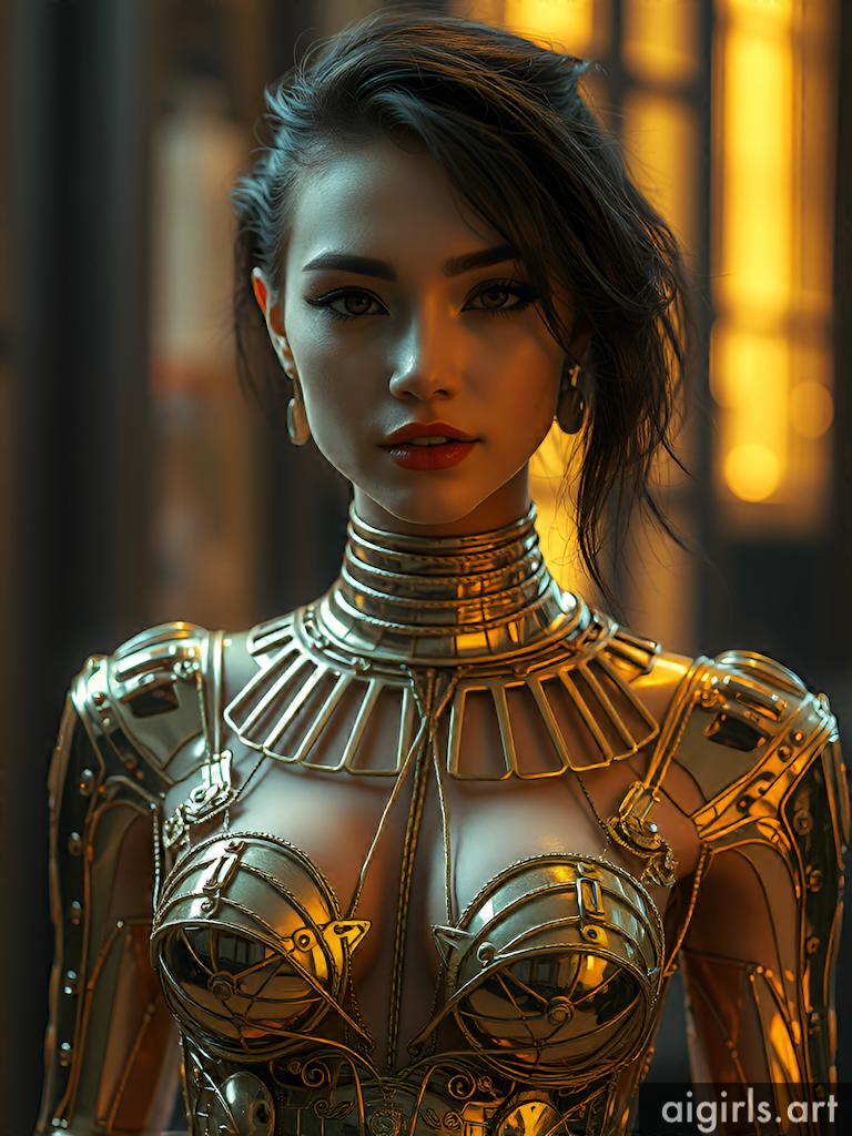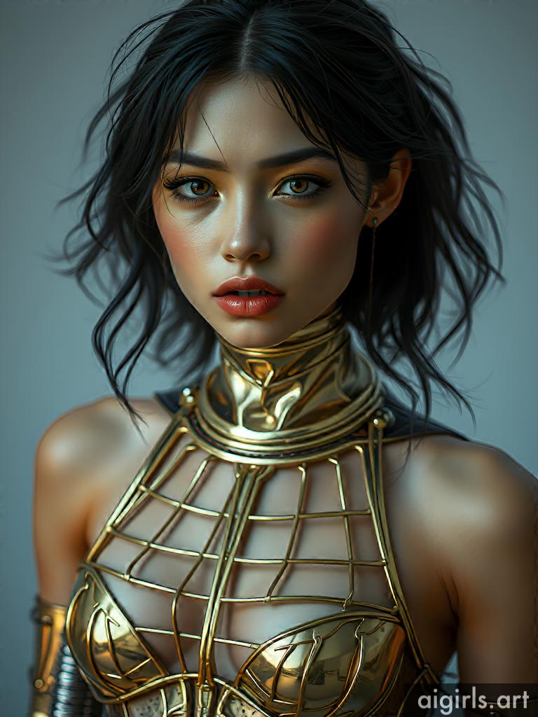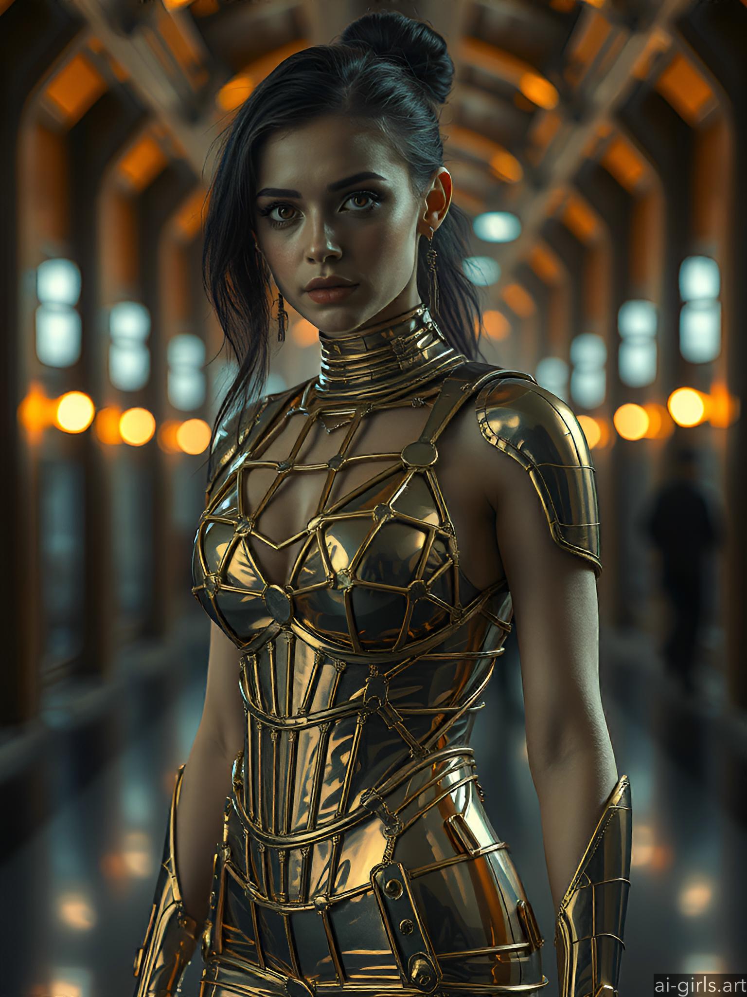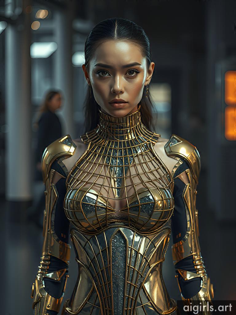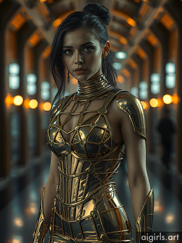 Woman in metallic dress