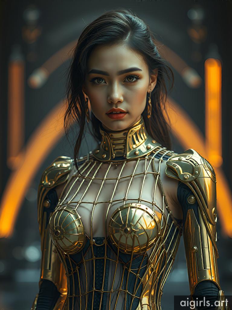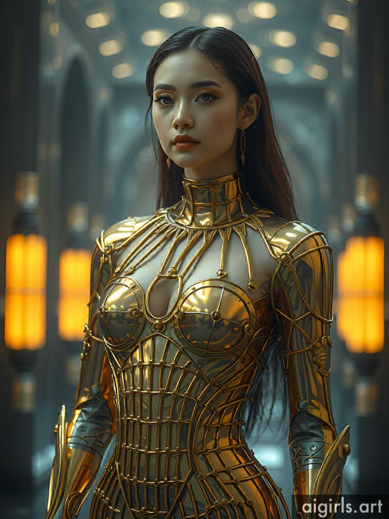 Woman in metallic scale dress