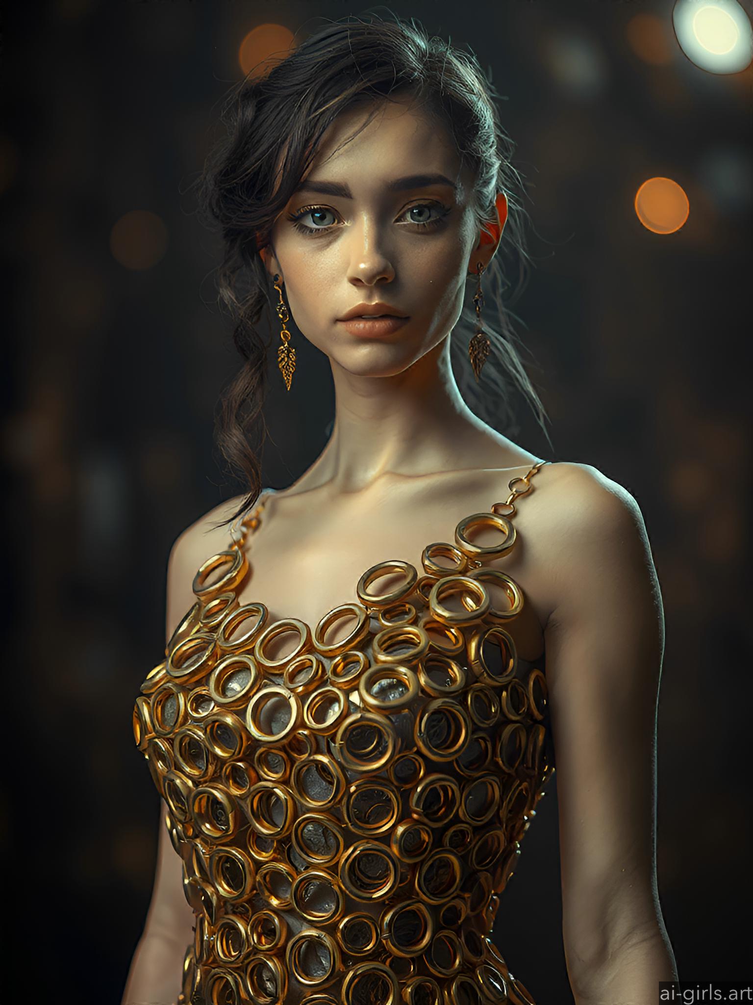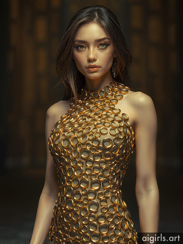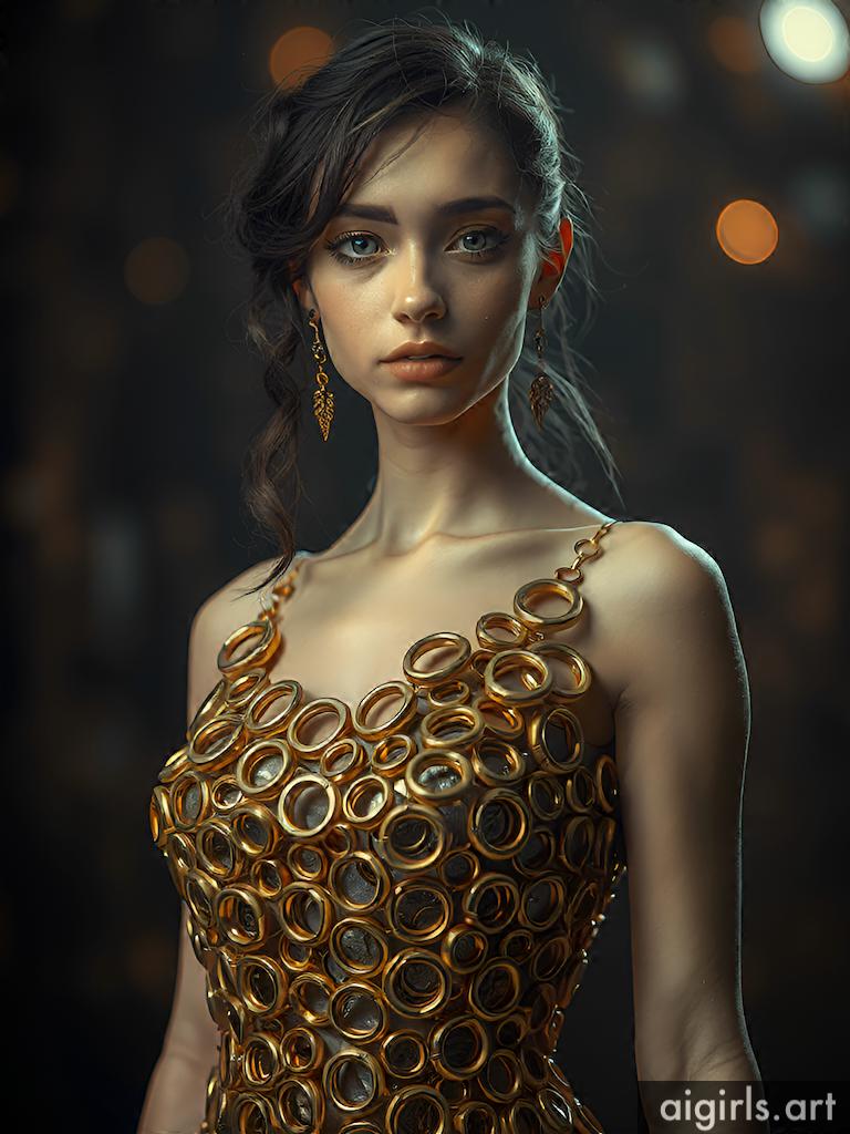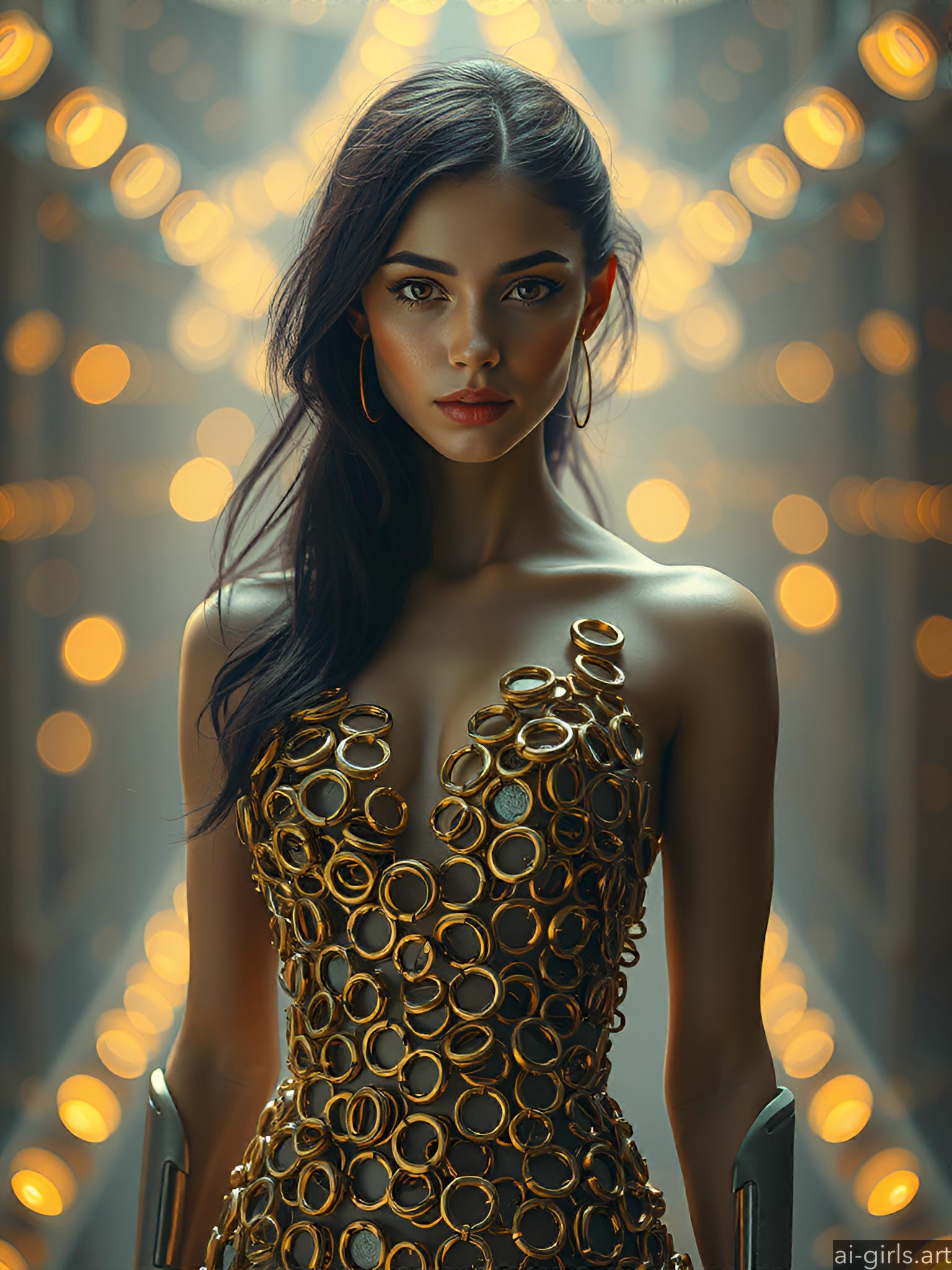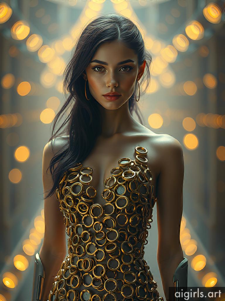 Woman in metallic ring dress