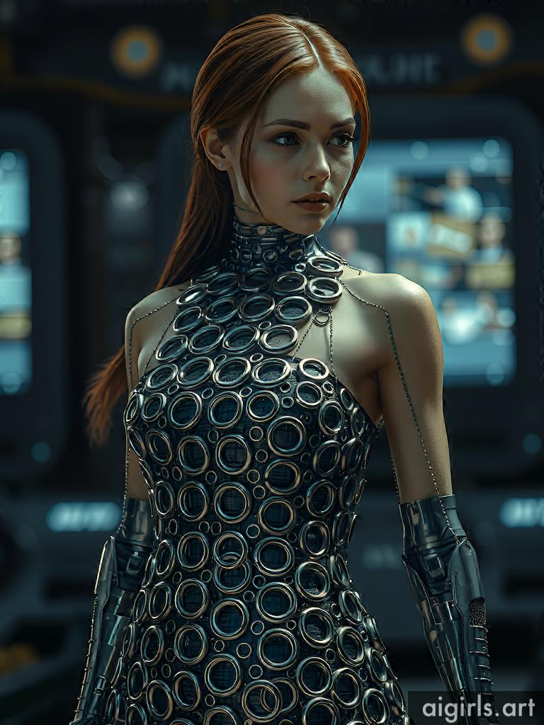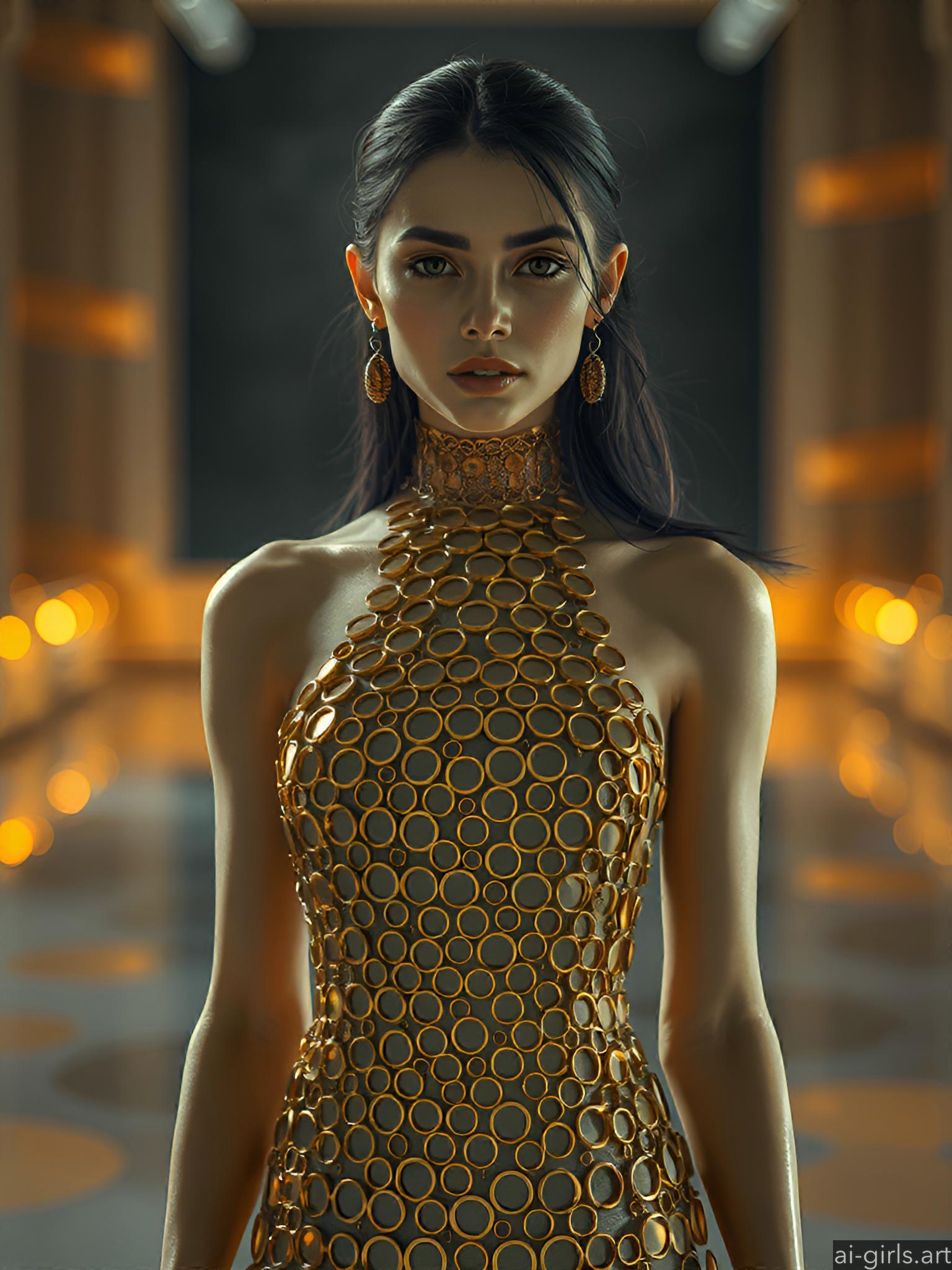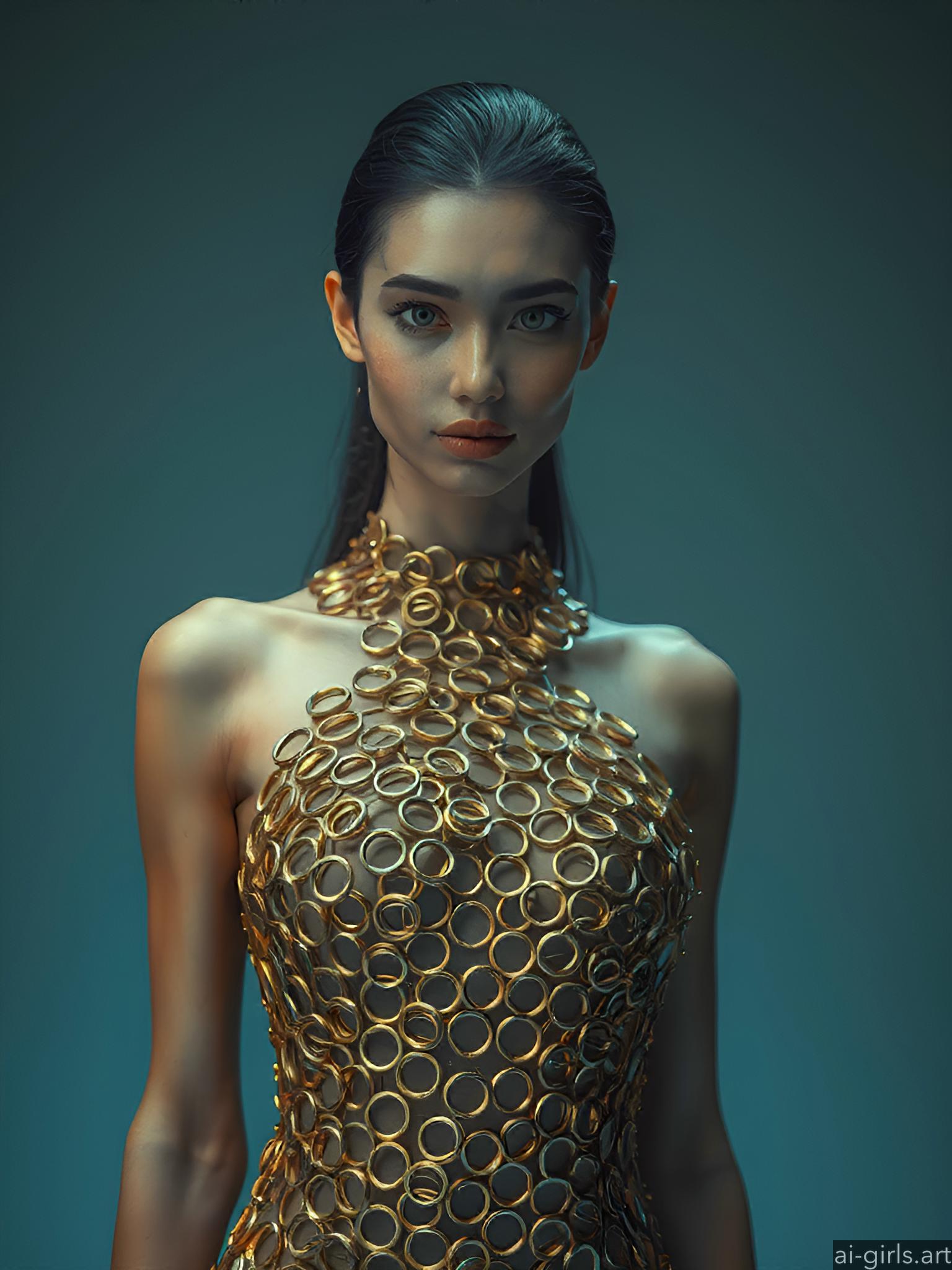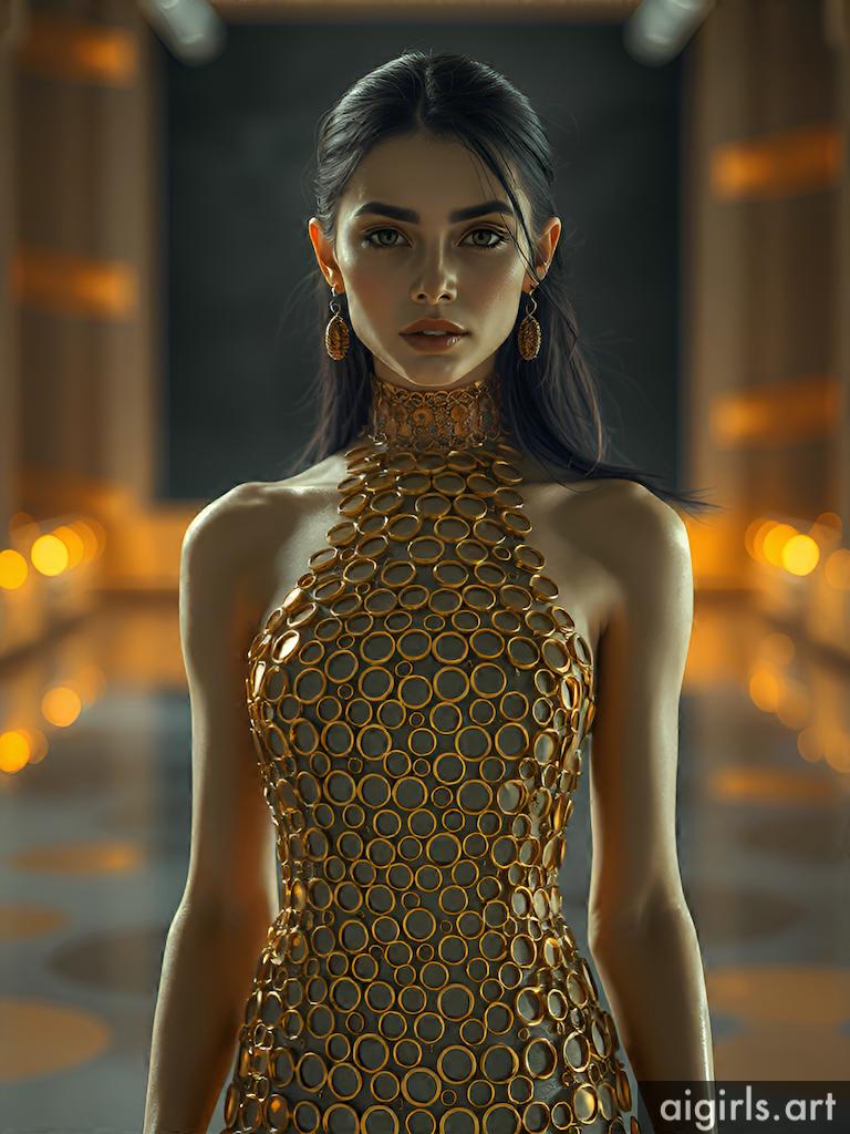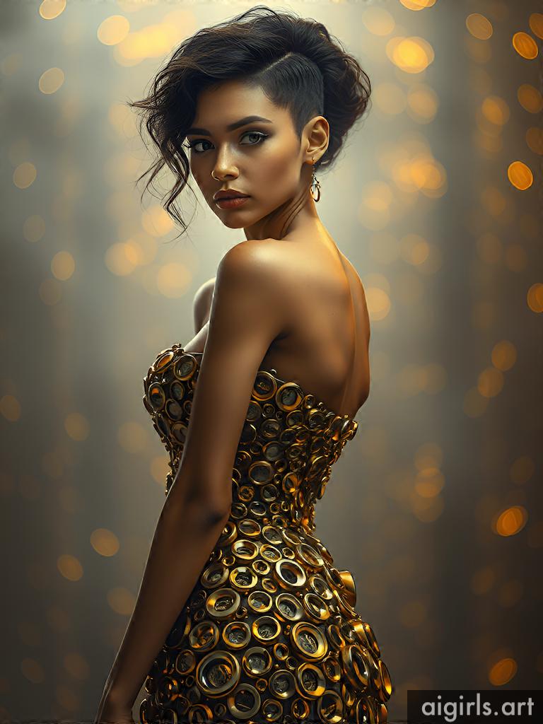 Woman in metallic ring dress