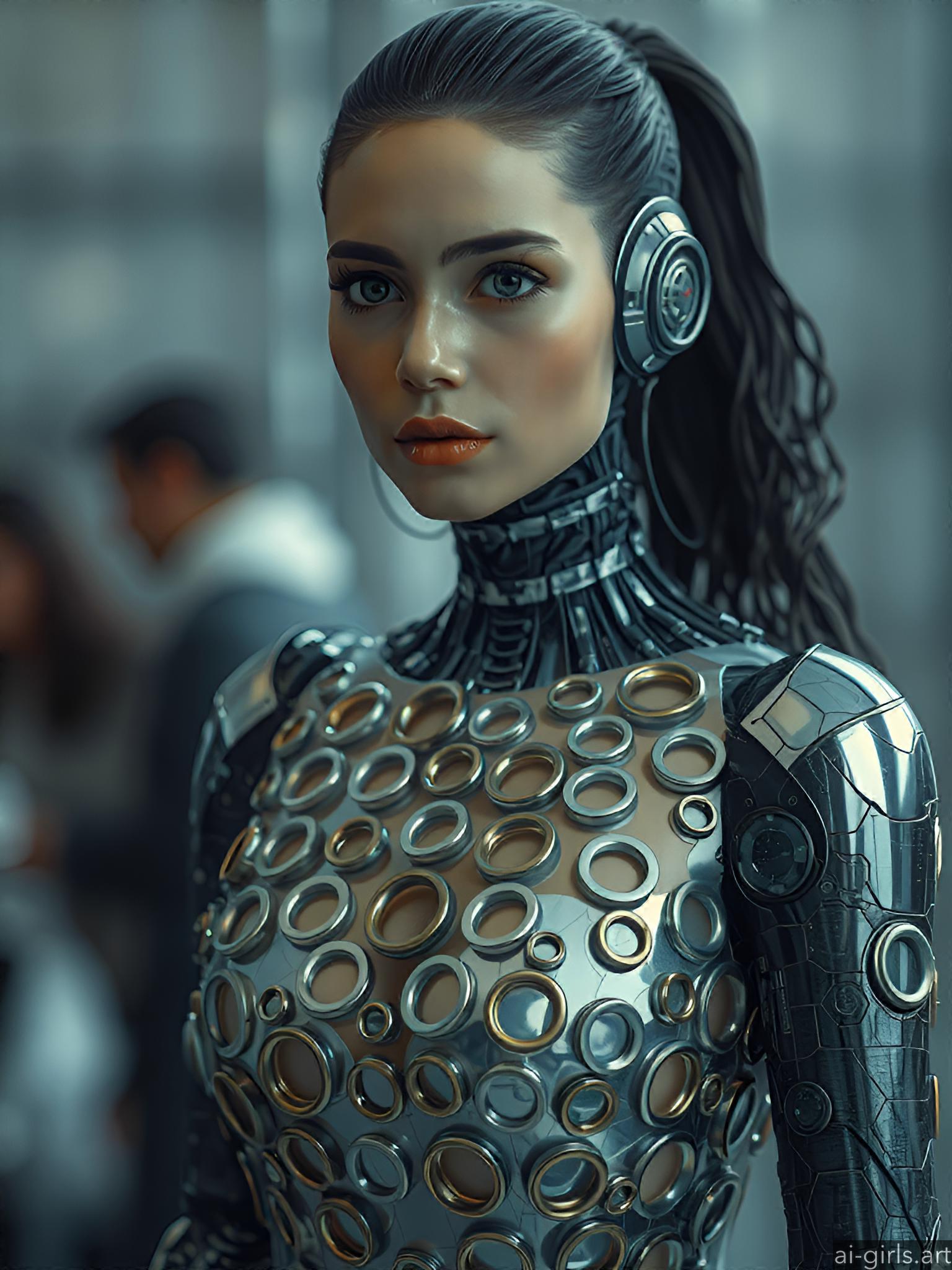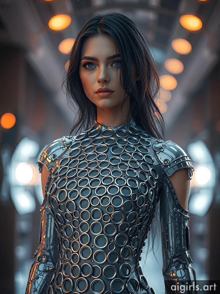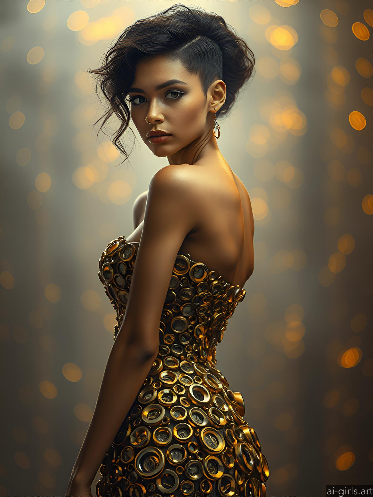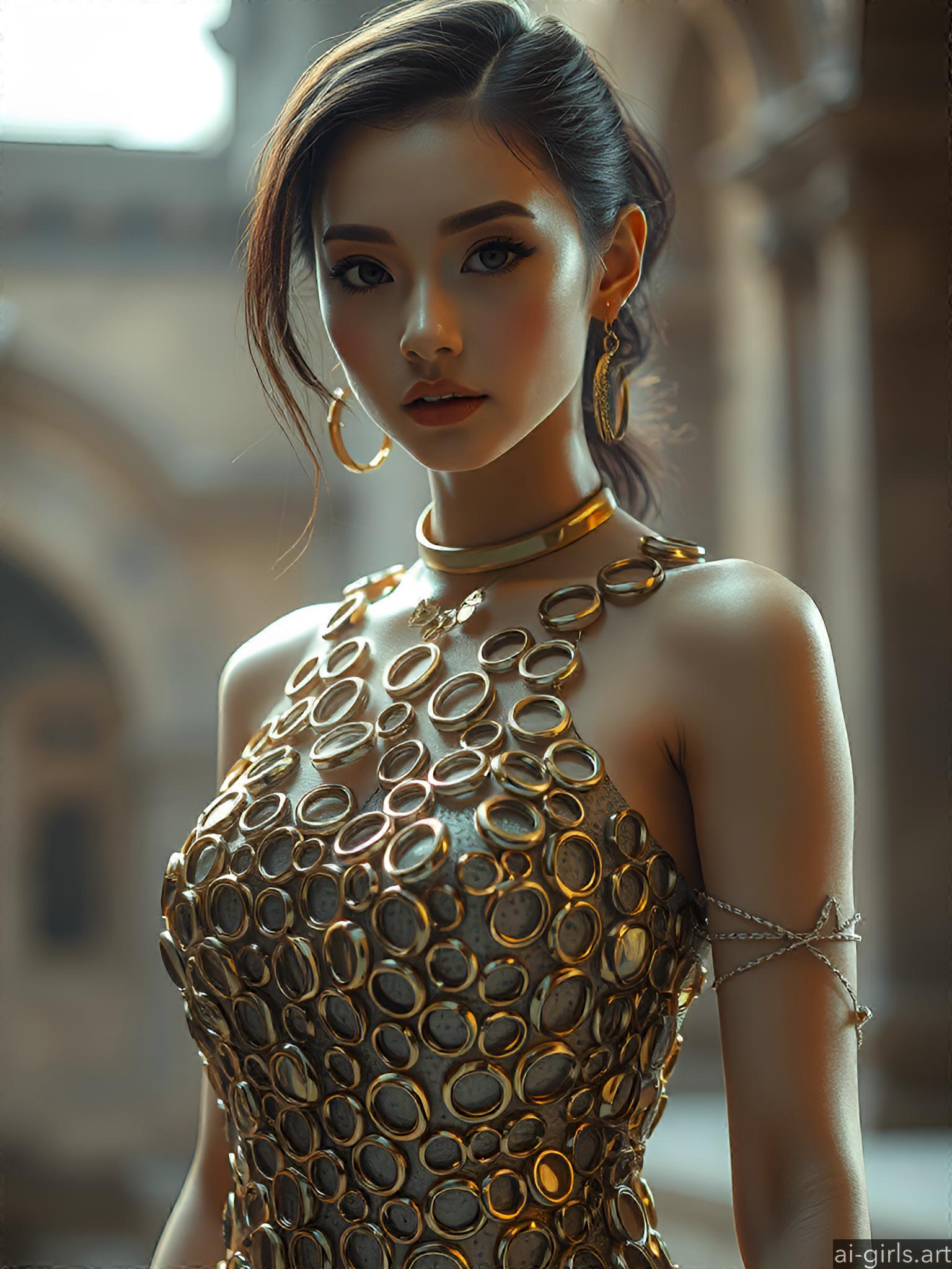 Woman in metallic ring dress