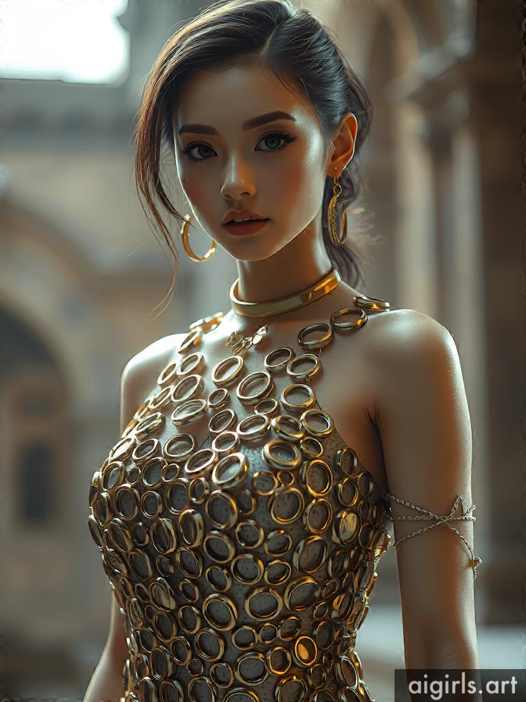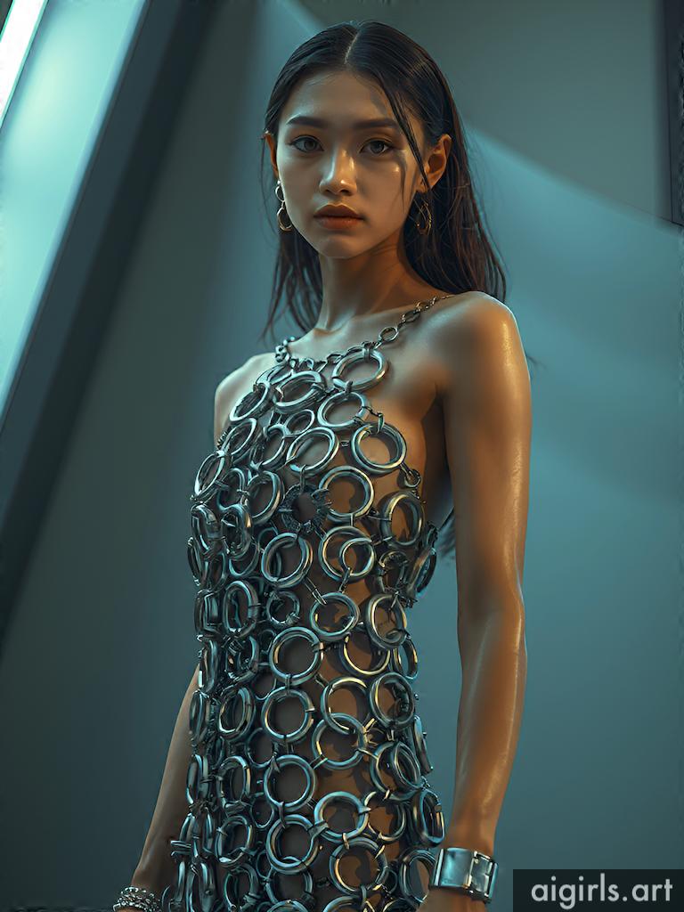 Woman in chain dress