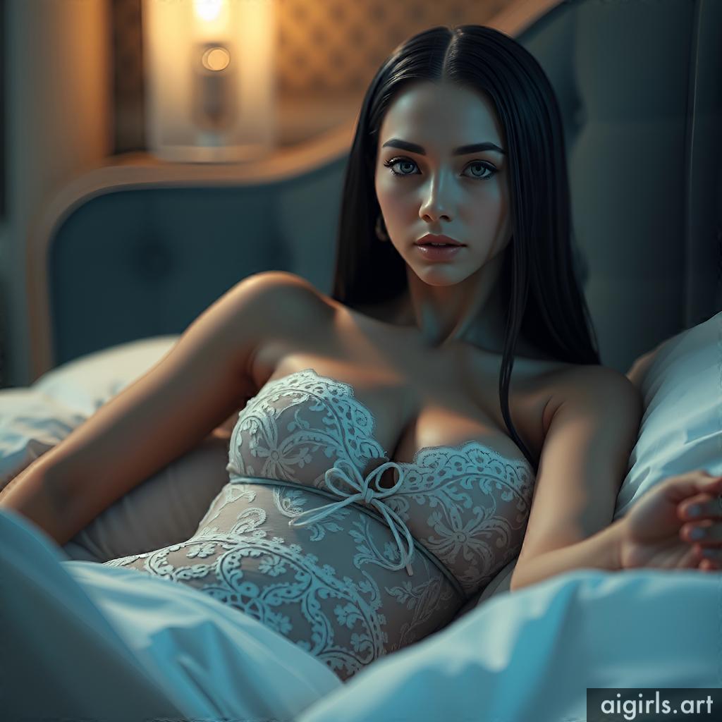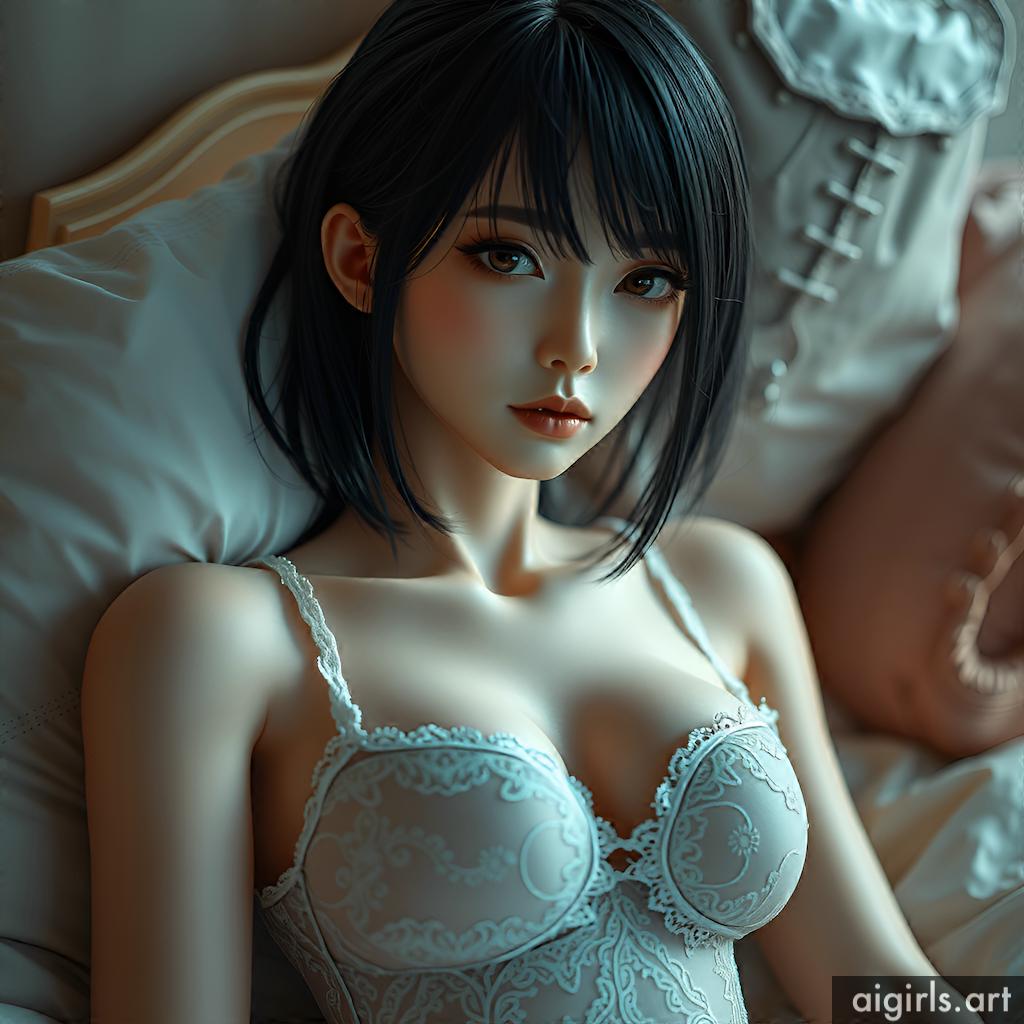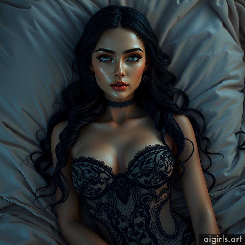AI girls in black lace dress