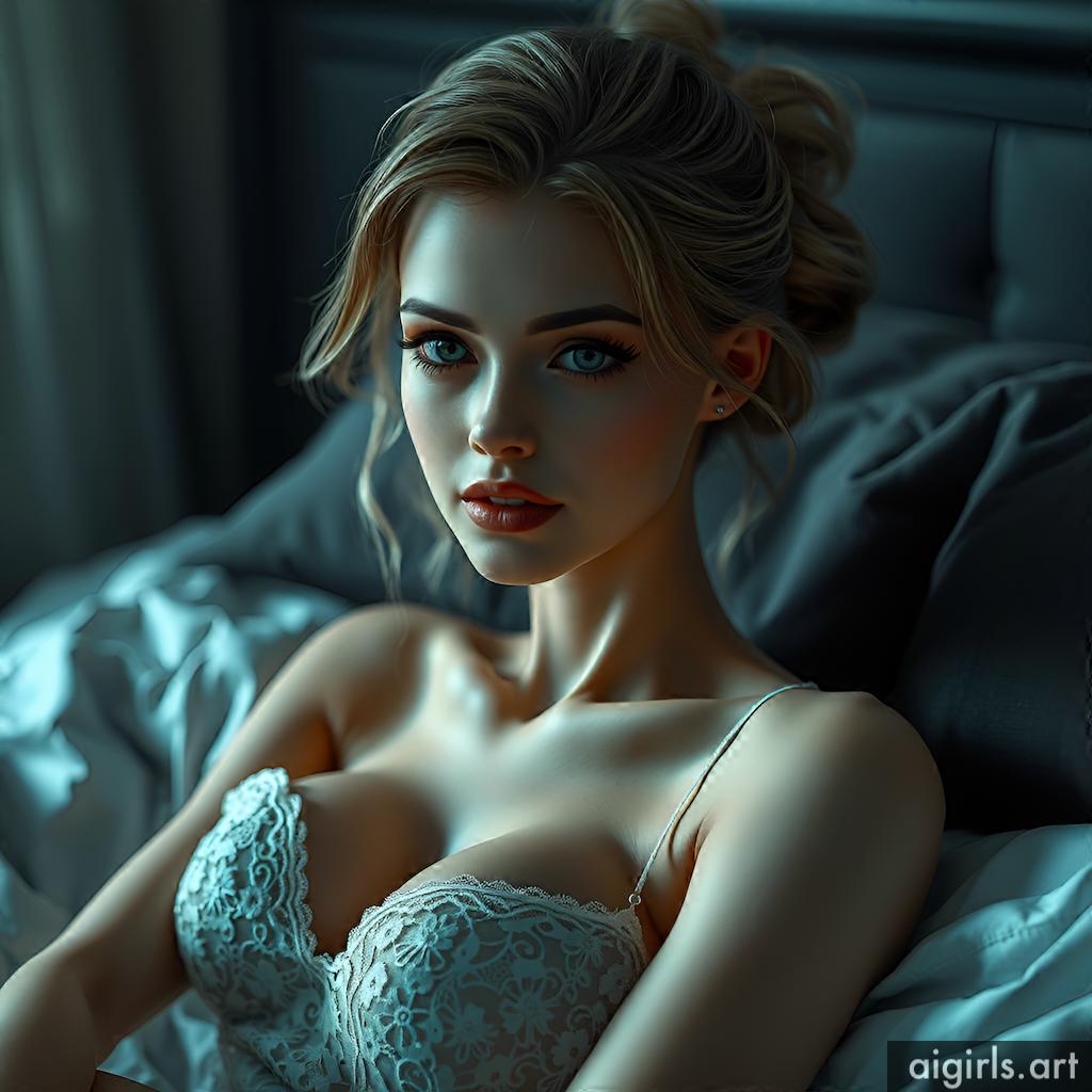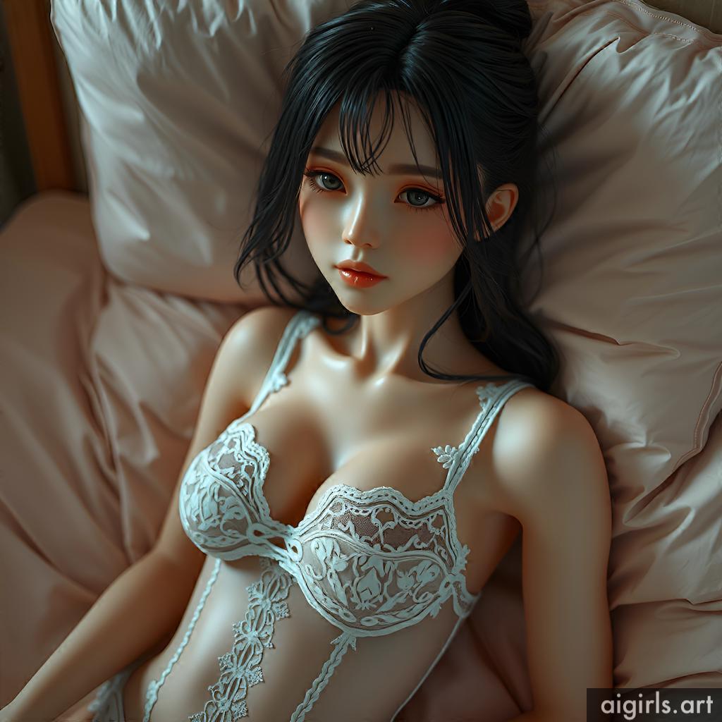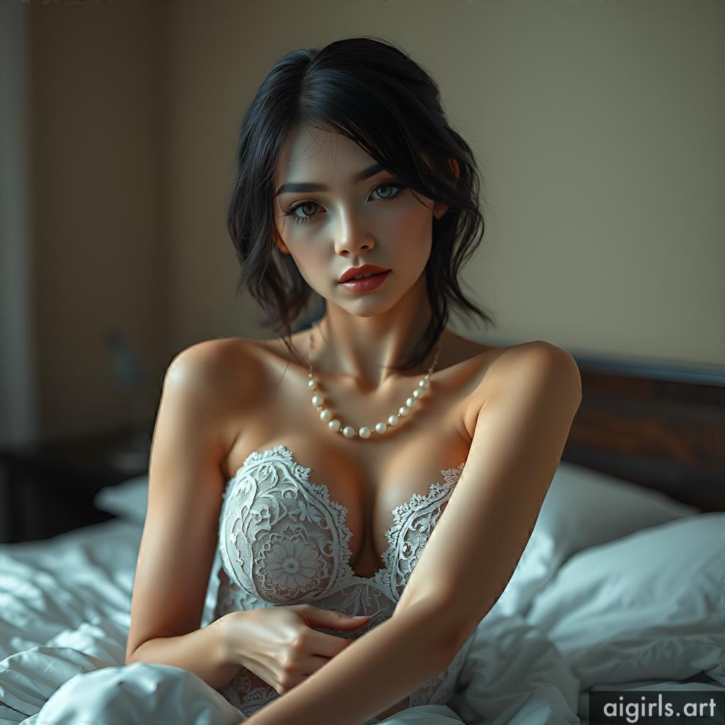 AI girls in black lace dress