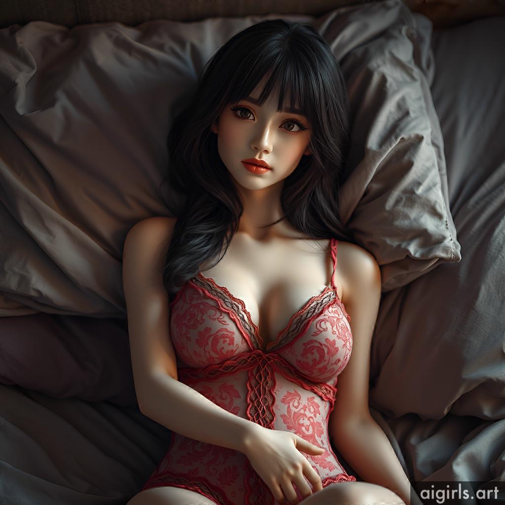 AI girls in red lace dress