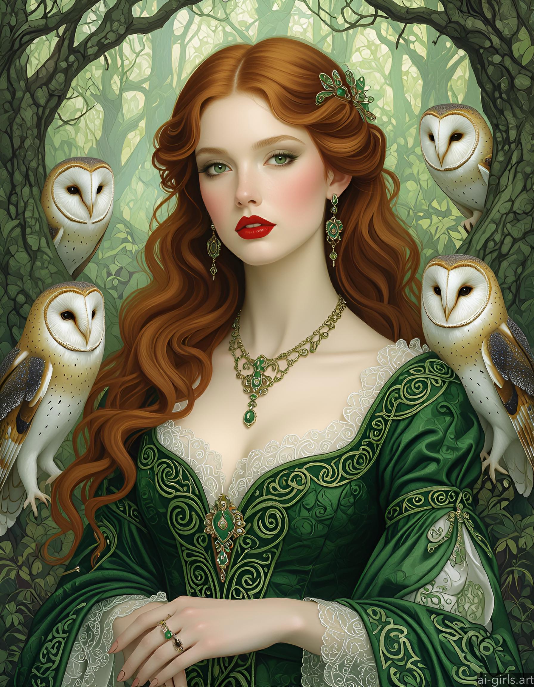 Blodeuwedd’s beauty is described as wild and beguiling, surpassing that of any other maiden. She embodied the very essence of the flowers from which she was made-delicate, radiant, and untamed.