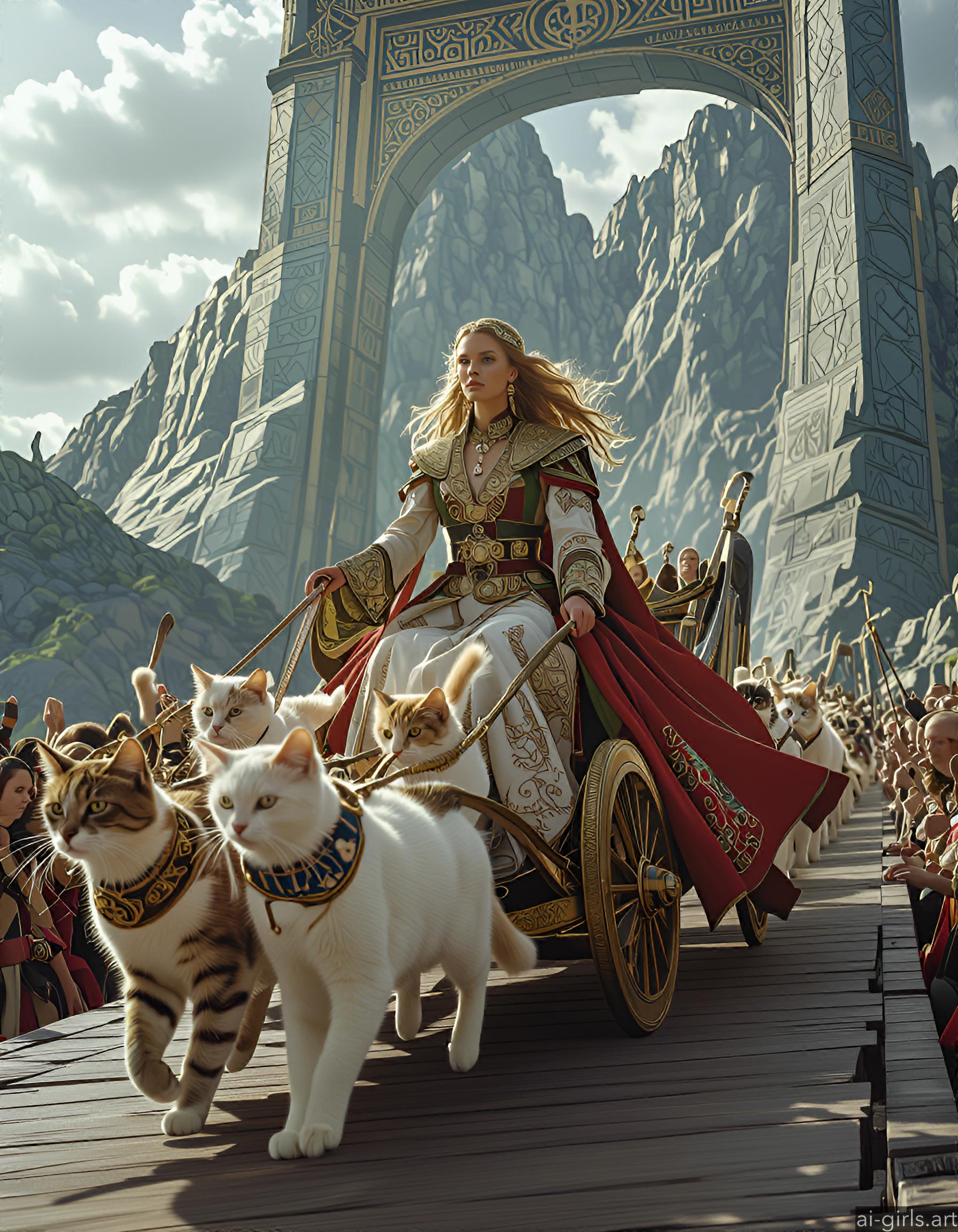 She traveled in a chariot drawn by two cats and was associated with various animals and colors that reflected her vibrant and multifaceted nature.