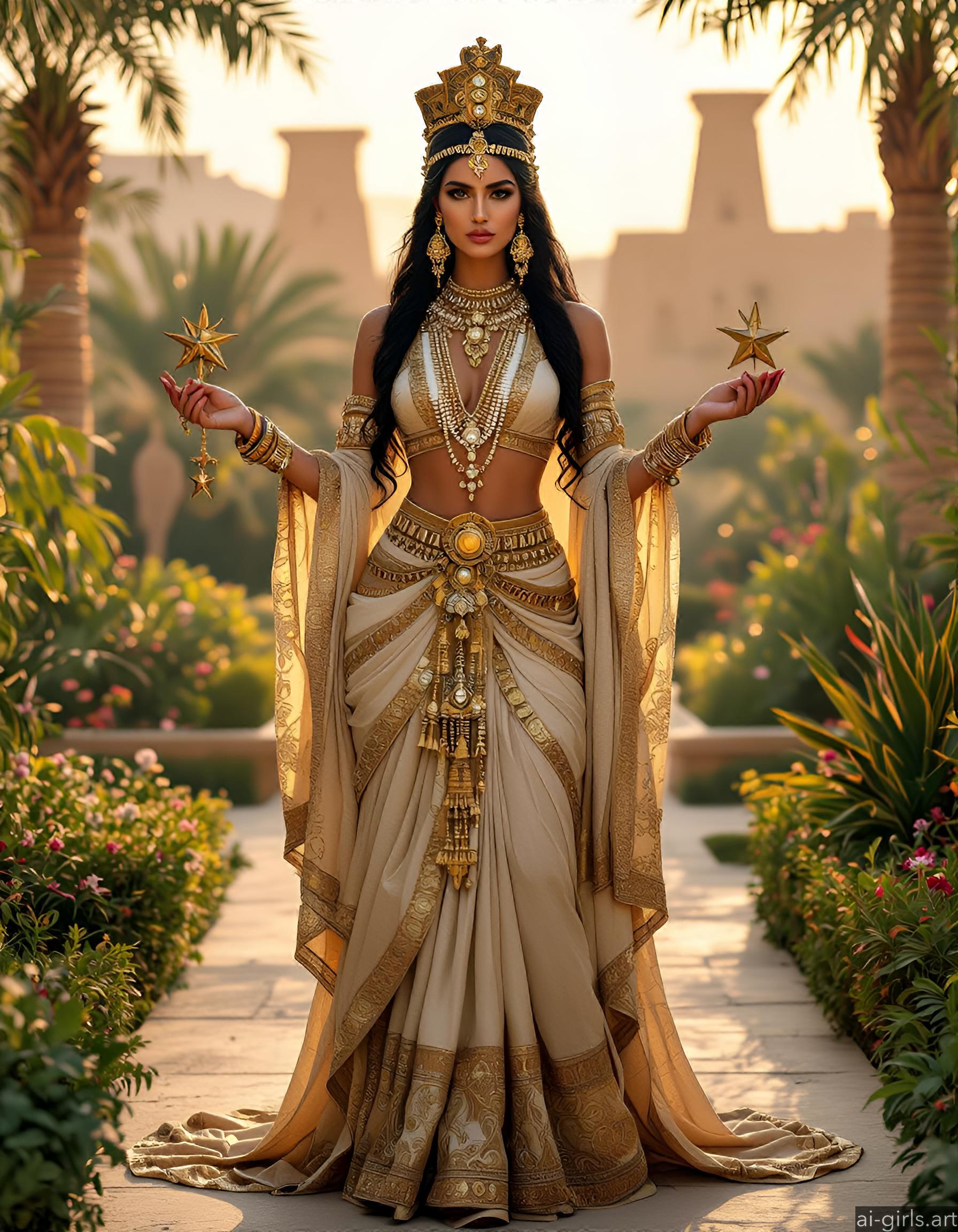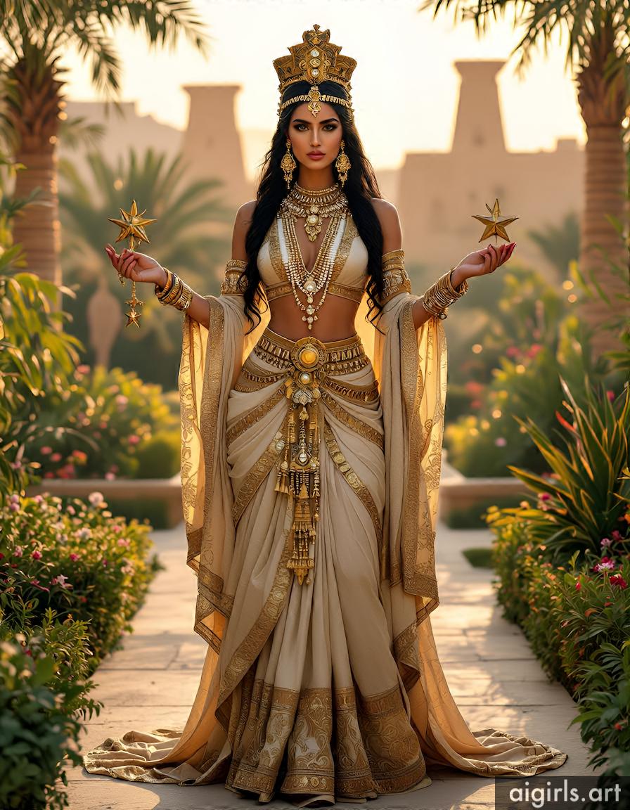 Her beauty is a central theme in myth and poetry. Ishtar is often depicted as a strikingly beautiful young woman, whose allure is enhanced by her careful adornment with makeup, jewelry, and fine clothing.