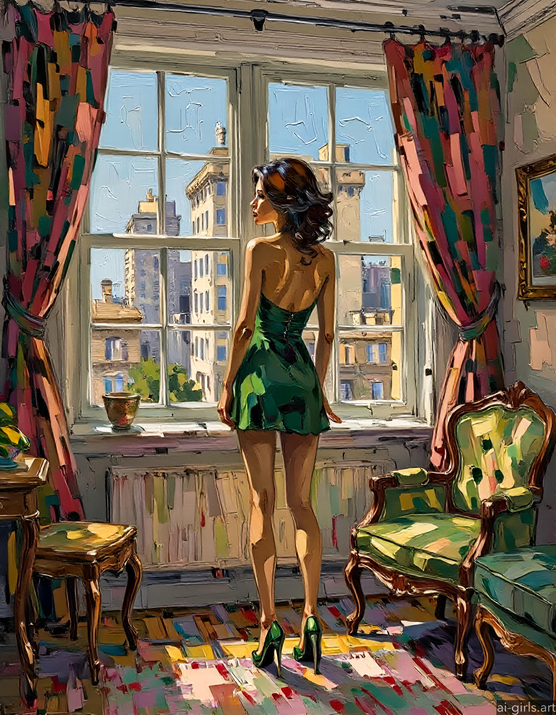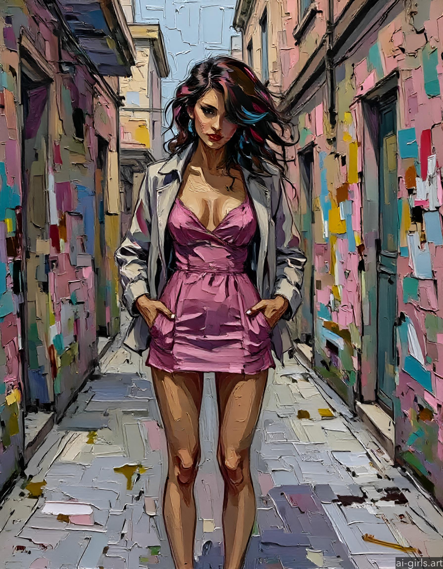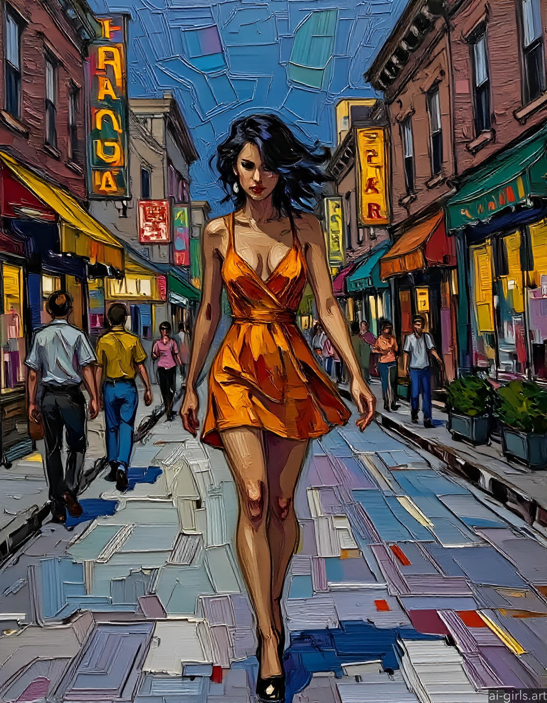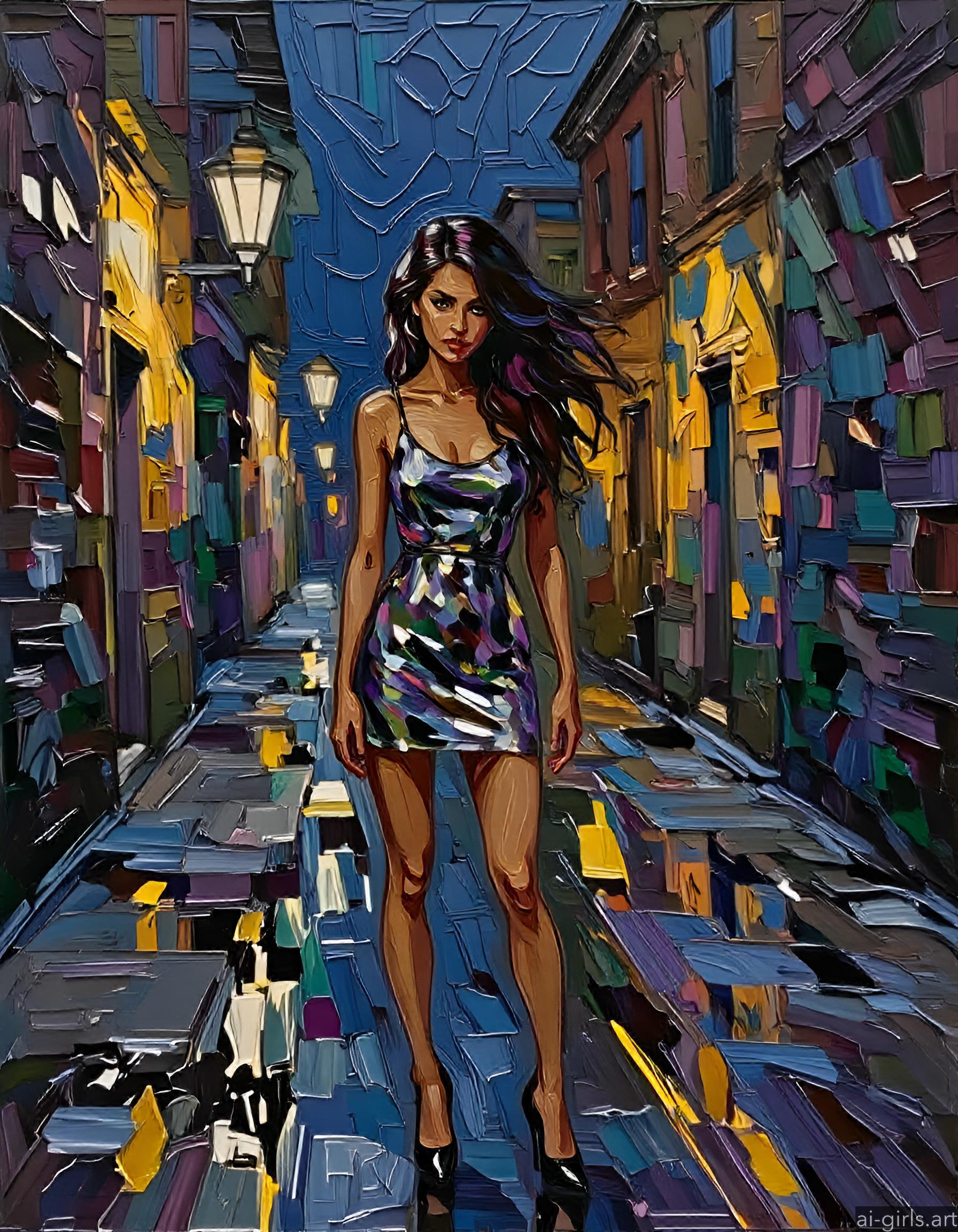 Paint is applied in thick layers, often with a palette knife or a wide brush, to create visible strokes and textures.